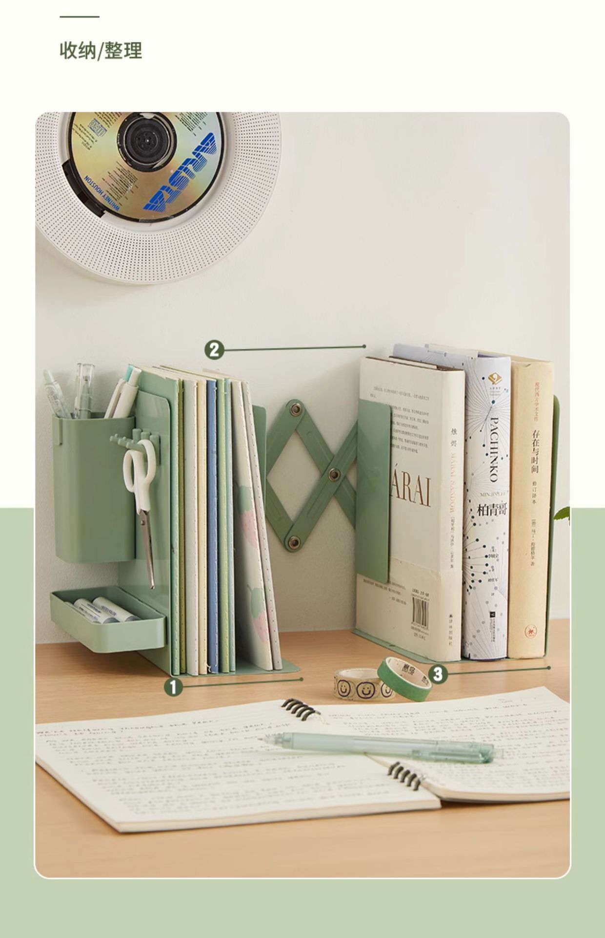 책 스탠드 책 저장 세트 책 스탠드 펜 홀더 책 홀더 고정 책이있는 데스크탑 개폐식 랙