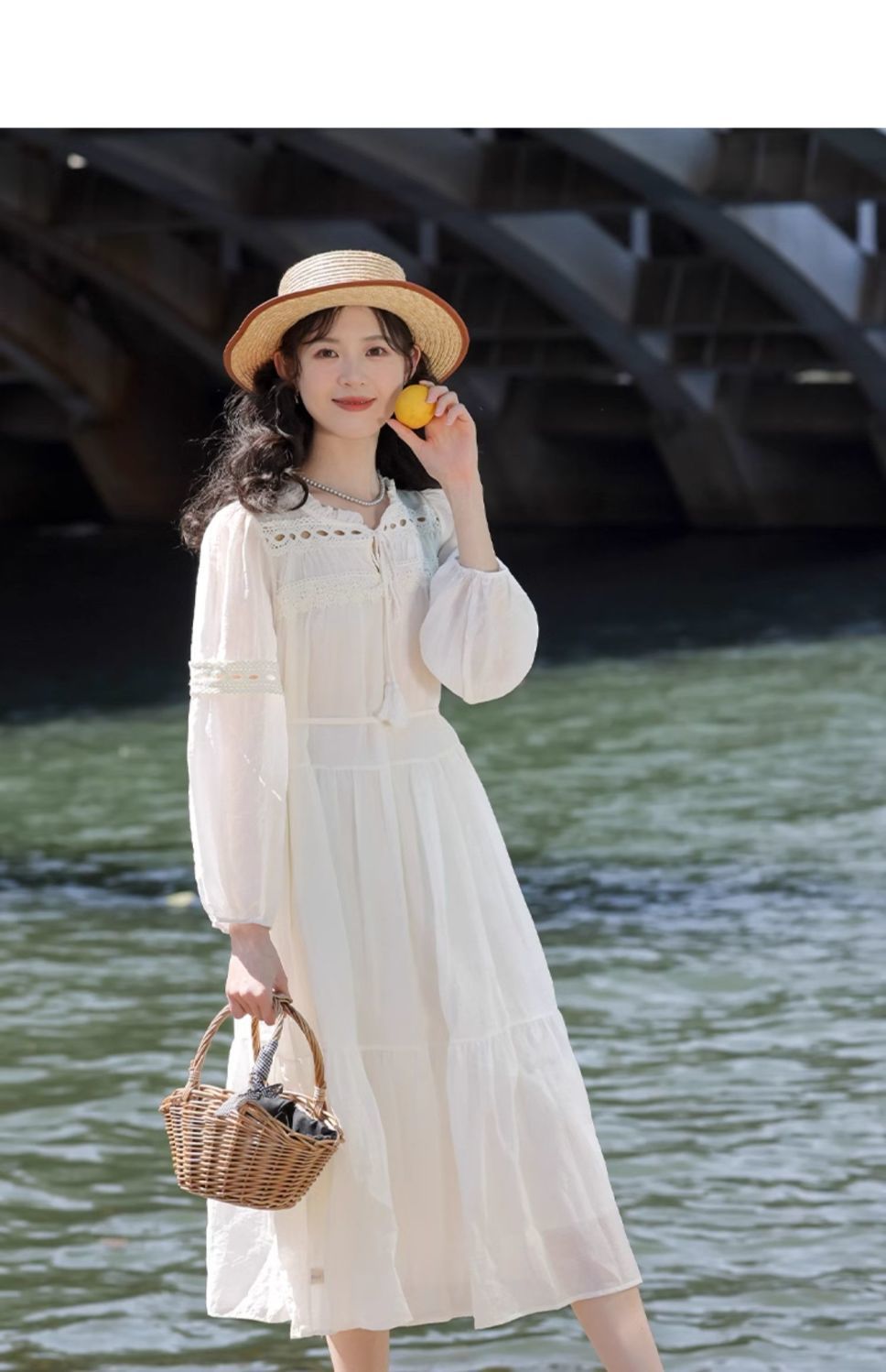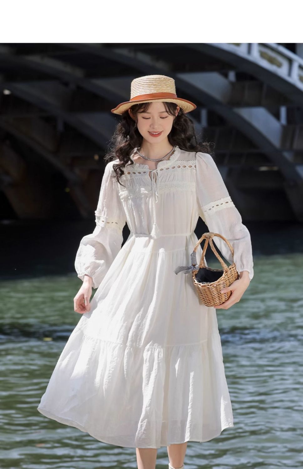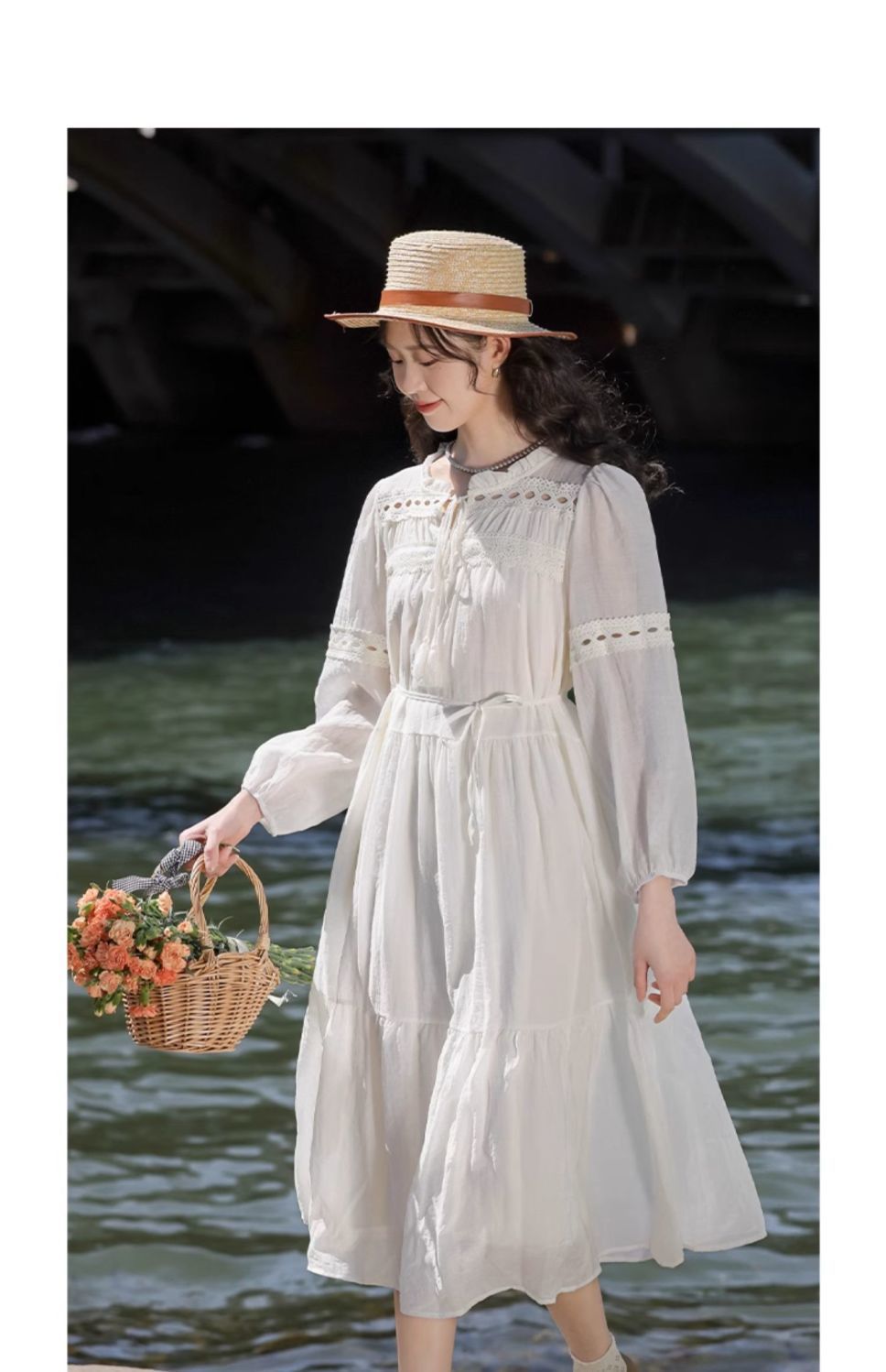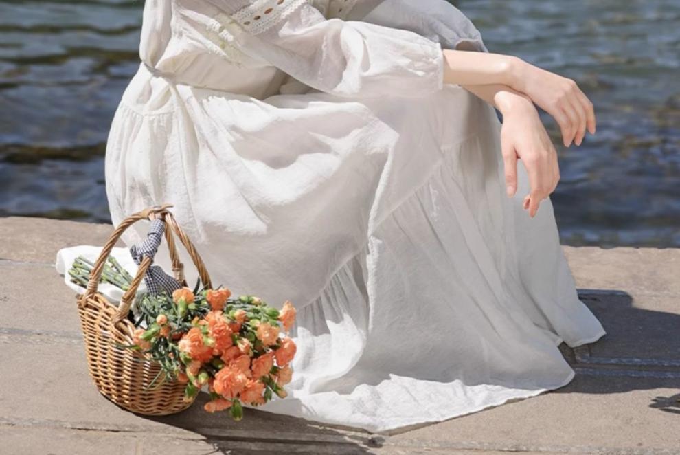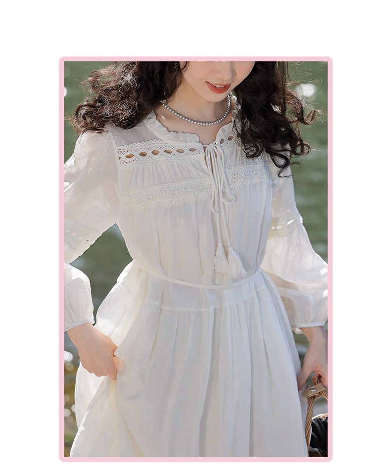 프랑스 칼라 퍼프 슬리브 원피스 여성의 봄과 가을 새로운 우아한 고급 경량 느슨한 슬리밍 원피스스토어 가기