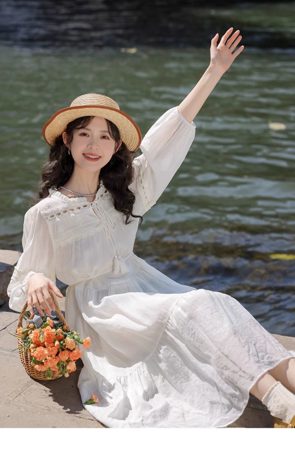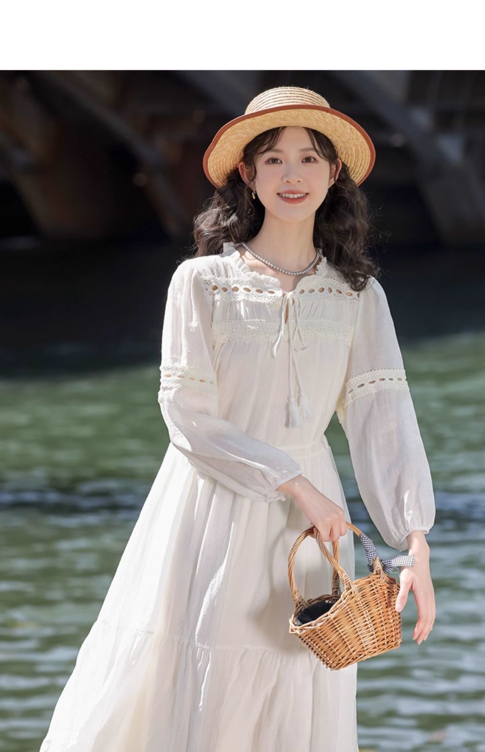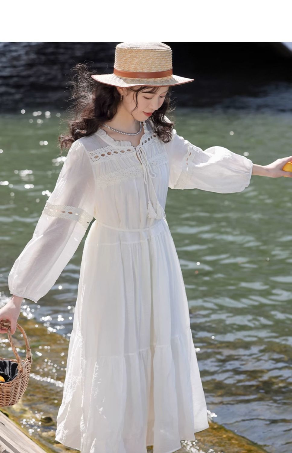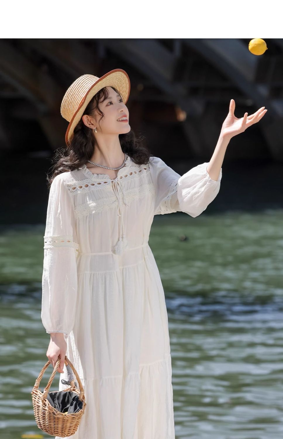 프랑스 칼라 퍼프 슬리브 원피스 여성의 봄과 가을 새로운 우아한 고급 경량 느슨한 슬리밍 원피스스토어 가기