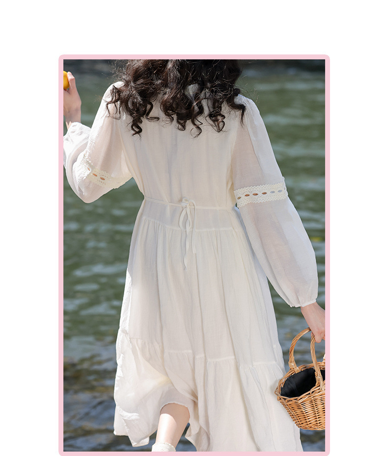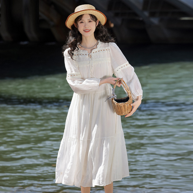 프랑스 칼라 퍼프 슬리브 원피스 여성의 봄과 가을 새로운 우아한 고급 경량 느슨한 슬리밍 원피스