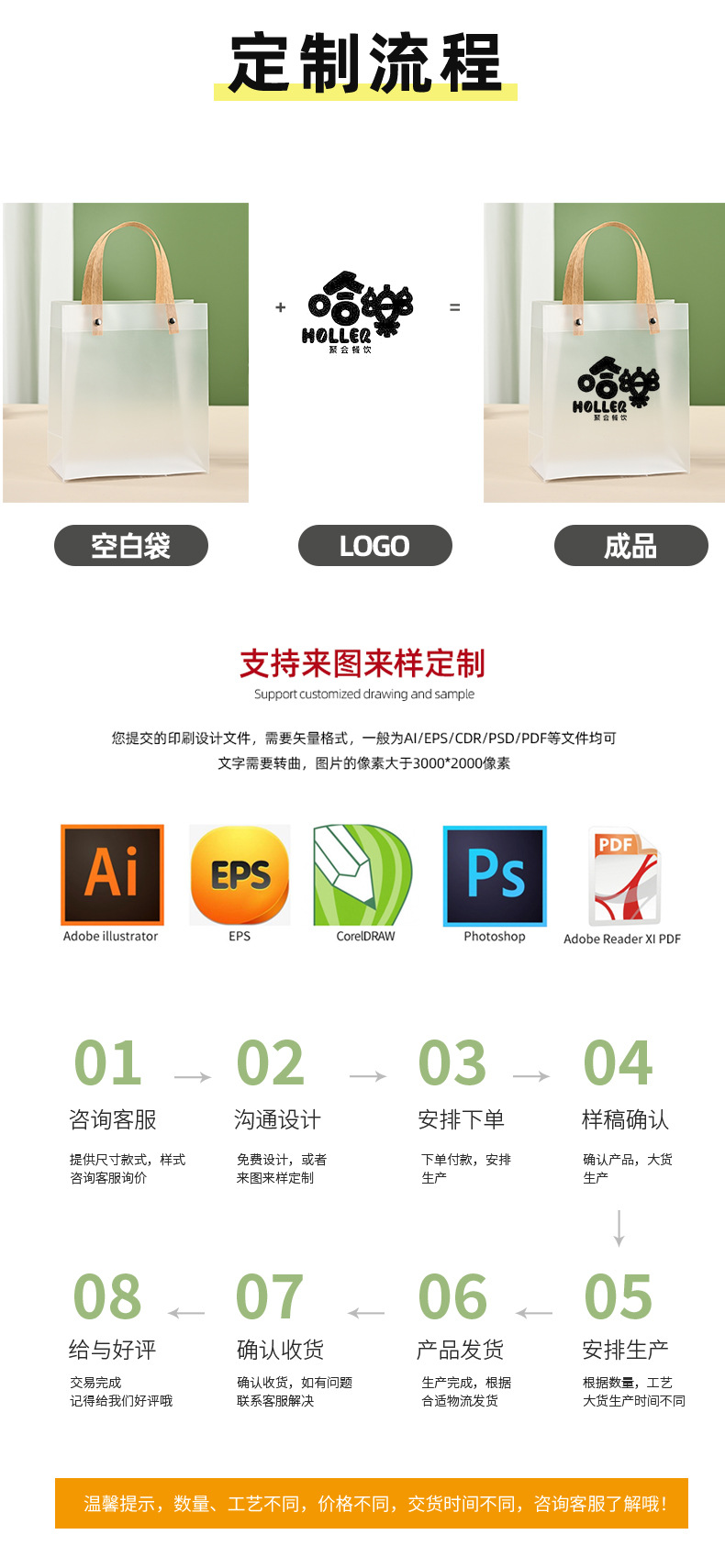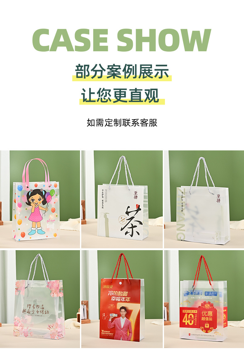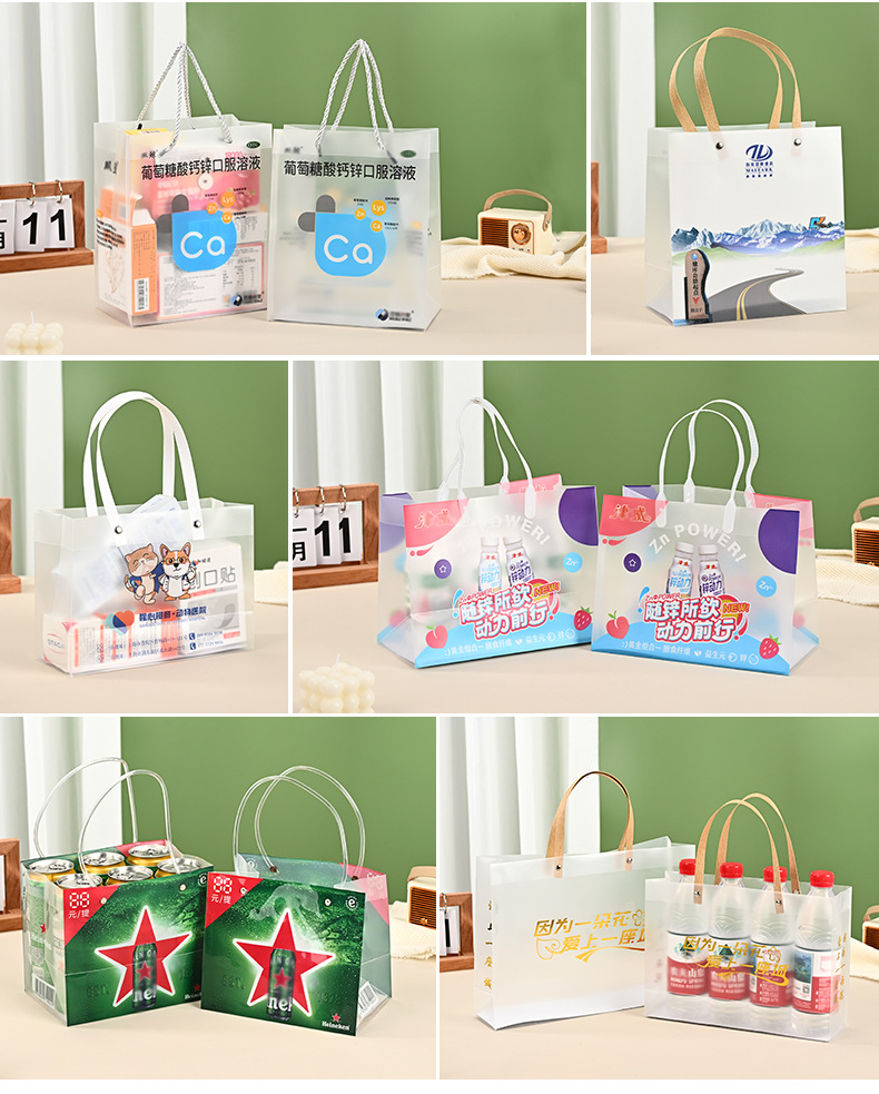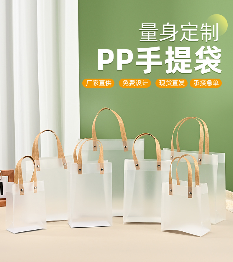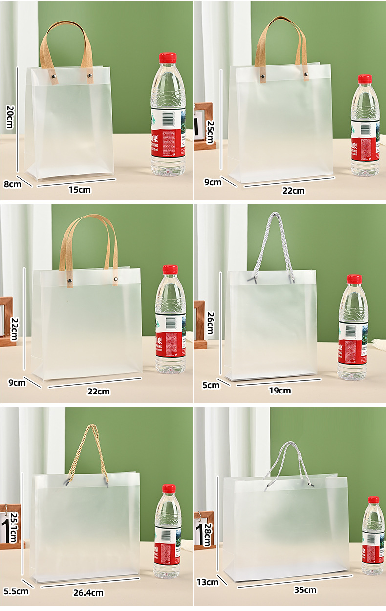 재고 PP 투명 프로스트 핸드백 패션 의류 쇼핑 PP 선물 가방 화장품 동반 선물 포장 가방