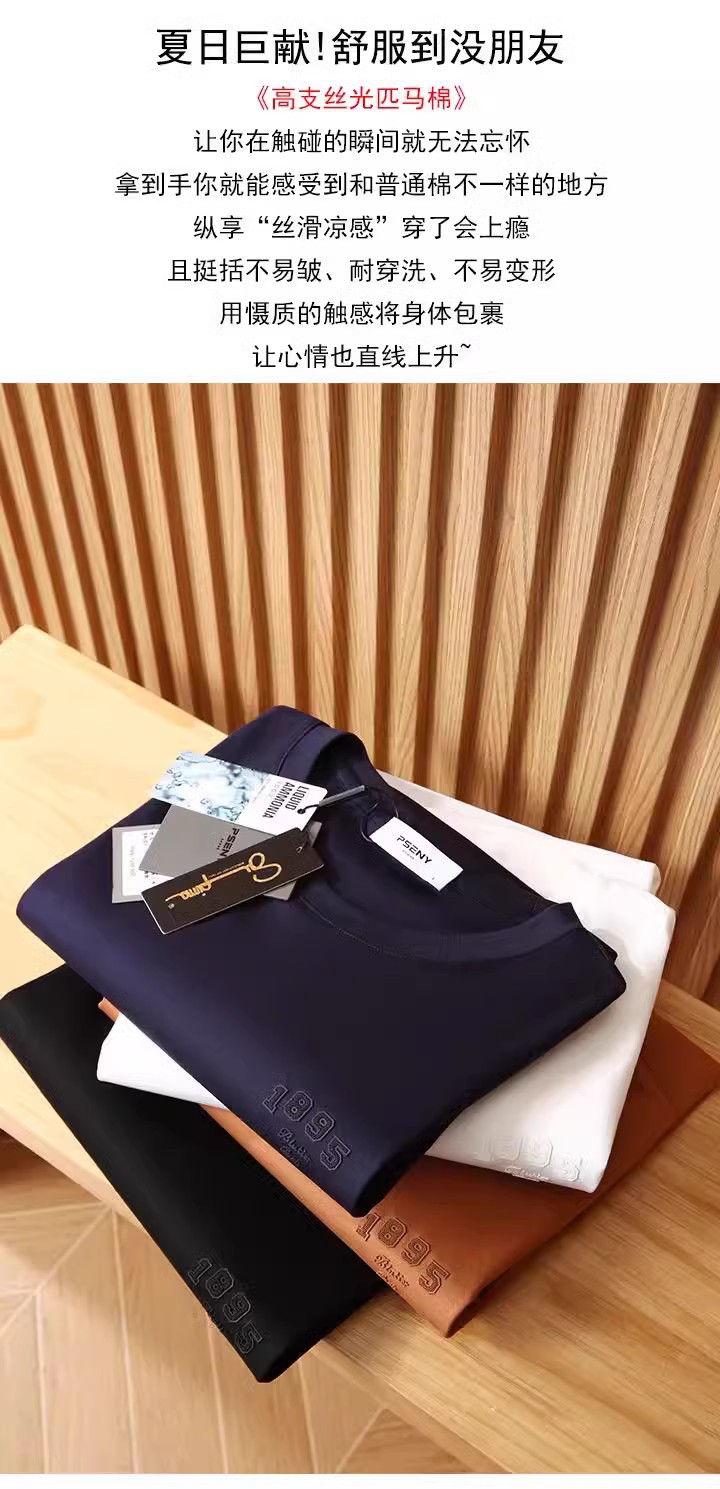 사치스러운. 품질! 80 높은 가지 액체 암모니아 수은 말면 2025 새로운 남성 여름 둥근 목 짧은 소매 티셔츠
