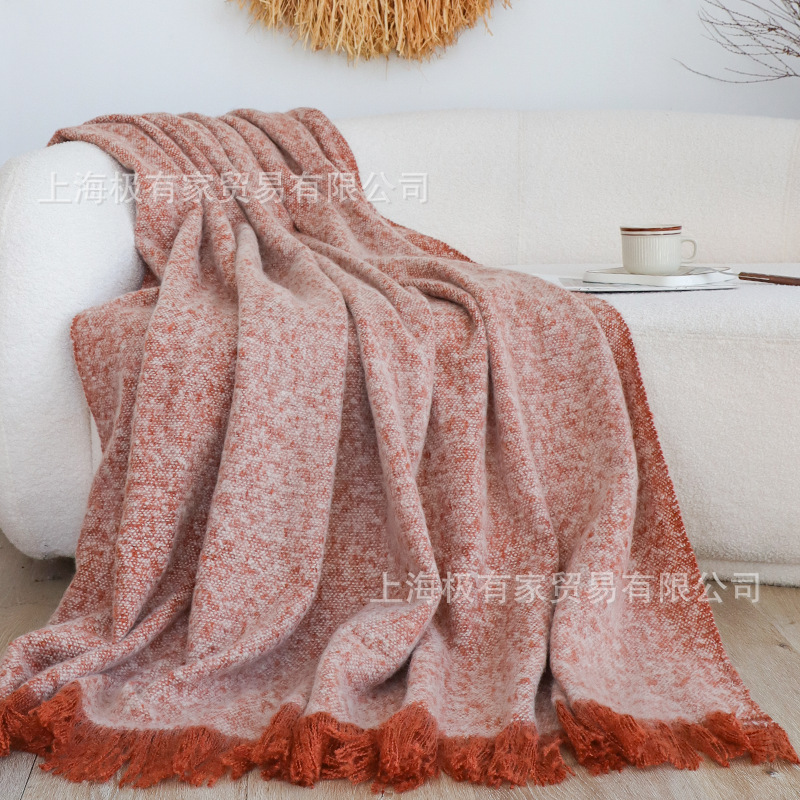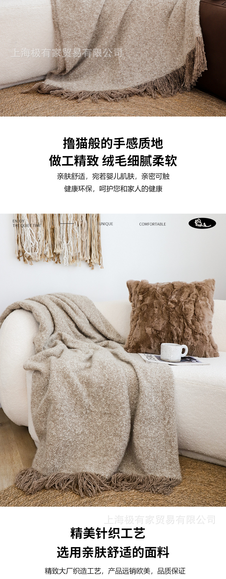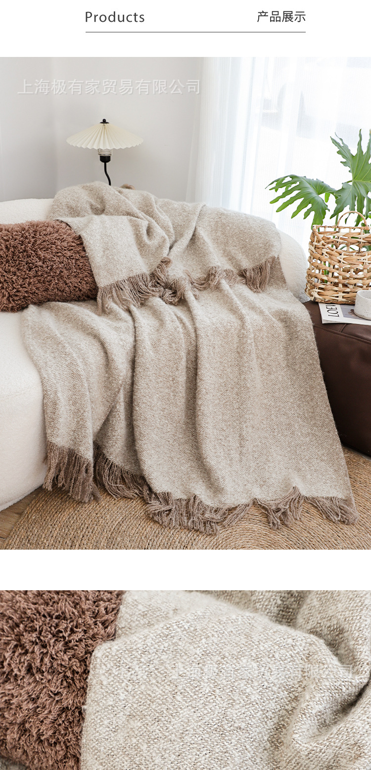 실리 스타일 다크 브라운 커피 질감 벨벳 술 담요 거실 소파 담요 홈 스테이 담요 솔리드 컬러 담요 장식