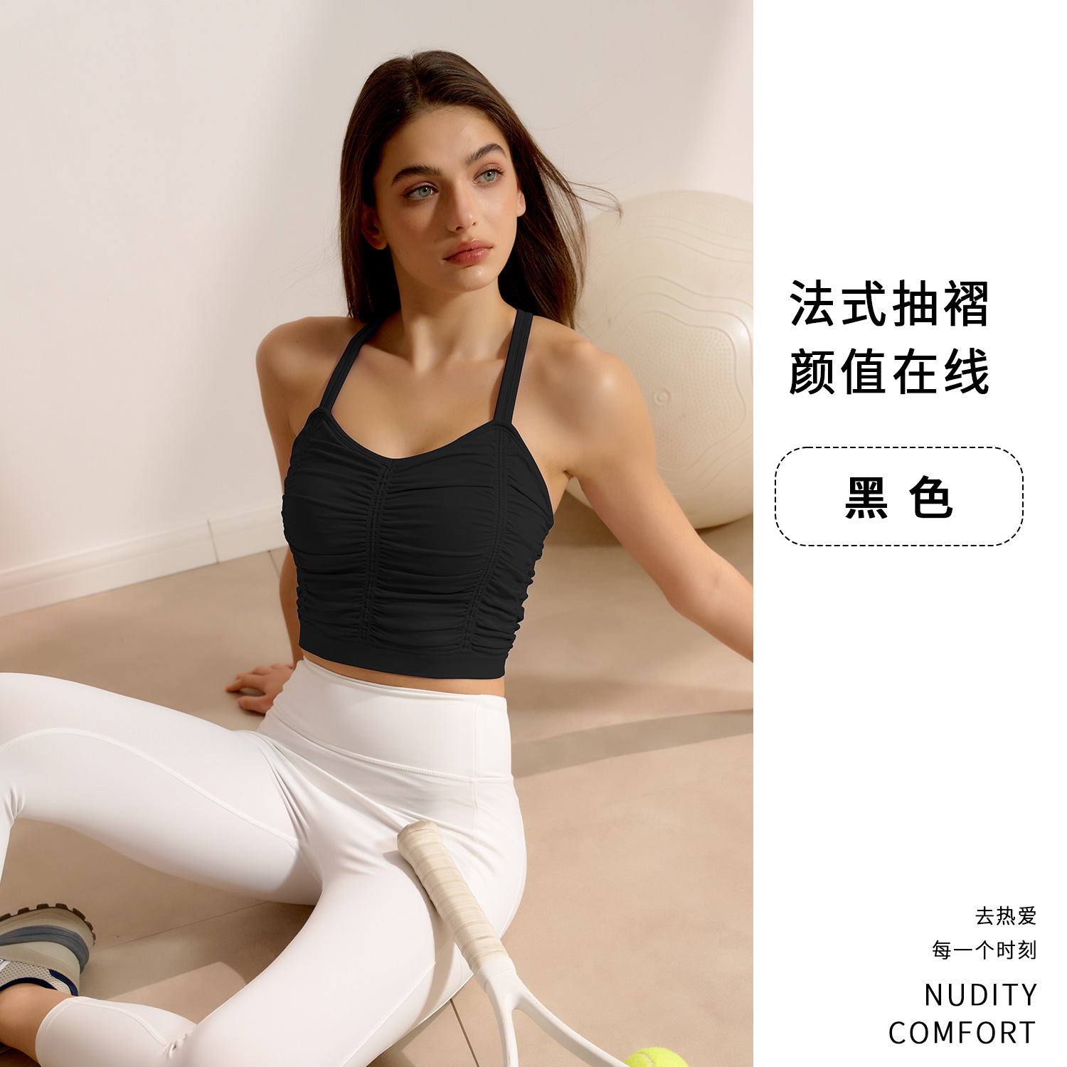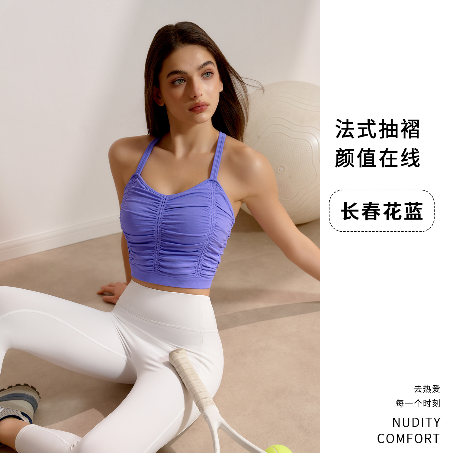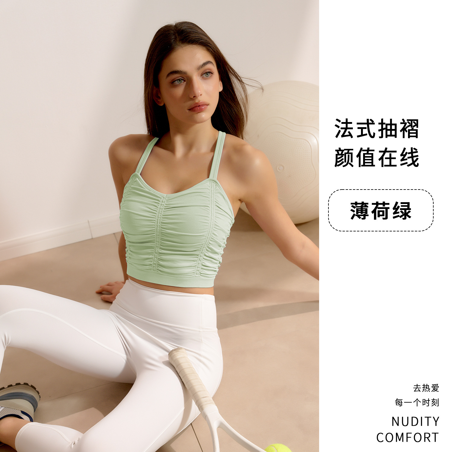여름 새로운 Pleated Gather 요가 브래지어 조끼 아름다운 뒤 모양 기질 순수한 욕망 야외 요가 브래지어 탑