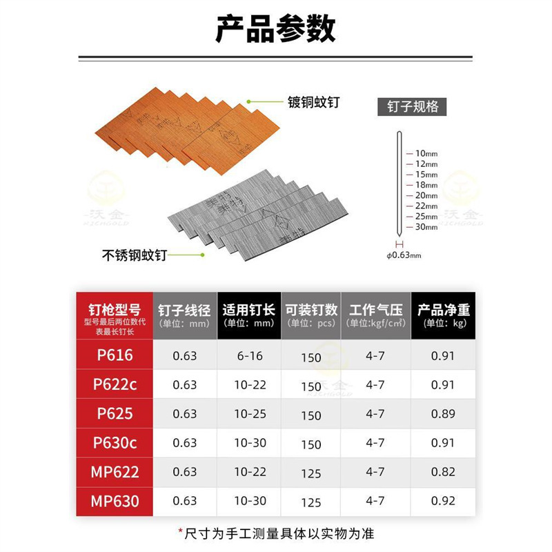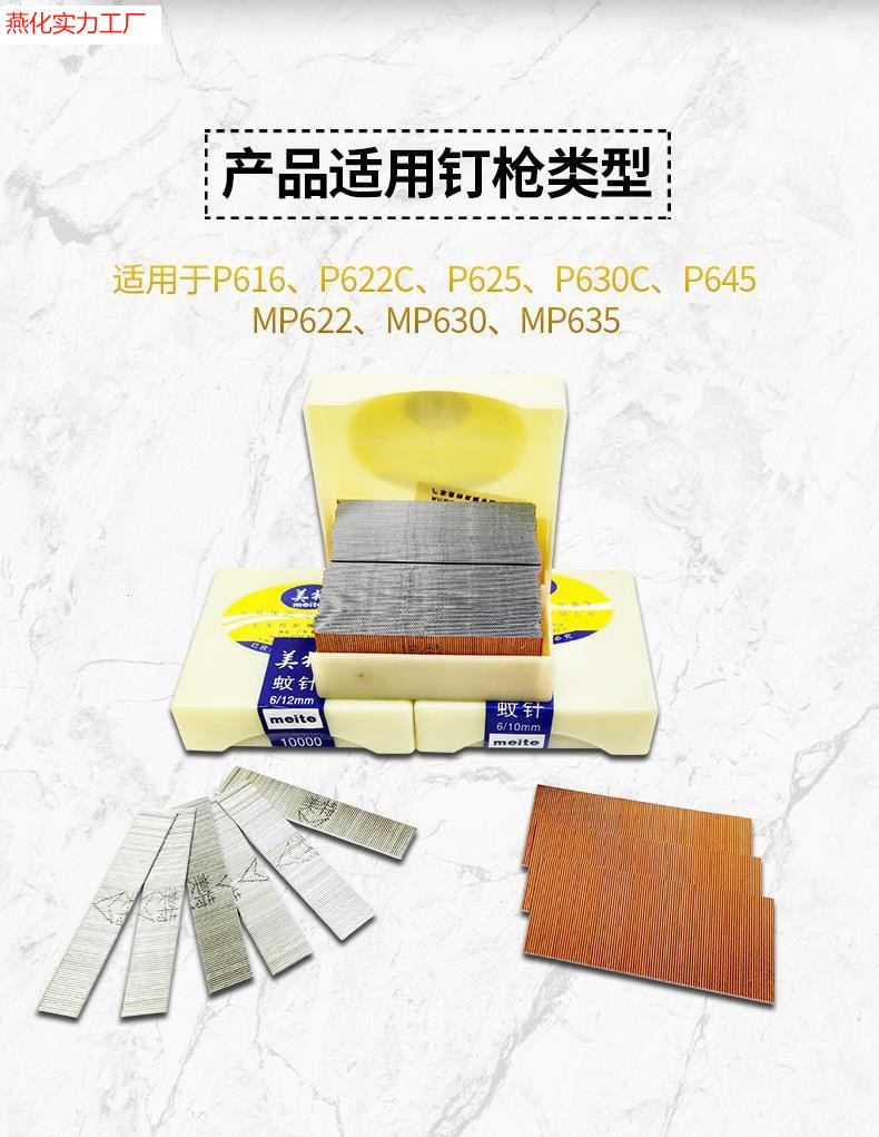 Meite 모기 손톱 줄 네일 네일 모기 네일 목공 가스 네일 구리 도금 머리없는 모기 바늘 손톱 p622p630