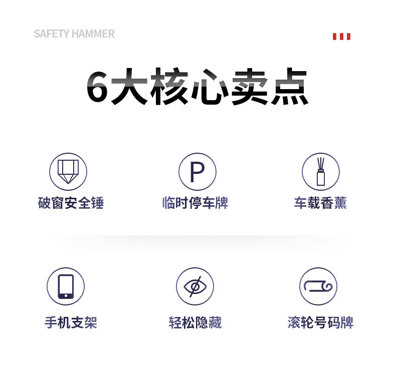 • [메탈 스타일] 그레이 + 휴대폰 내비게이션 홀더 + 조절식 번호판 + 비상 유리창 깨기 망치 + 아로마테라피 1개
