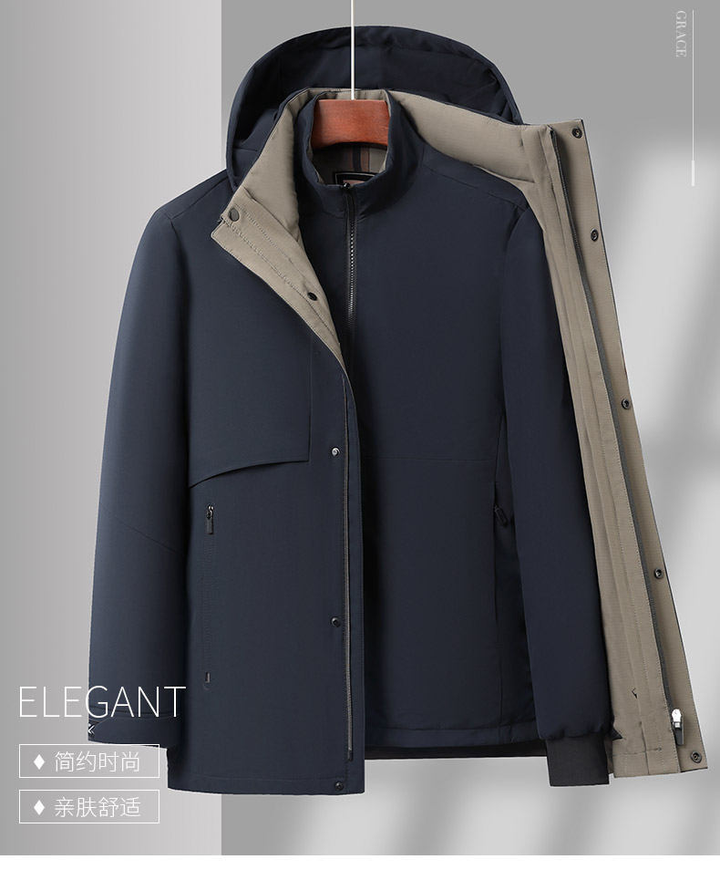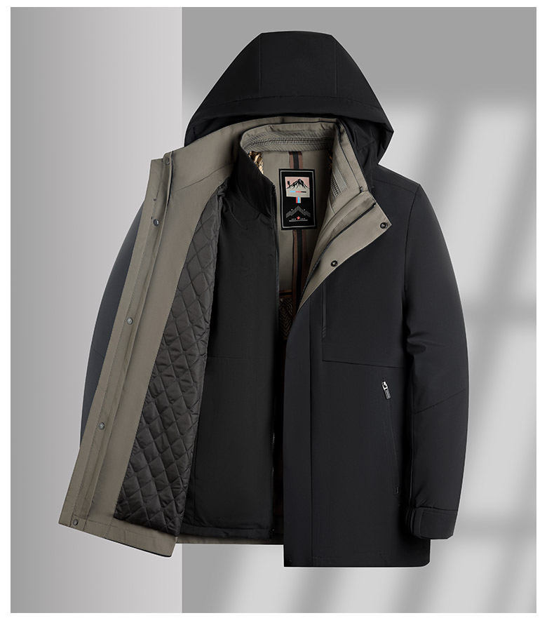 [탈부착 가능한 내피] 남성용 다운 재킷 겨울 신상 중년 및 노년 아버지용 후드 거위털 재킷
