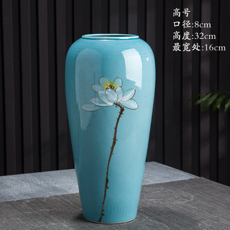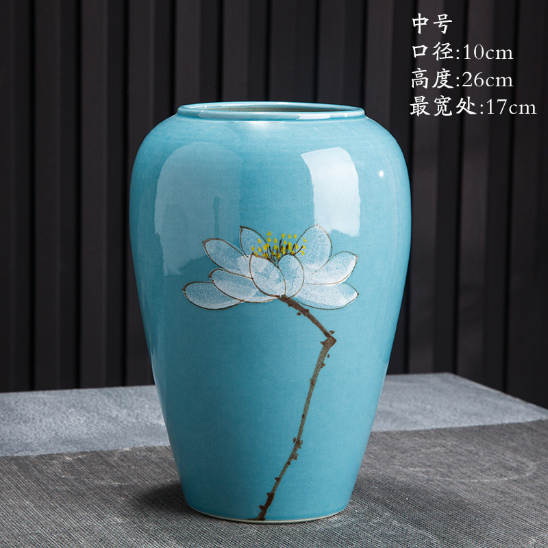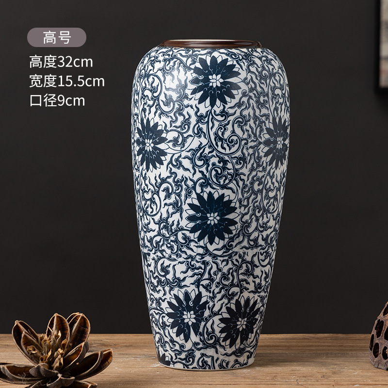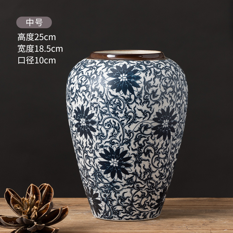 Jingdezhen 세라믹 꽃병 장식 거실 꽃-새로운 중국 스타일 빈티지 장식 도자기 냄비 수경 기구 꽃 냄비
