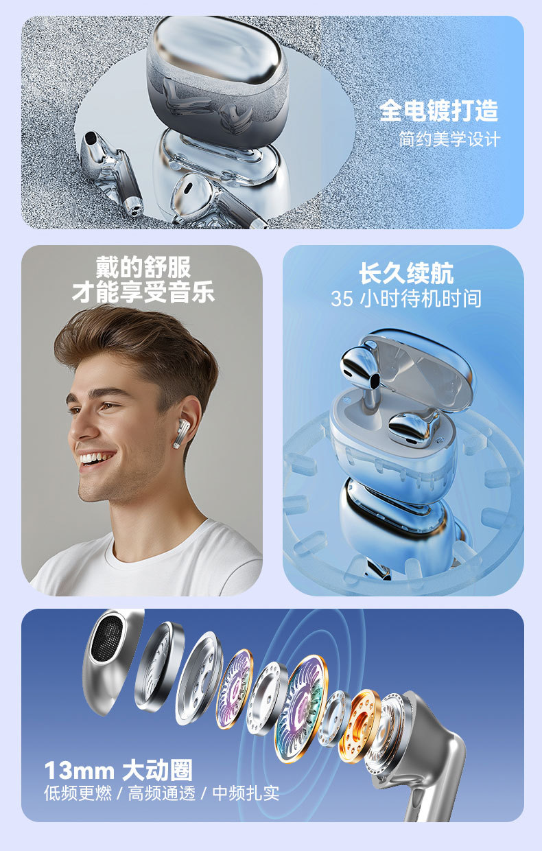 • [그라데이션 블랙] 아마존 핫 모델 + 소재 업그레이드 전기 도금 - H10J - 블루투스 5.4 - 통화 소음 감소 - 30일 무료 평가판 - 매우 긴 배터리 수명
