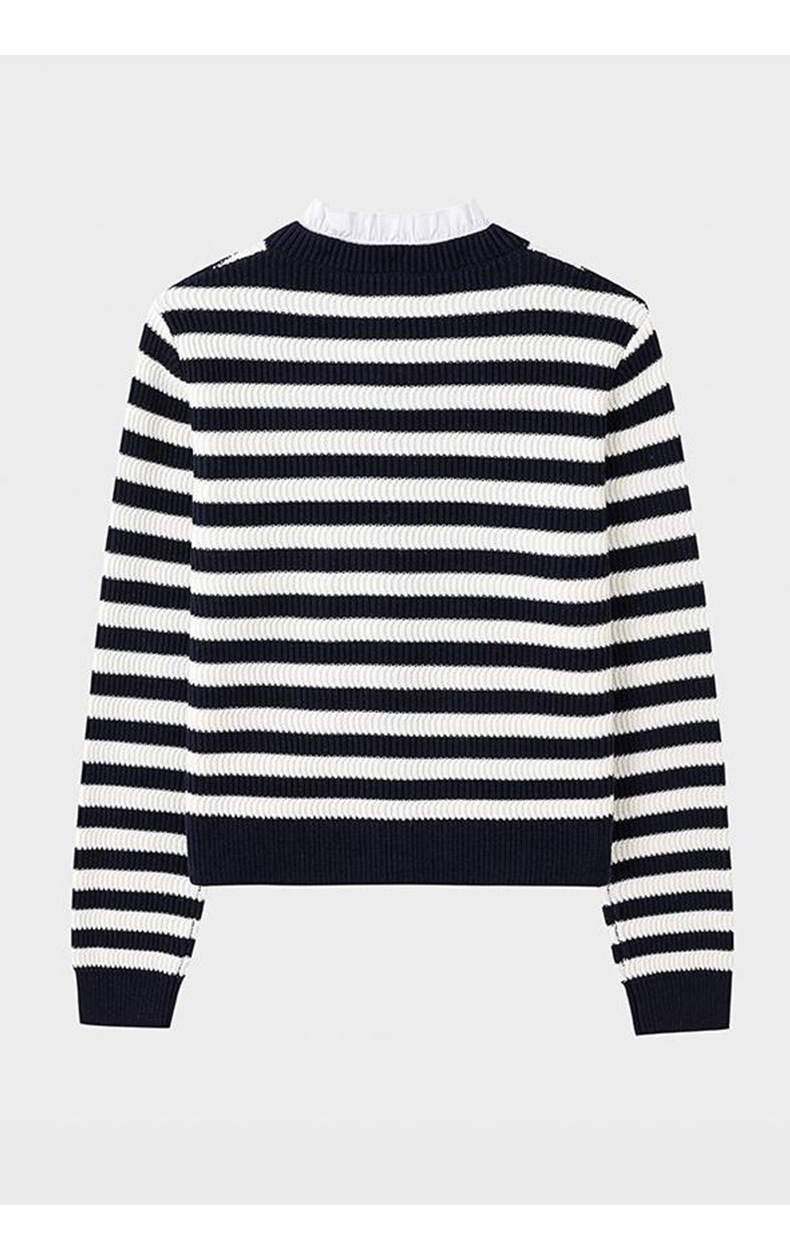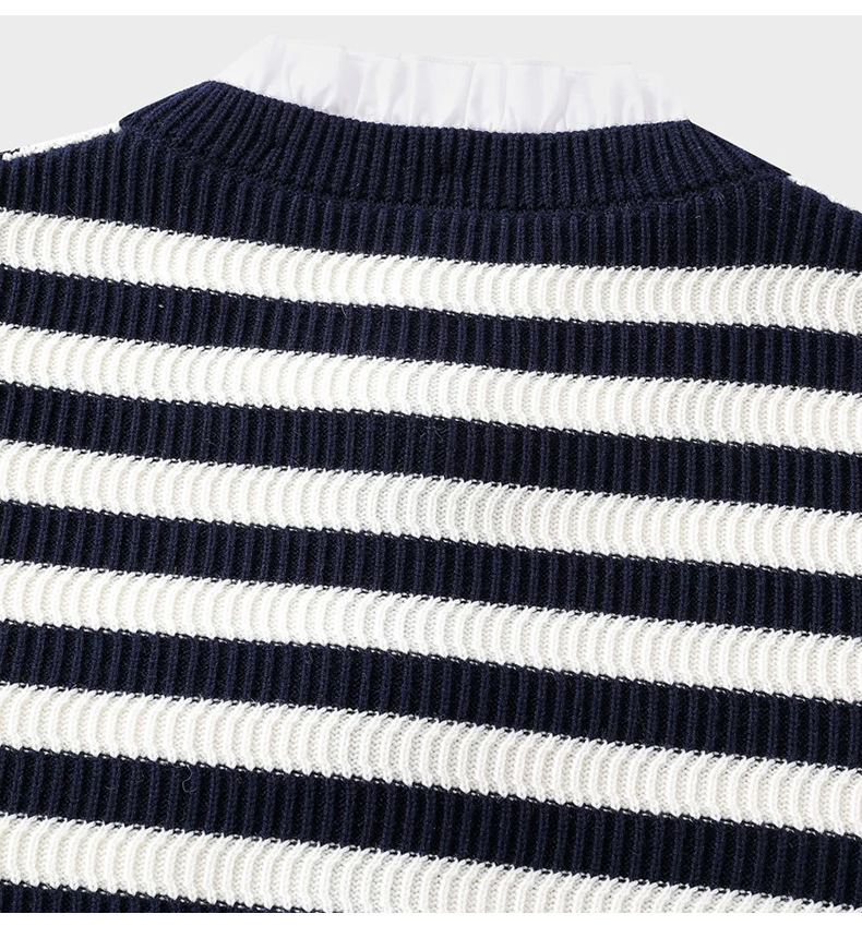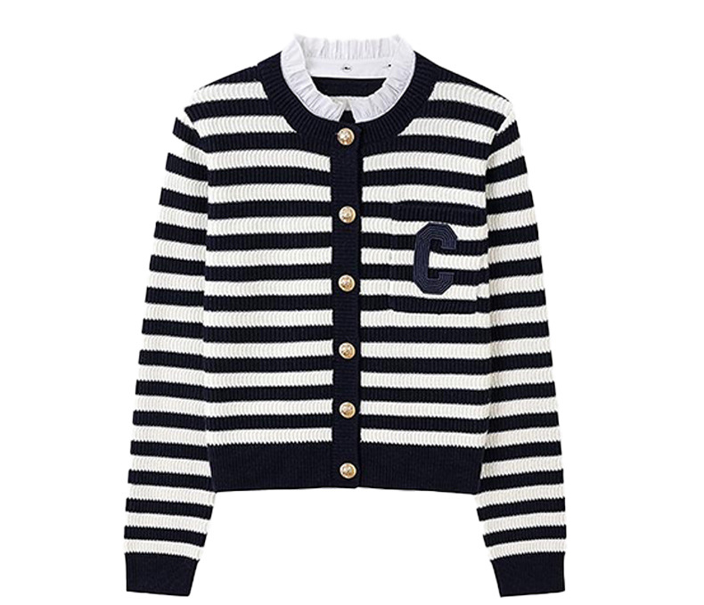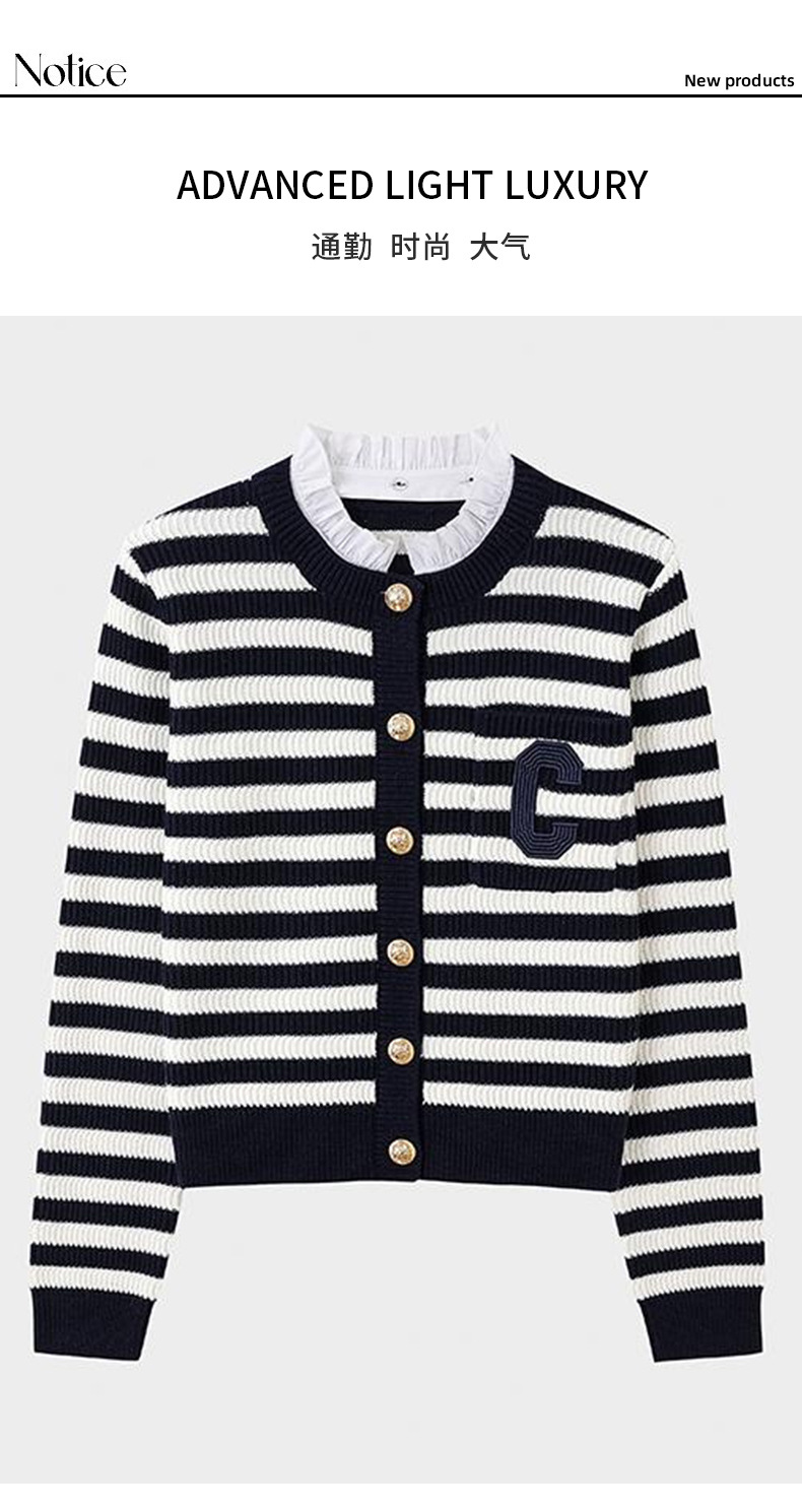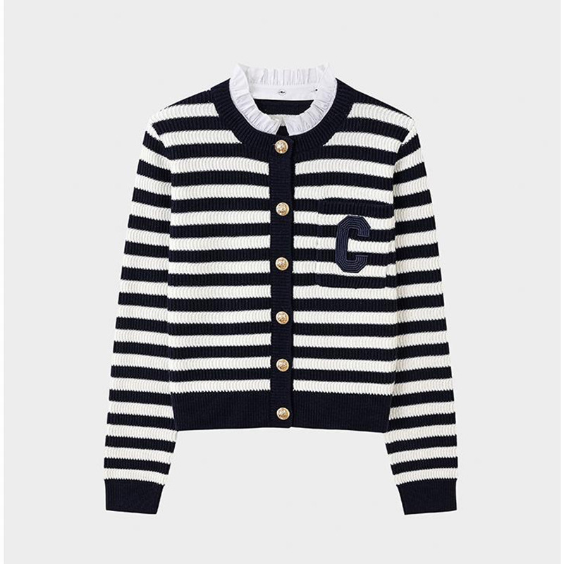 샤넬 스타일 긴 소매 줄무늬 니트 스웨터 여성의 이른 봄 새로운 2025 질감 느슨한 슬리밍 레터 탑스토어 가기