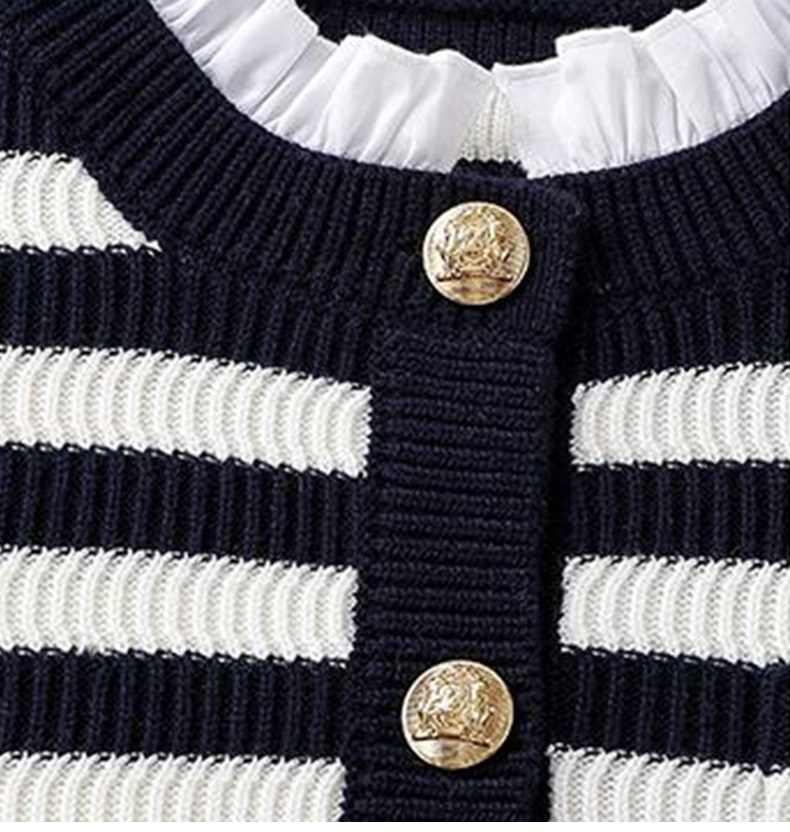 샤넬 스타일 긴 소매 줄무늬 니트 스웨터 여성의 이른 봄 새로운 2025 질감 느슨한 슬리밍 레터 탑