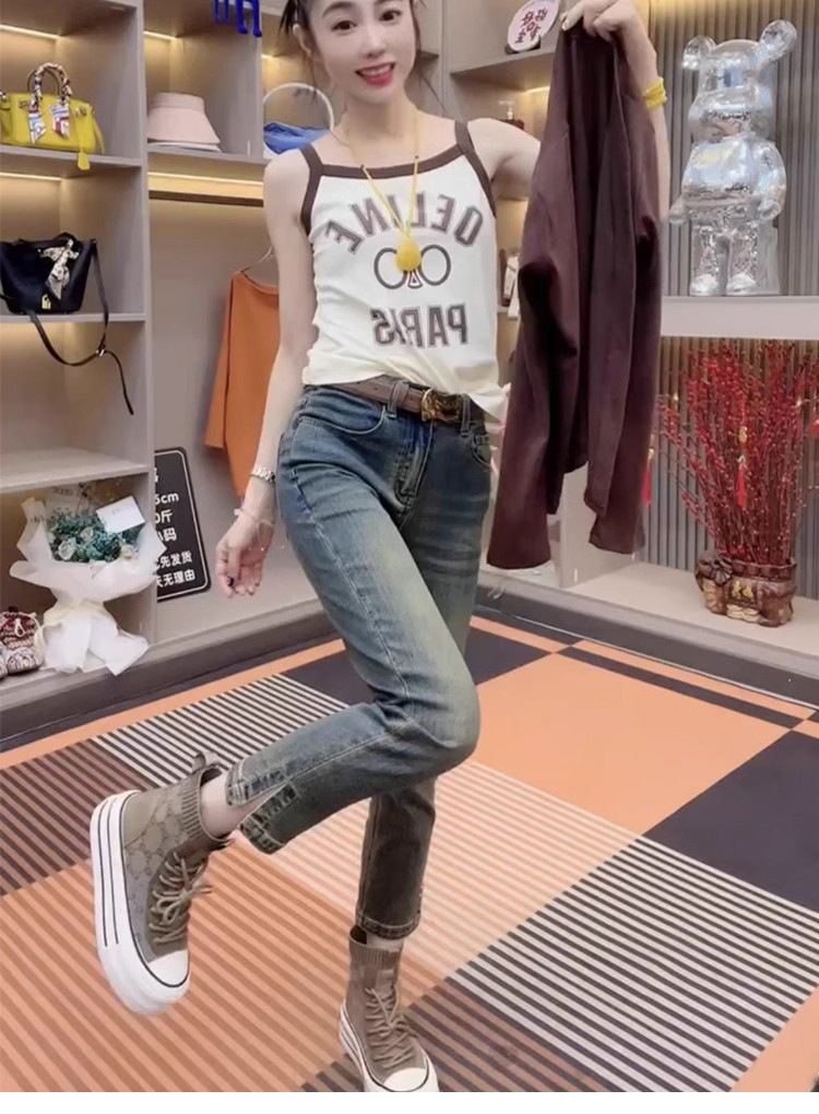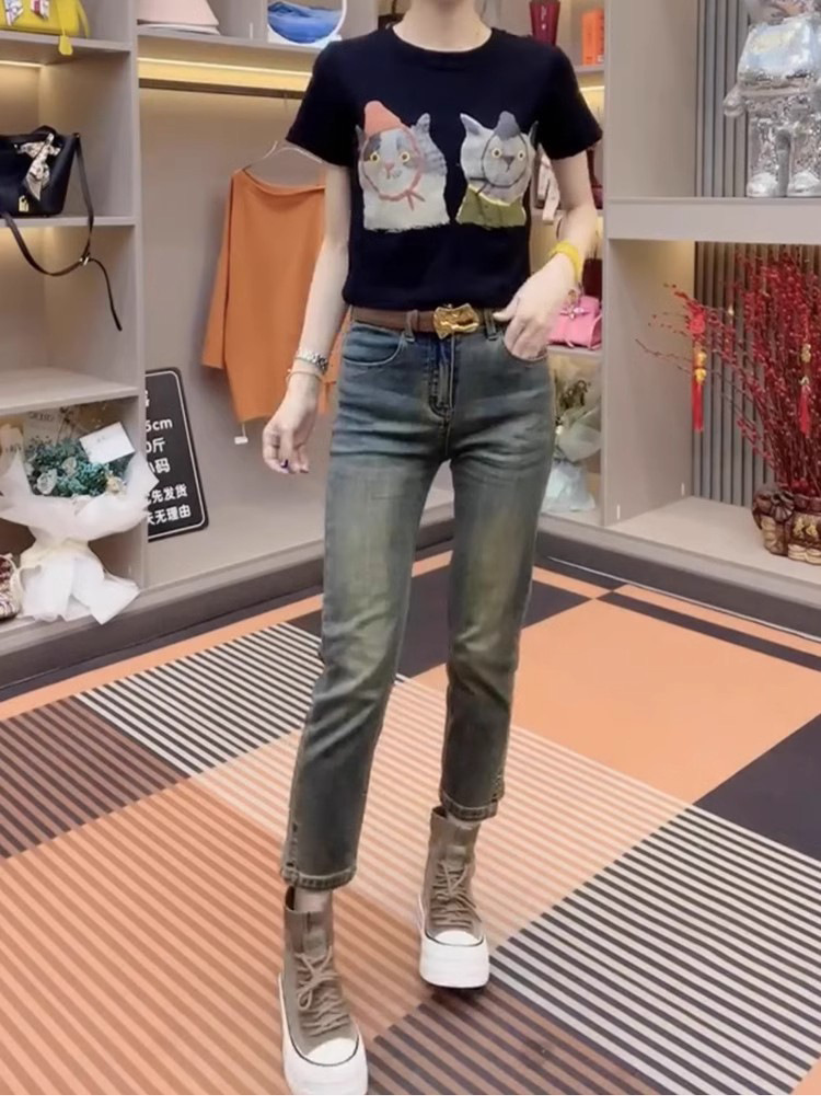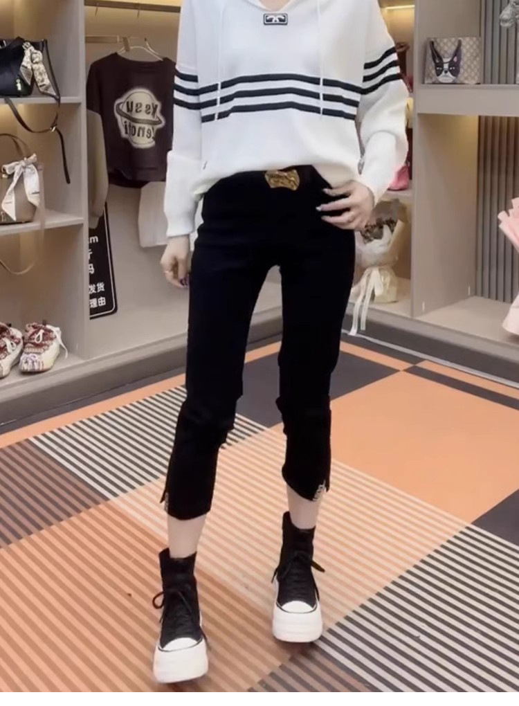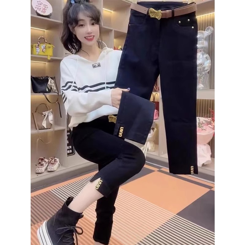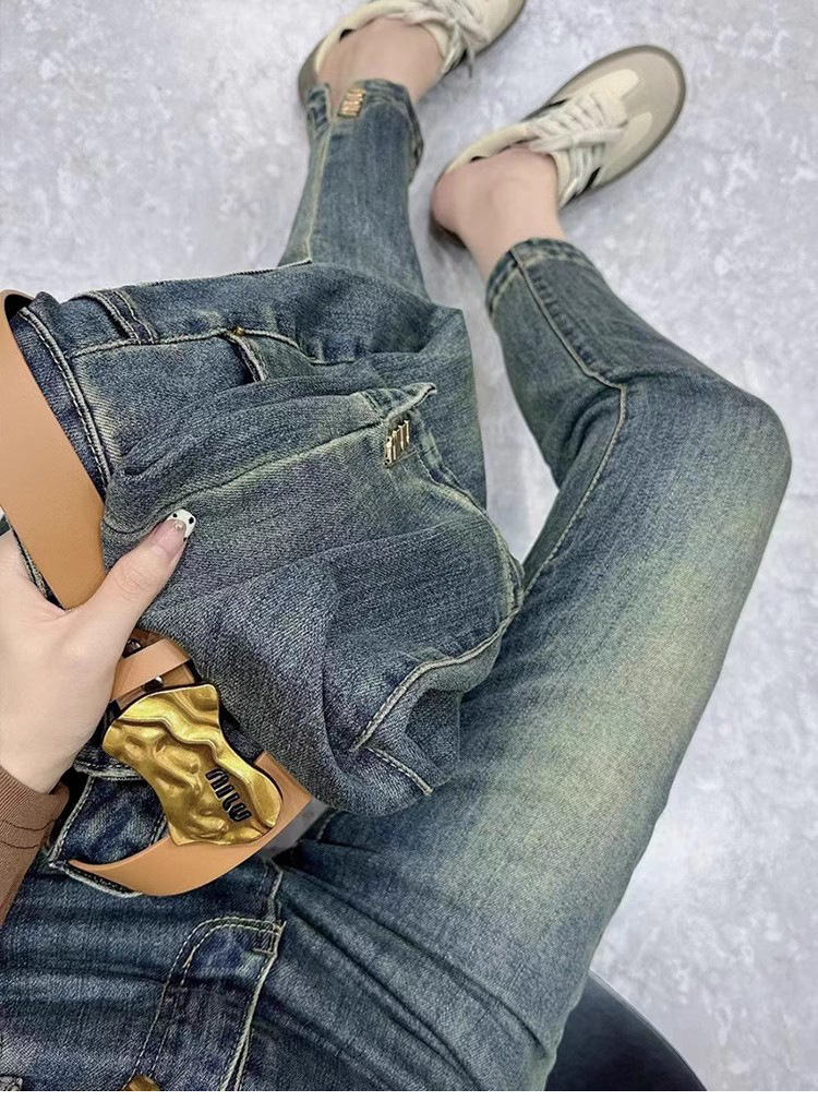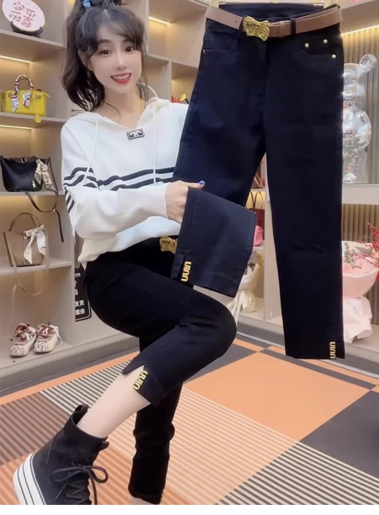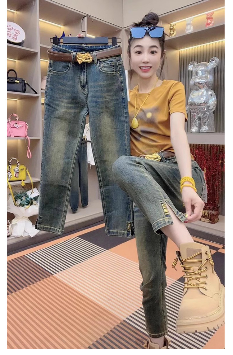 스트레이트 크롭 청바지 여자 2025 년 봄과 여름 새 플러스 사이즈 통통녀 슬리밍 올 매치 스플릿 파이프 바지스토어 가기