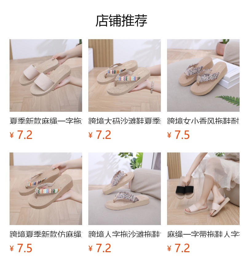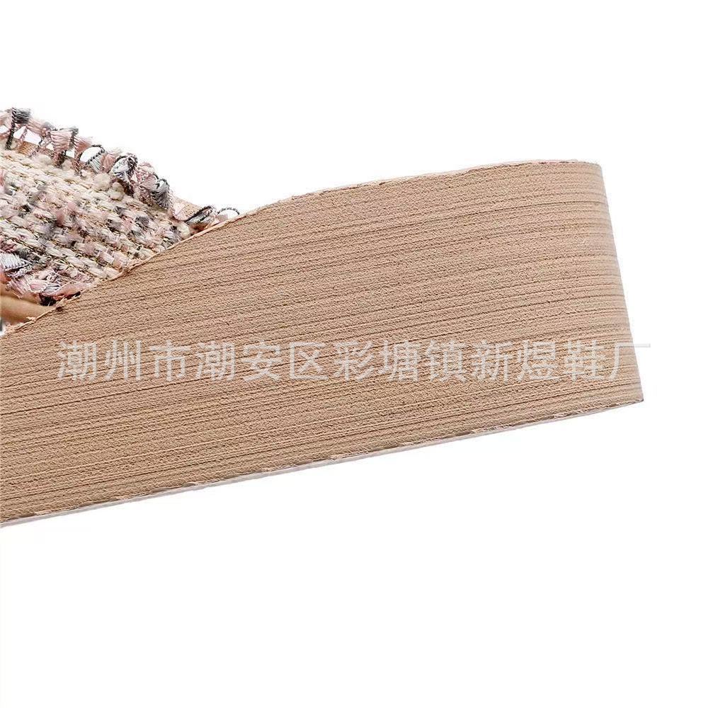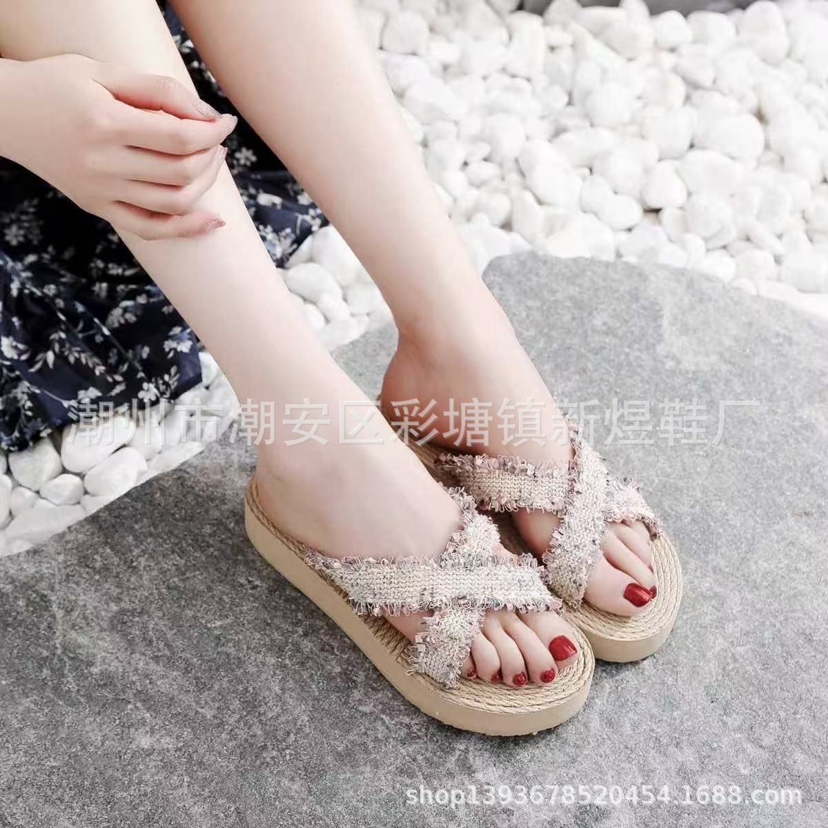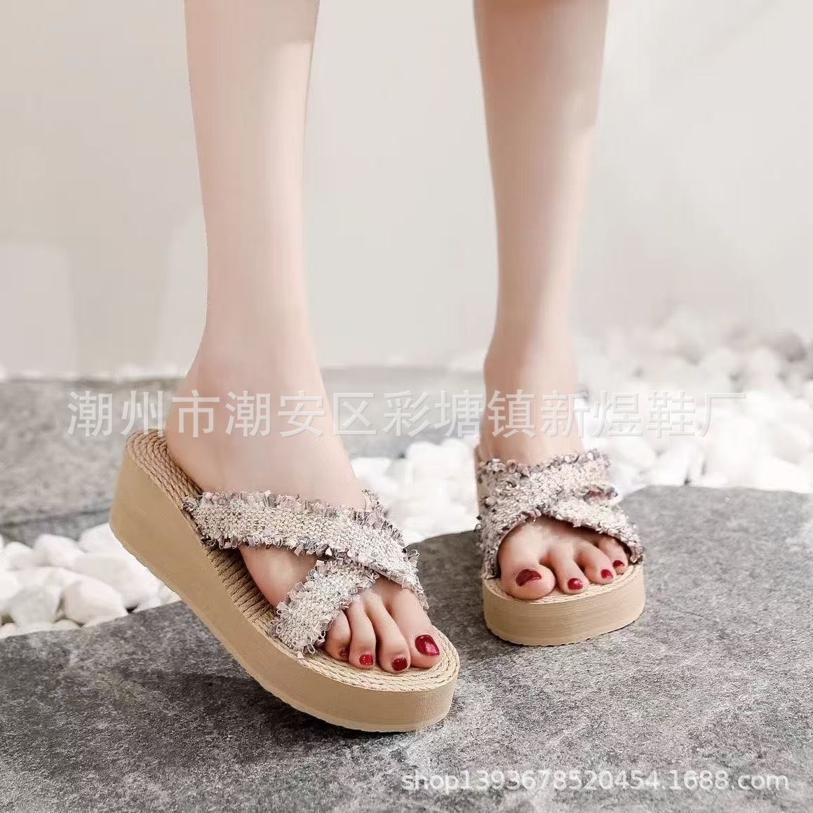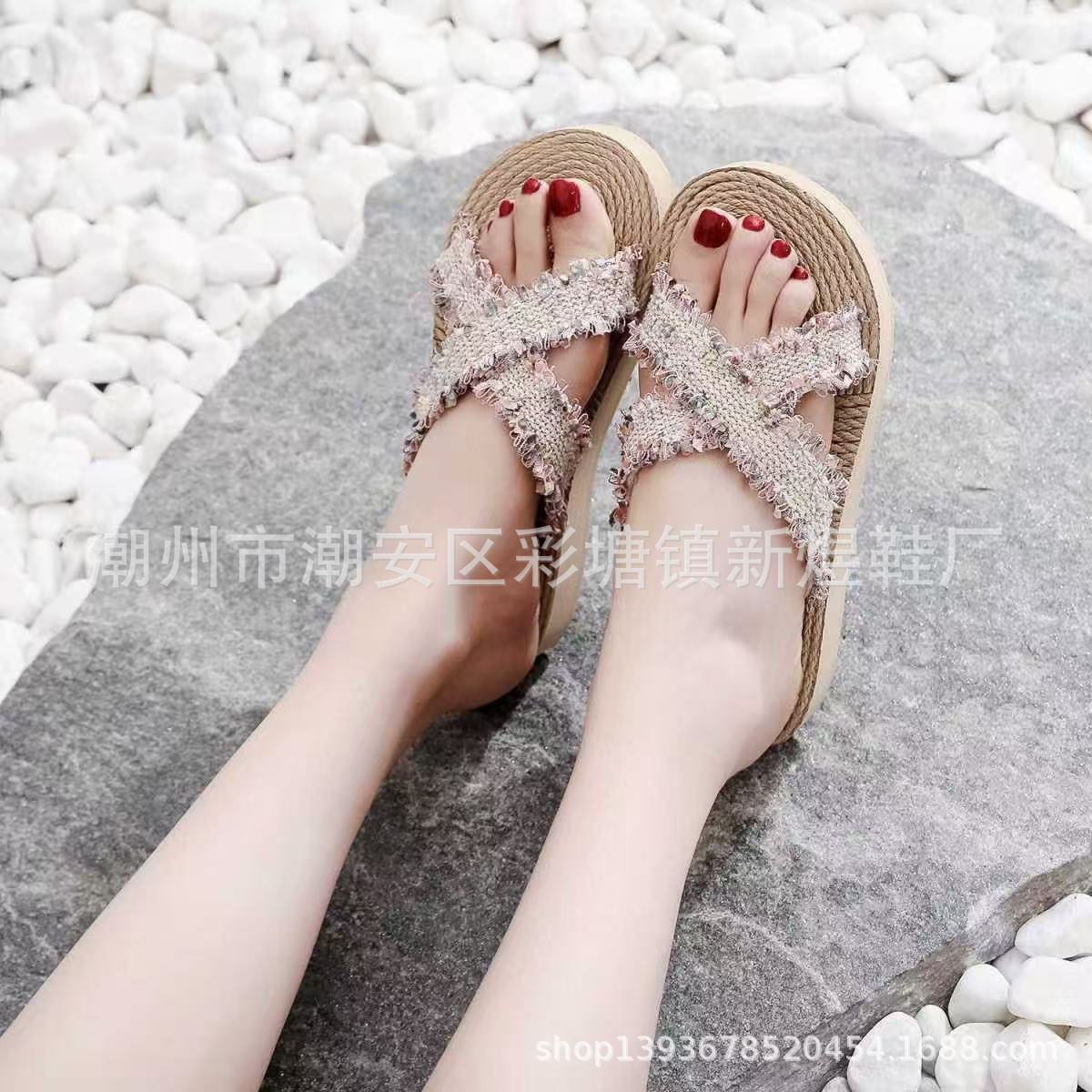 국경 간 여성 샤넬 스타일 내마모성 여성용 슬리퍼 여름 새로운 두꺼운 밑창 웨지 내마모성 대마 로프 플립 플롭 외착용스토어 가기