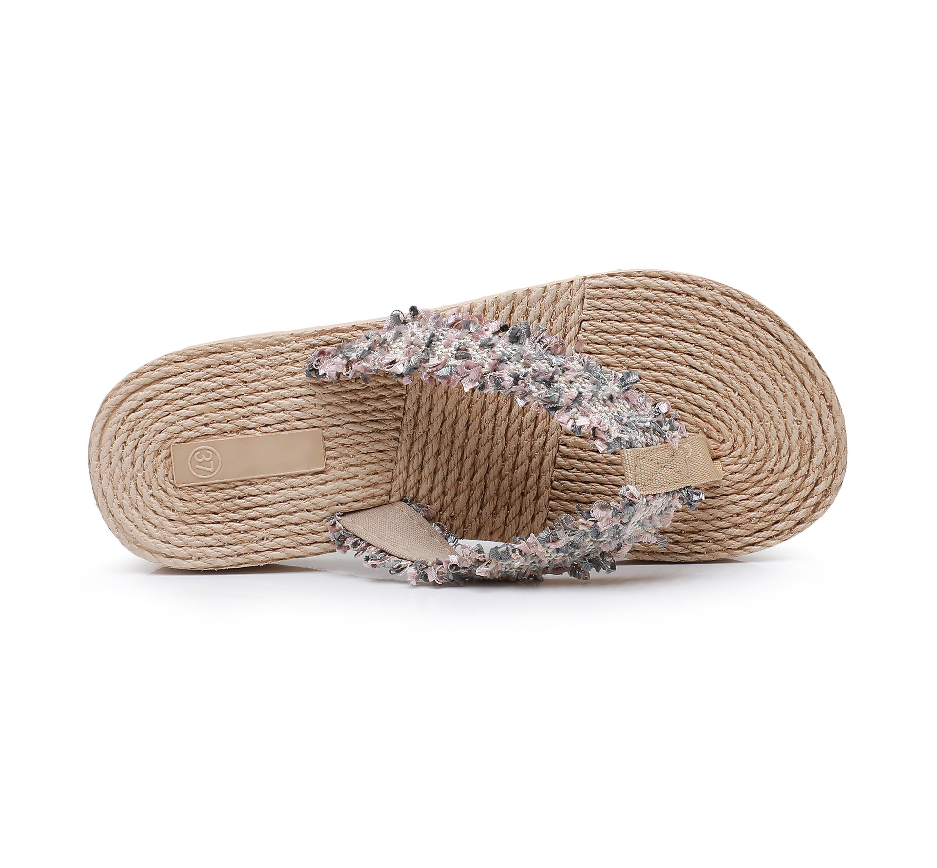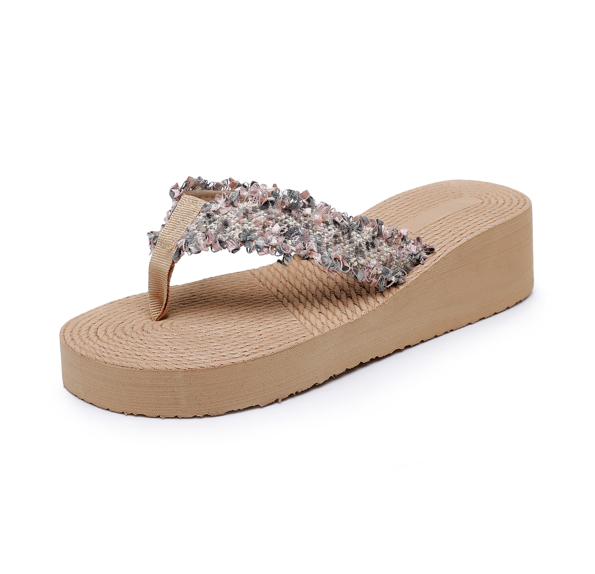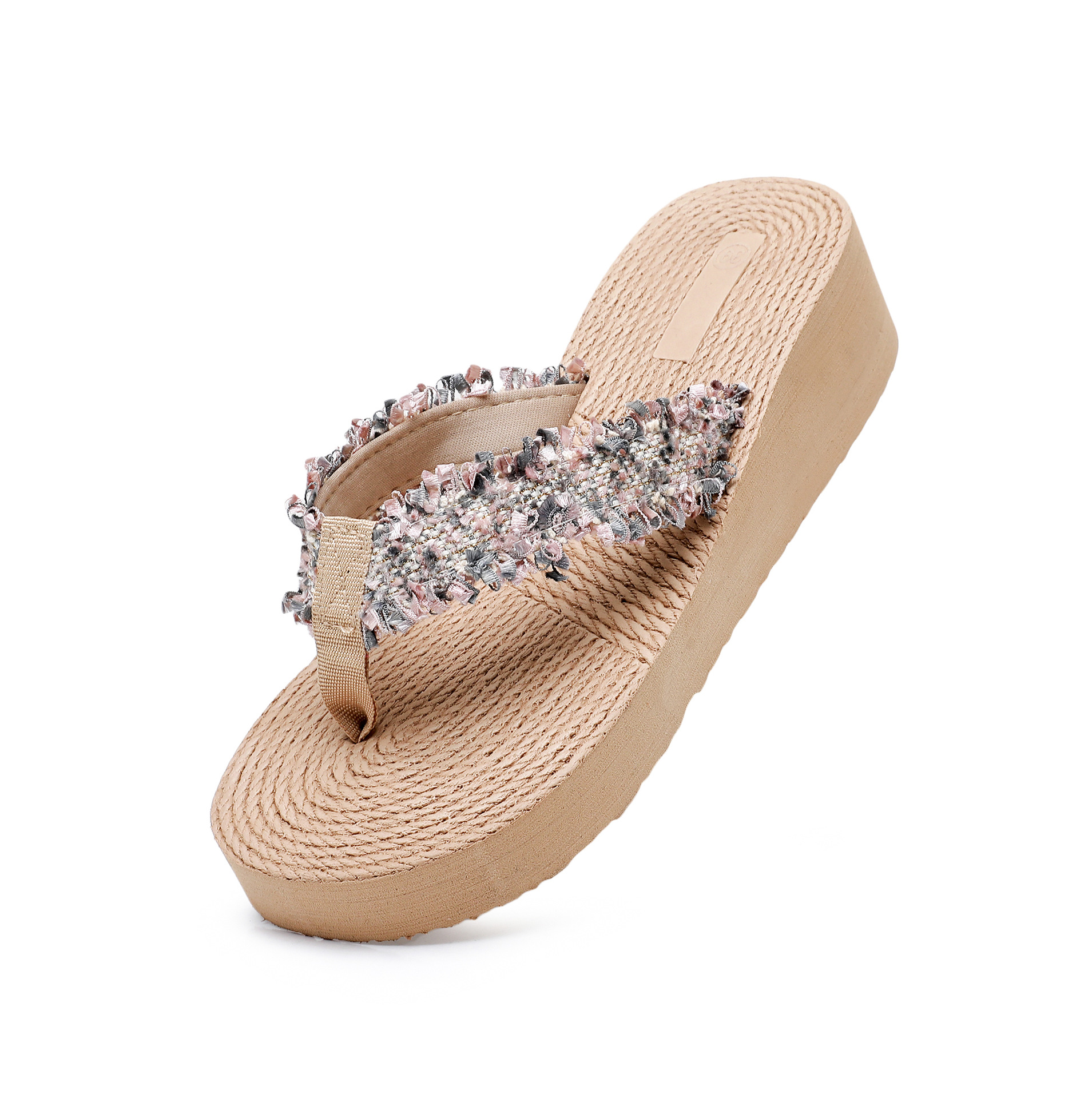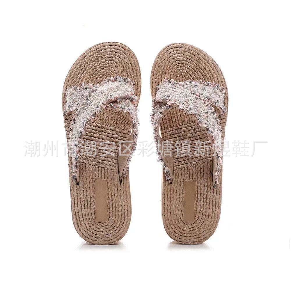 국경 간 여성 샤넬 스타일 내마모성 여성용 슬리퍼 여름 새로운 두꺼운 밑창 웨지 내마모성 대마 로프 플립 플롭 외착용