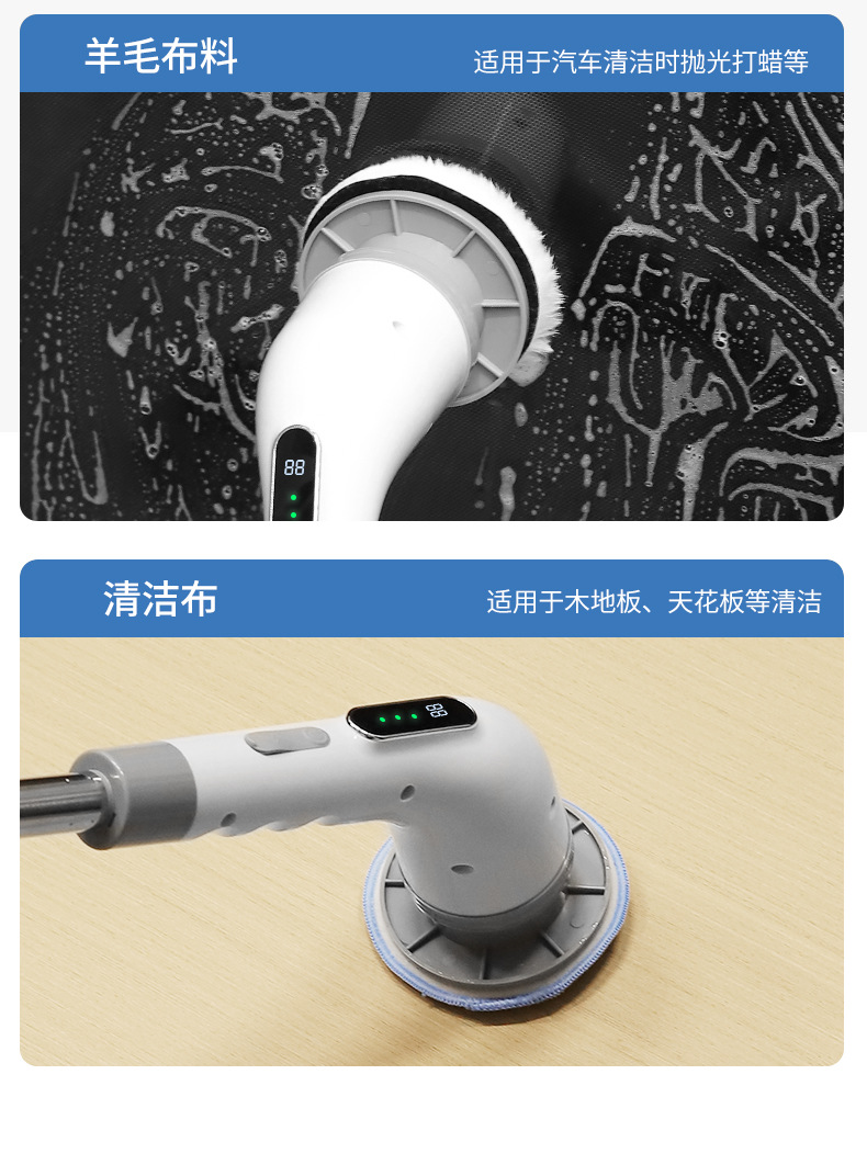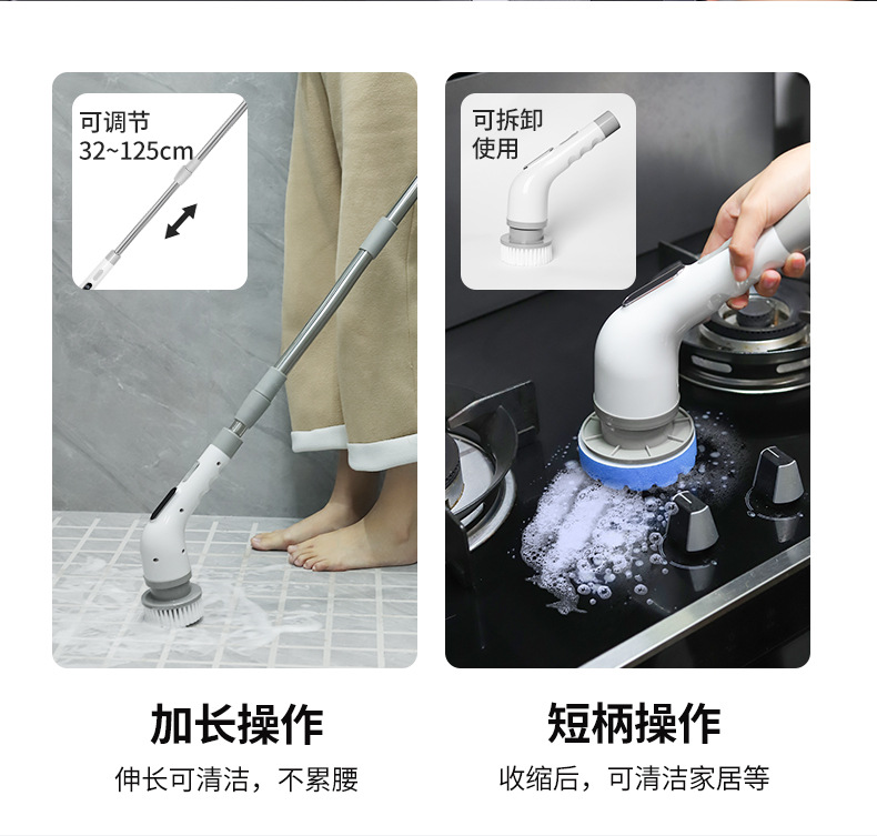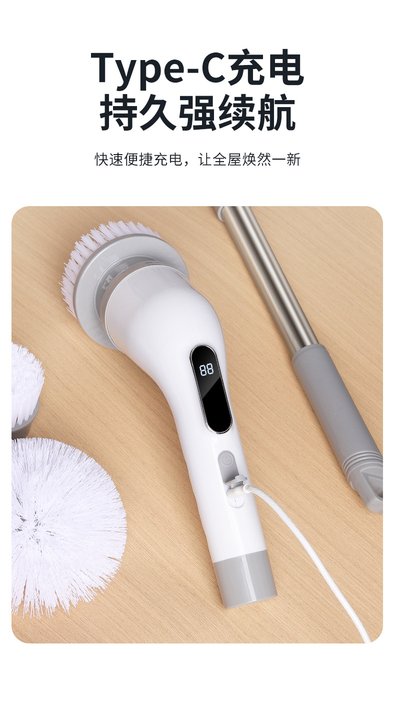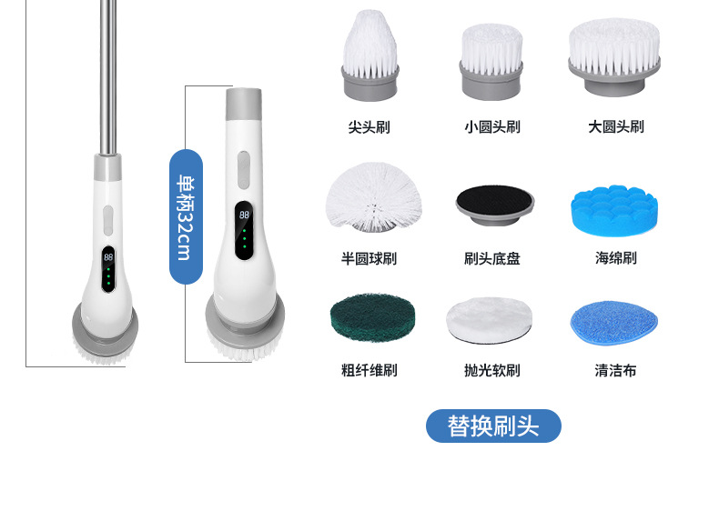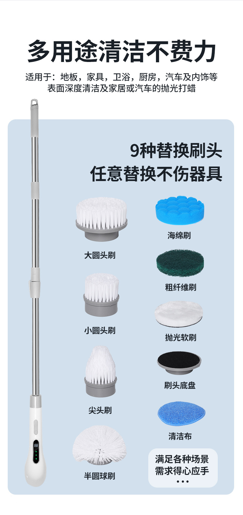 9헤드 주방 및 욕실 청소용 국경 간 다기능 전기 청소 브러시 무선 충전식 텔레스코픽 휴대용 브러시 바닥 브러시