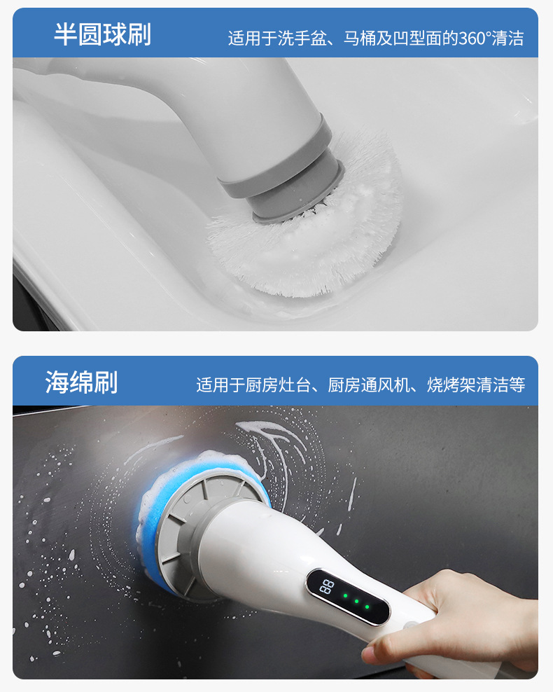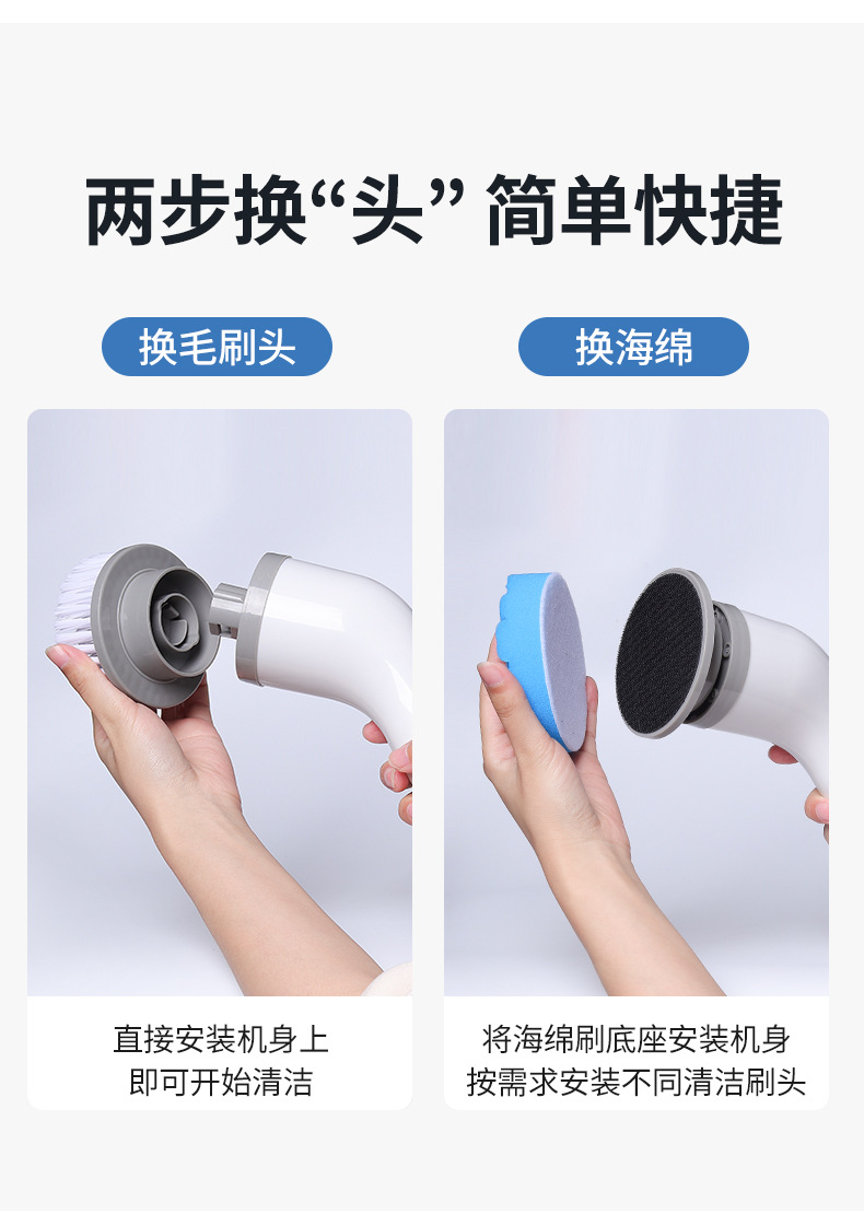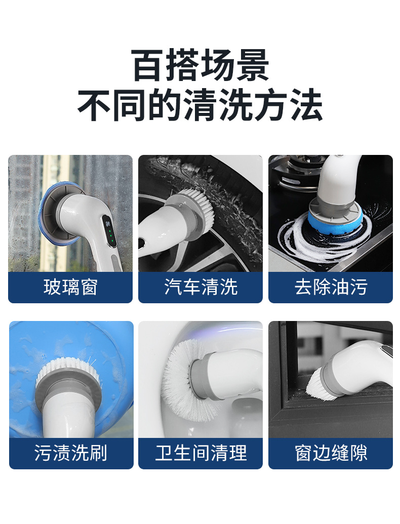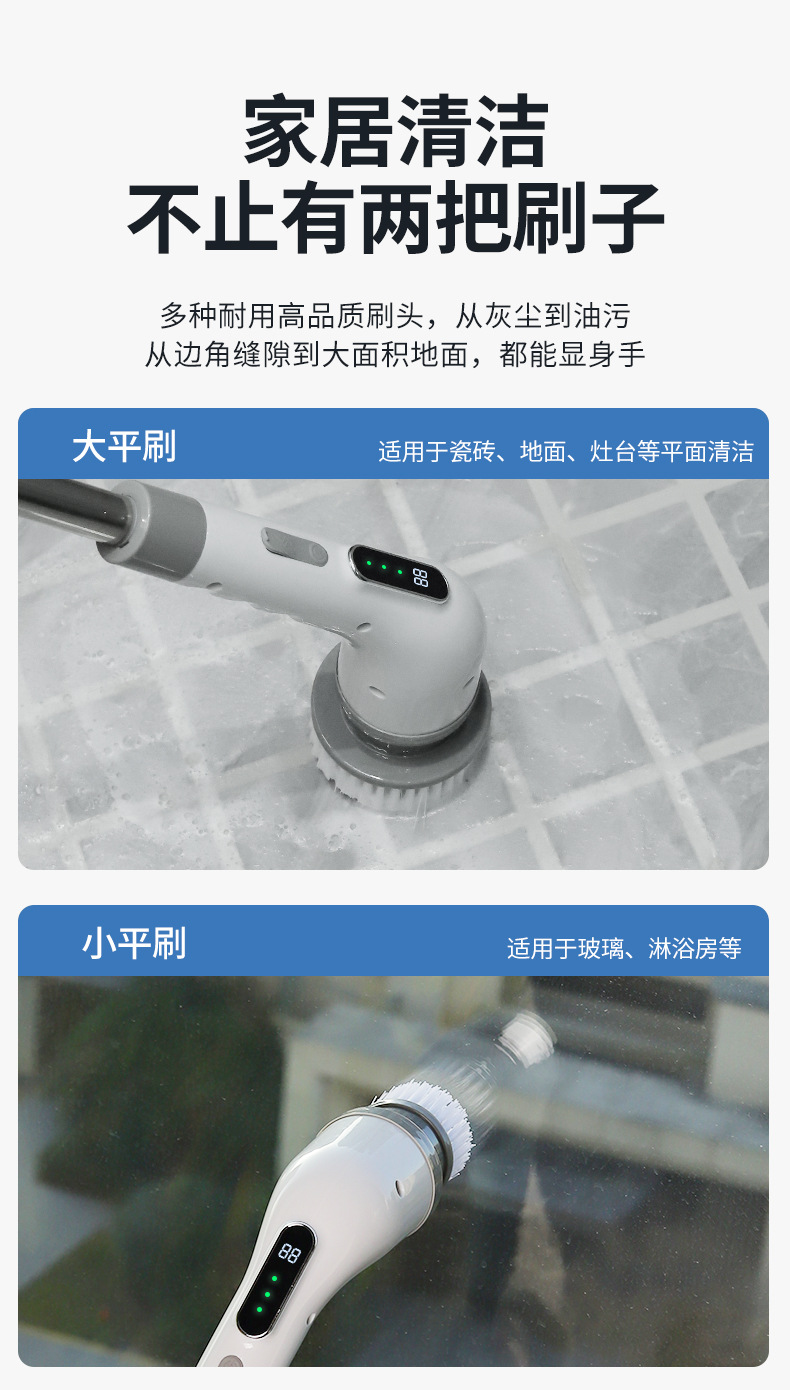 9헤드 주방 및 욕실 청소용 국경 간 다기능 전기 청소 브러시 무선 충전식 텔레스코픽 휴대용 브러시 바닥 브러시