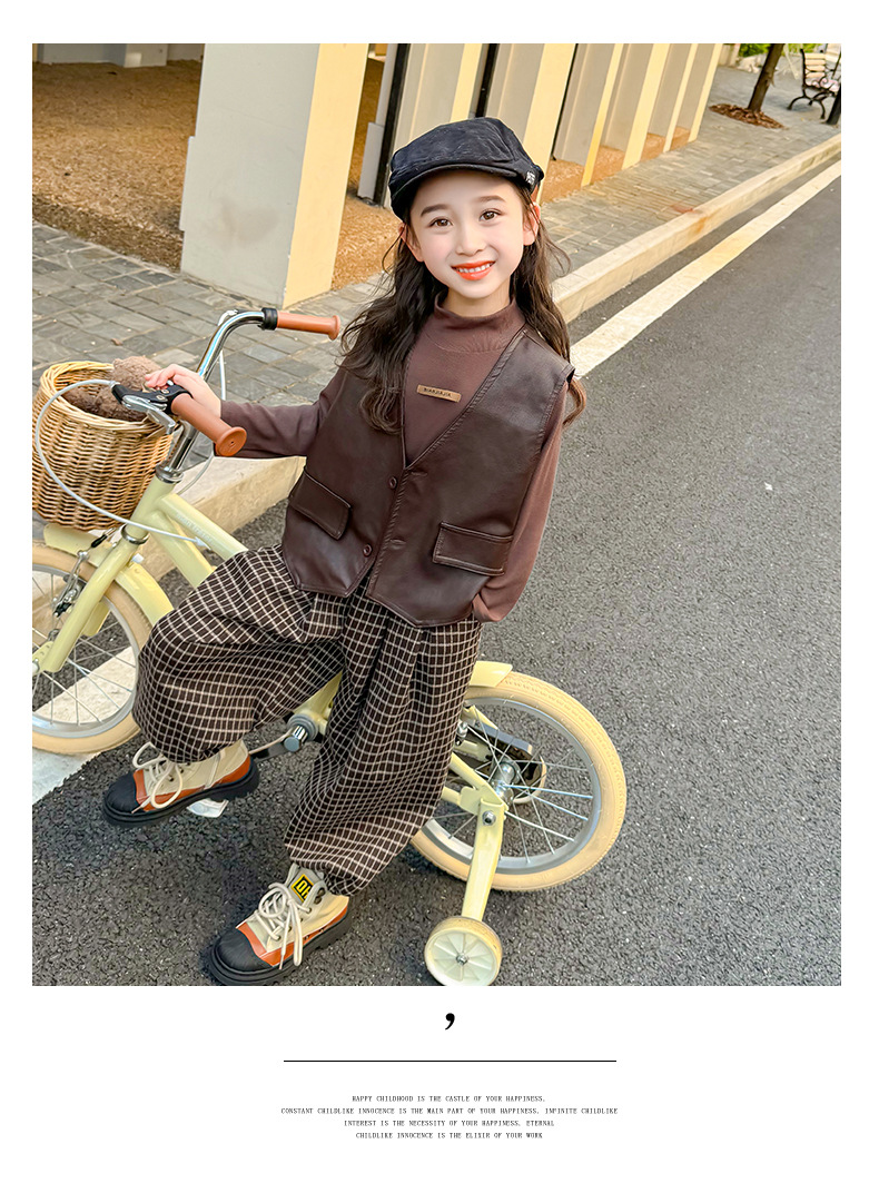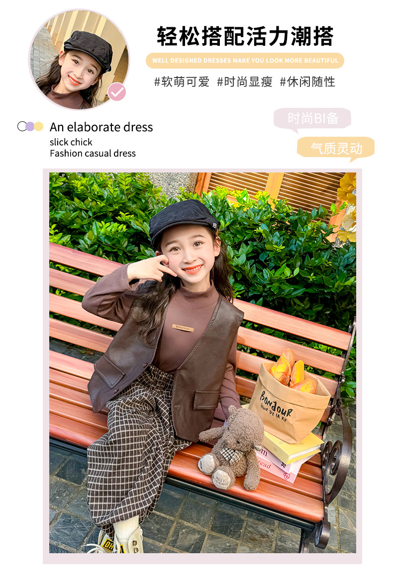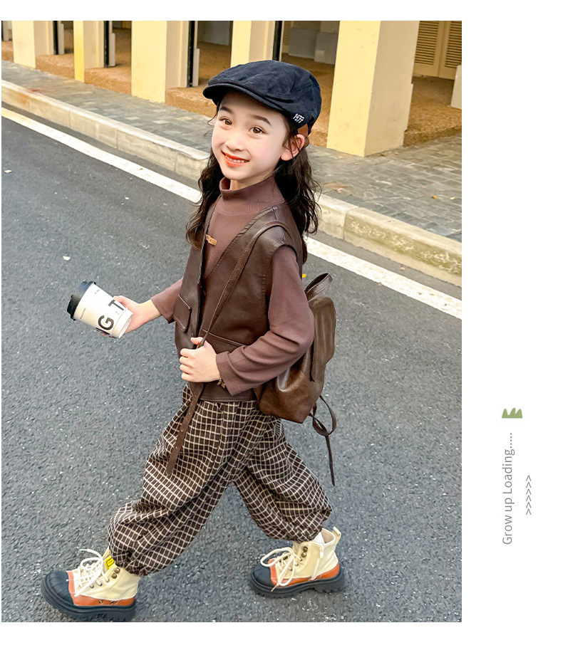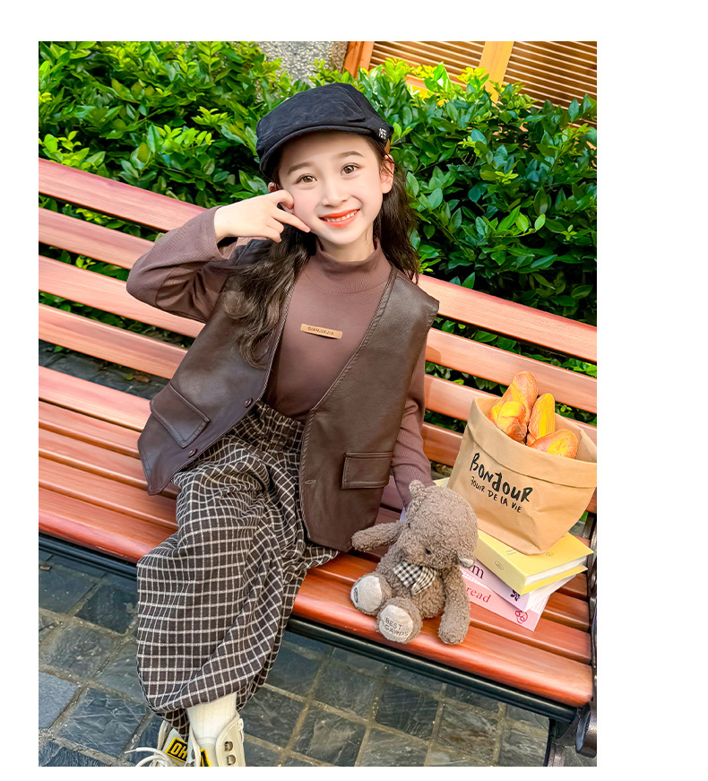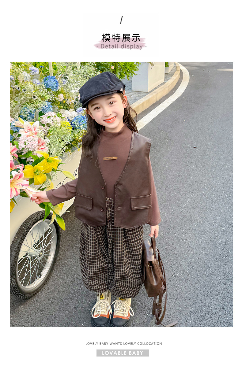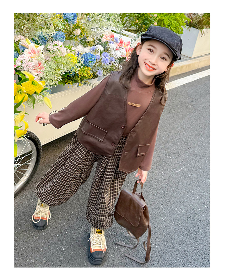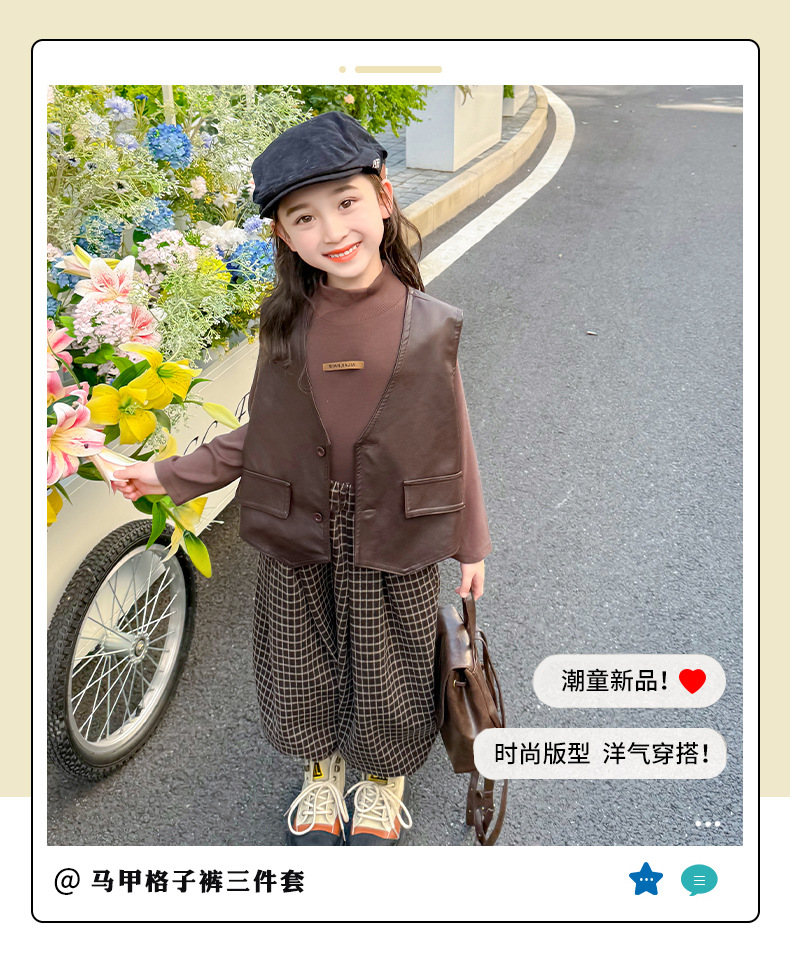 소녀 세트 봄과 가을 2025 새로운 가을 패션 어린이 소녀 조끼 세련된 놀이 바지 3 종 세트스토어 가기