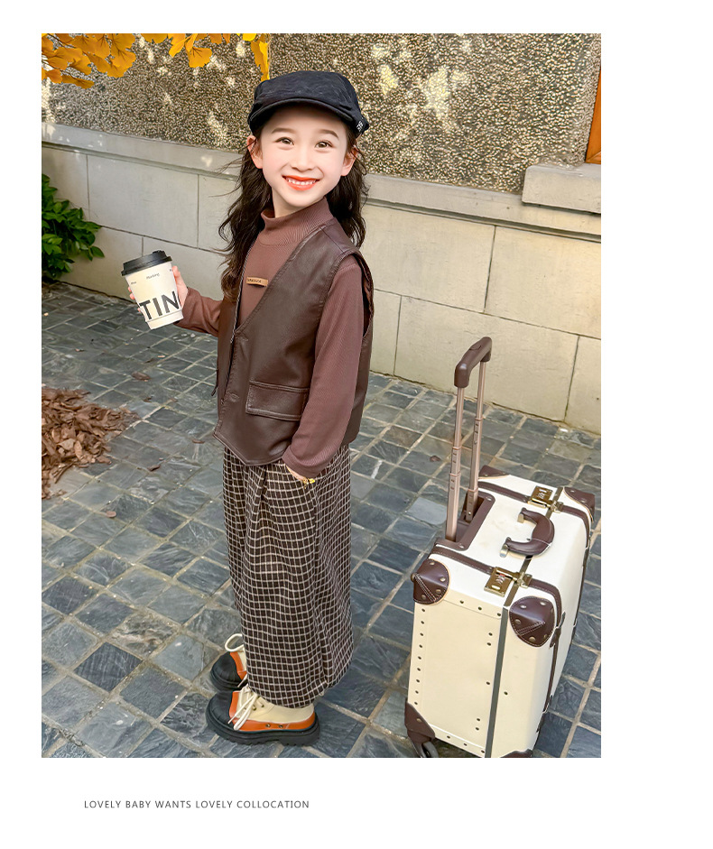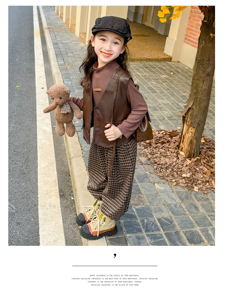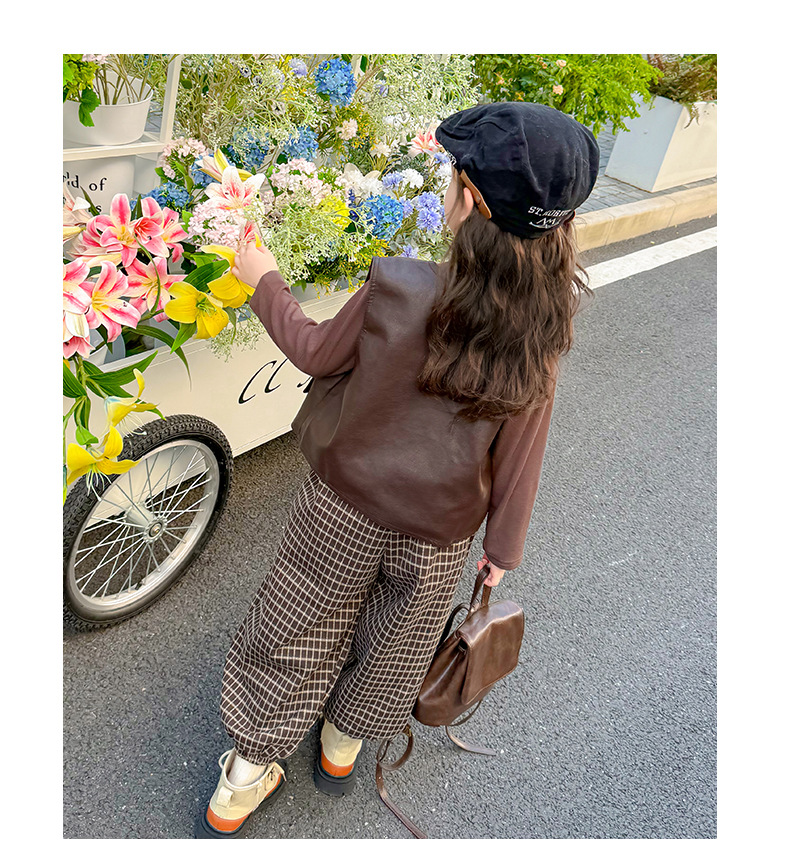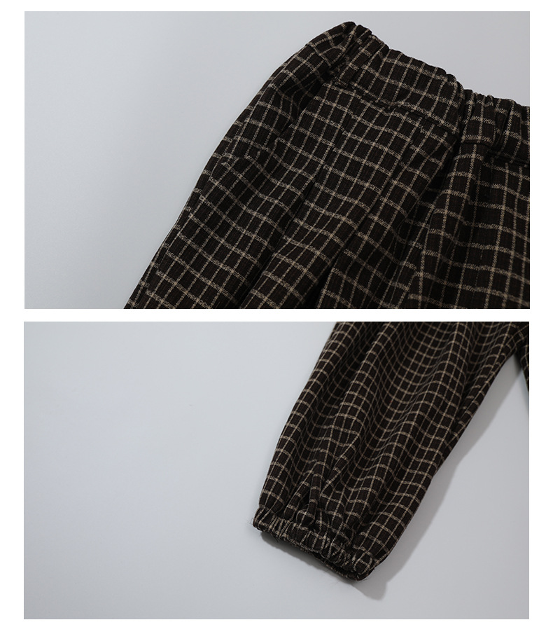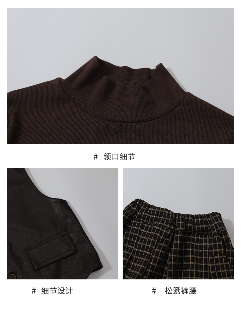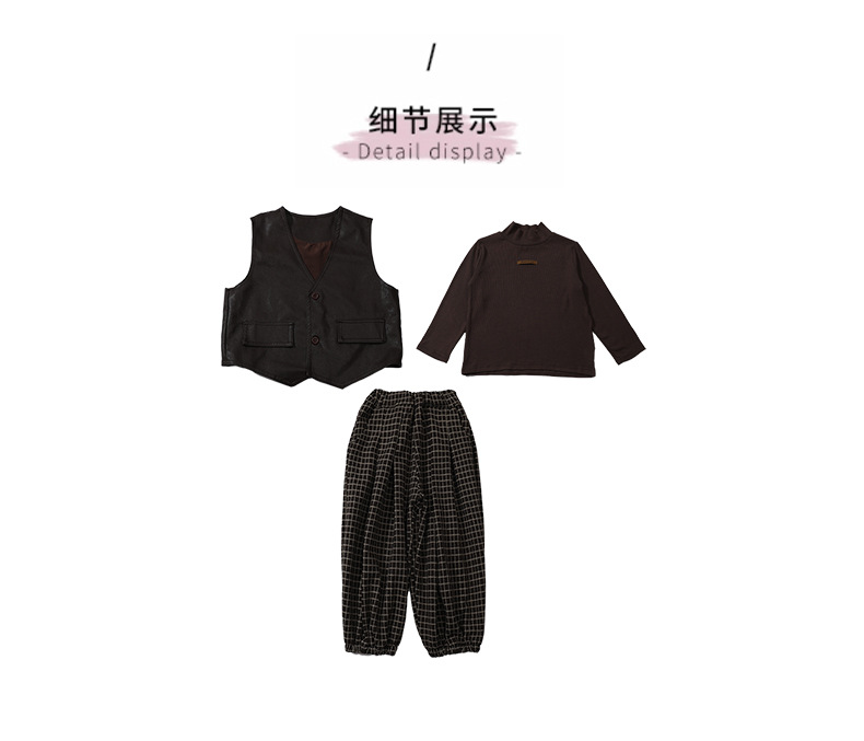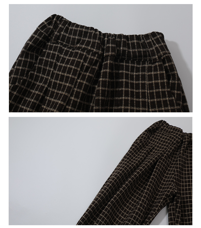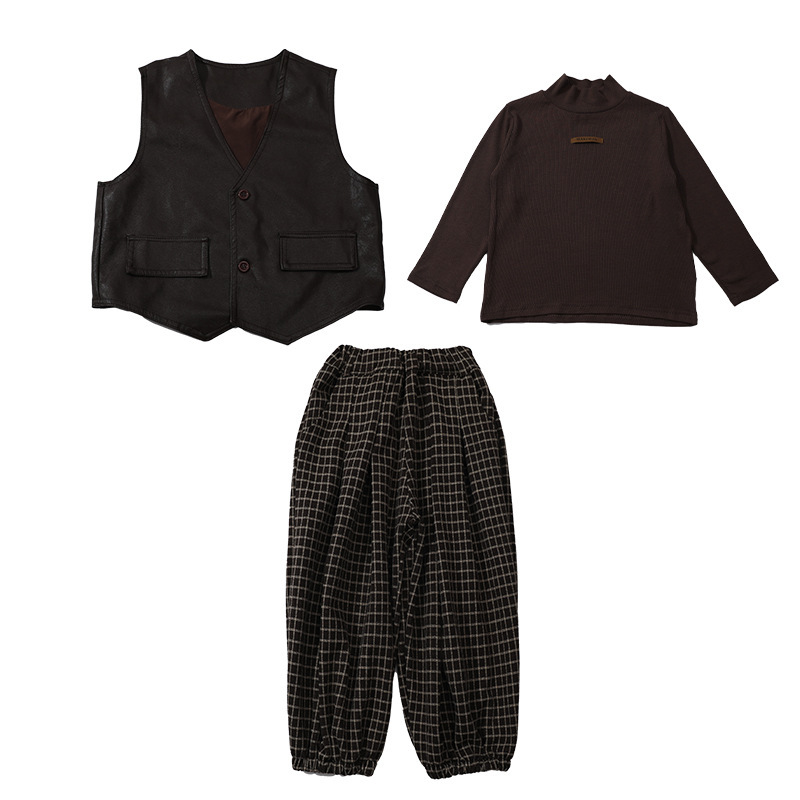 • 브라운 조끼와 체크무늬 팬츠 3종 세트