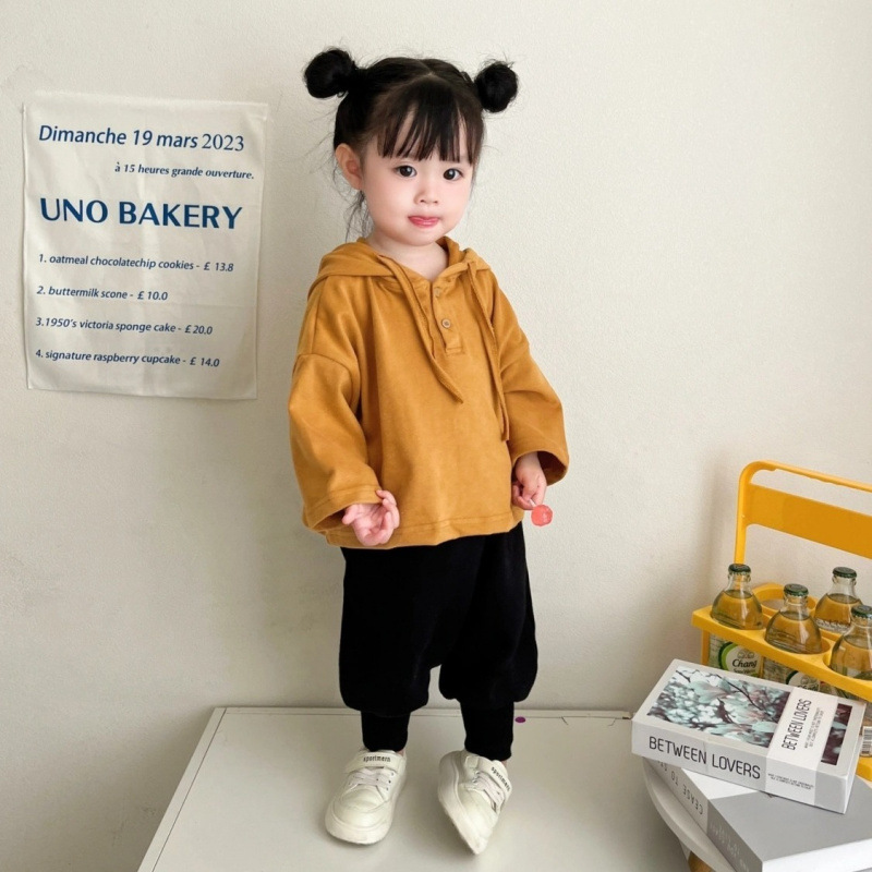 • 카라멜 컬러의 스웨트셔츠+블랙 팬츠 [투피스세트]