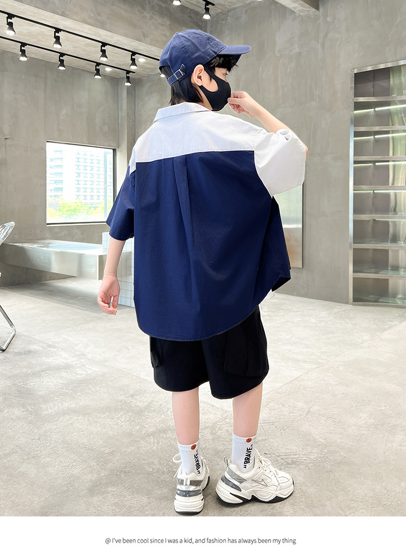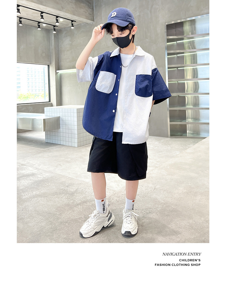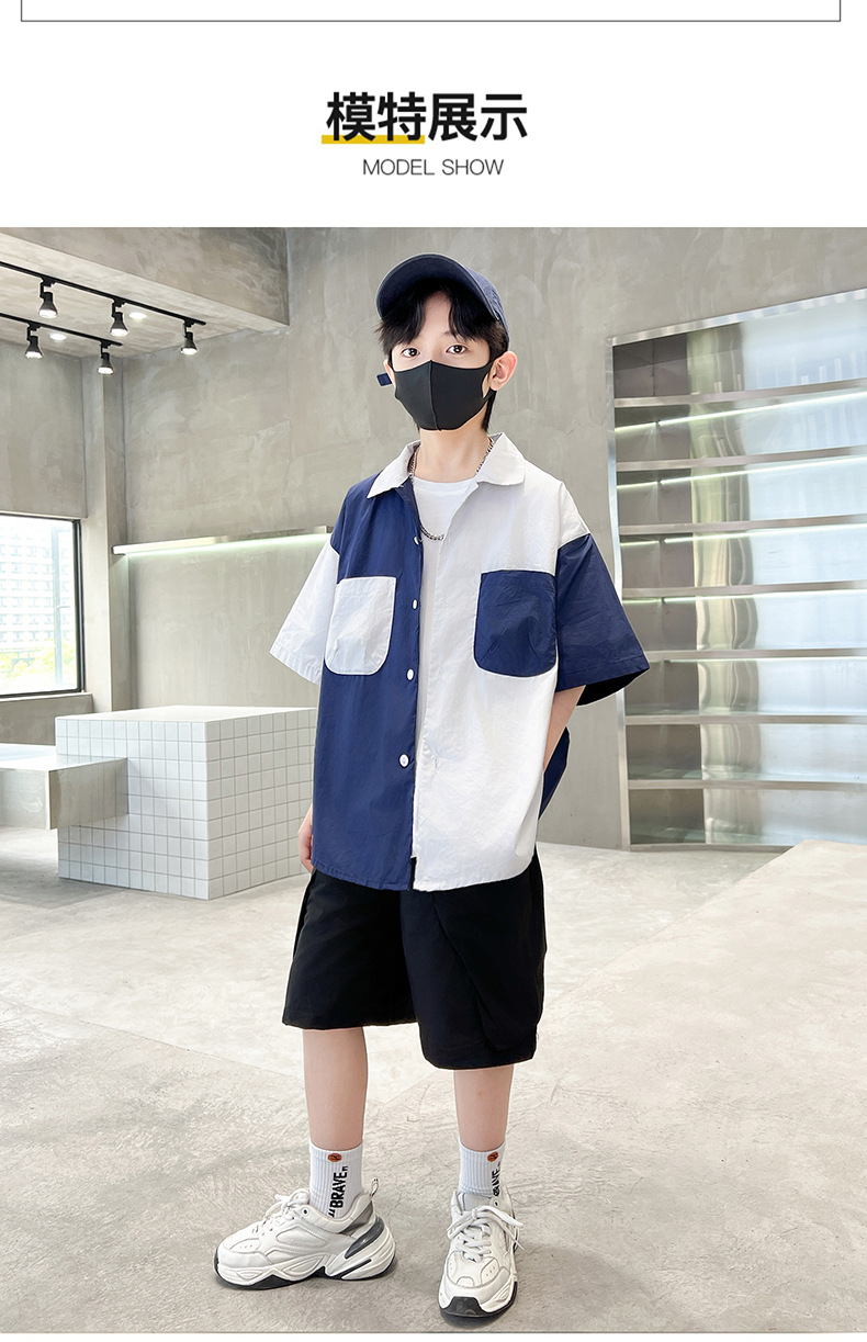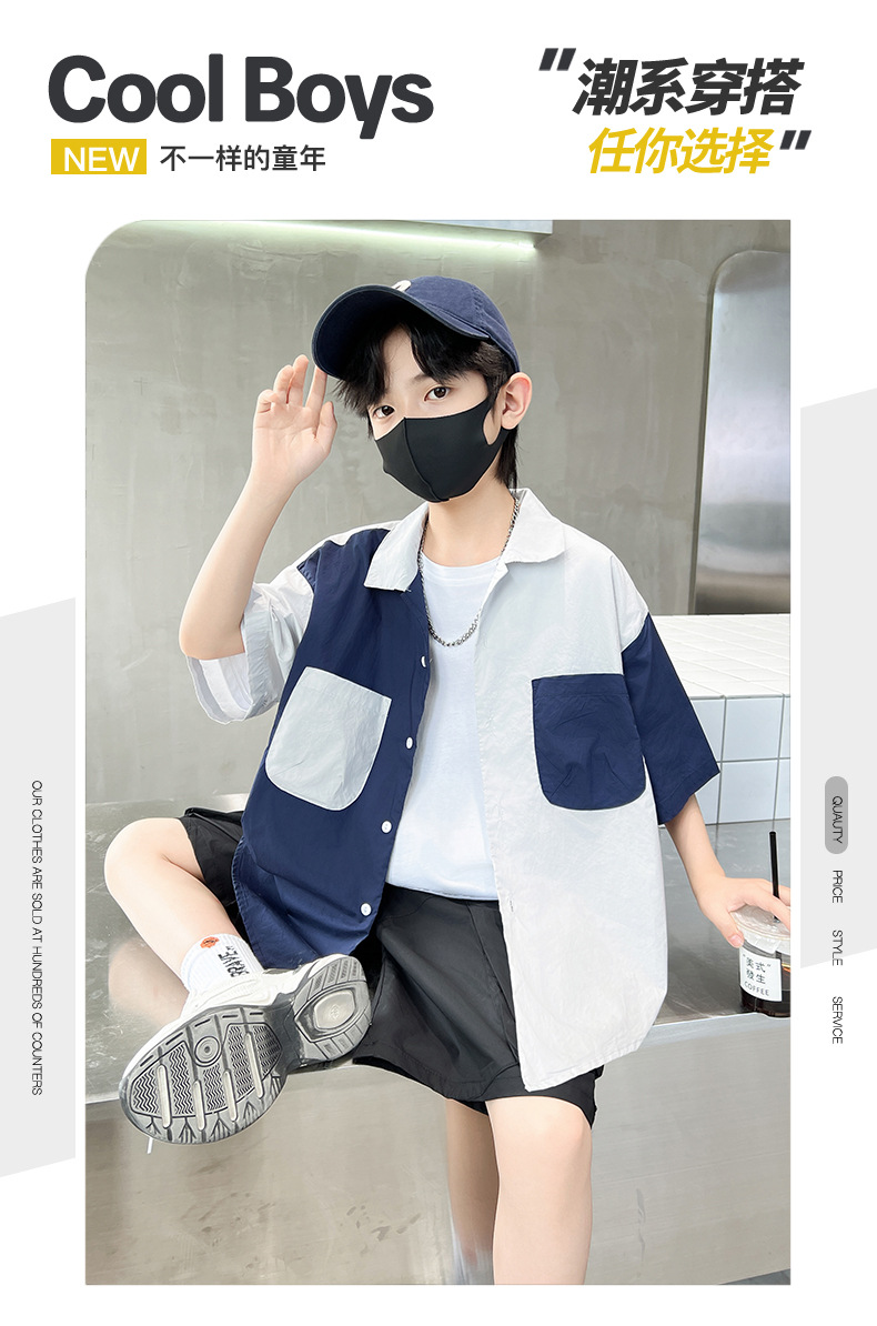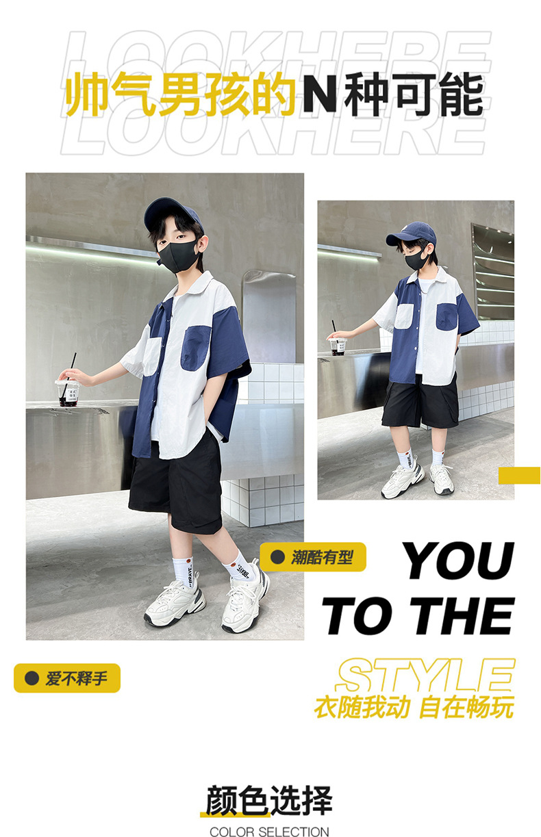 아동복 소년 반팔 셔츠 2025 새 얇은 여름 중 · 대형 어린이 반바지 튀긴 거리 소년의 서양식 옷스토어 가기