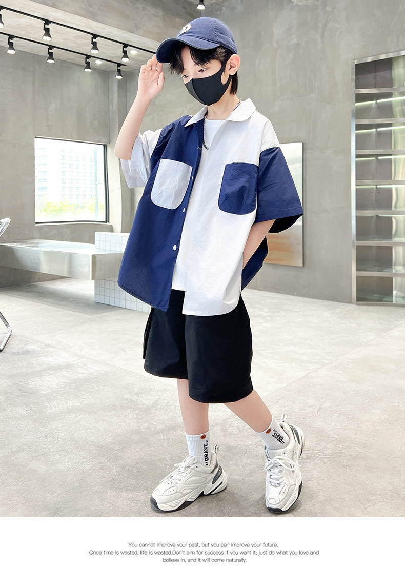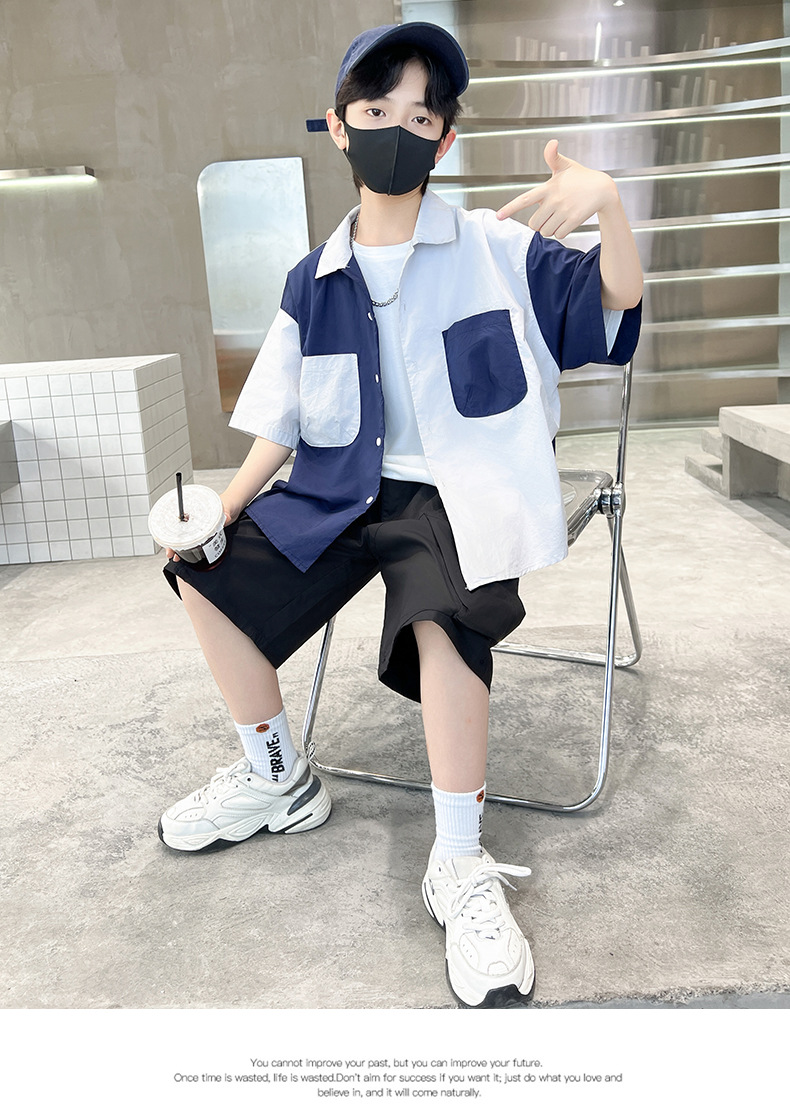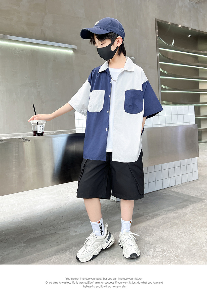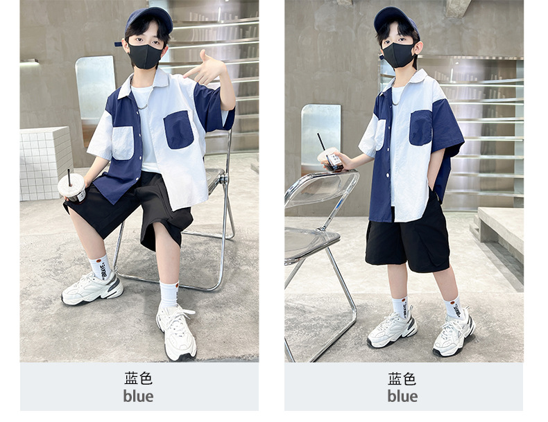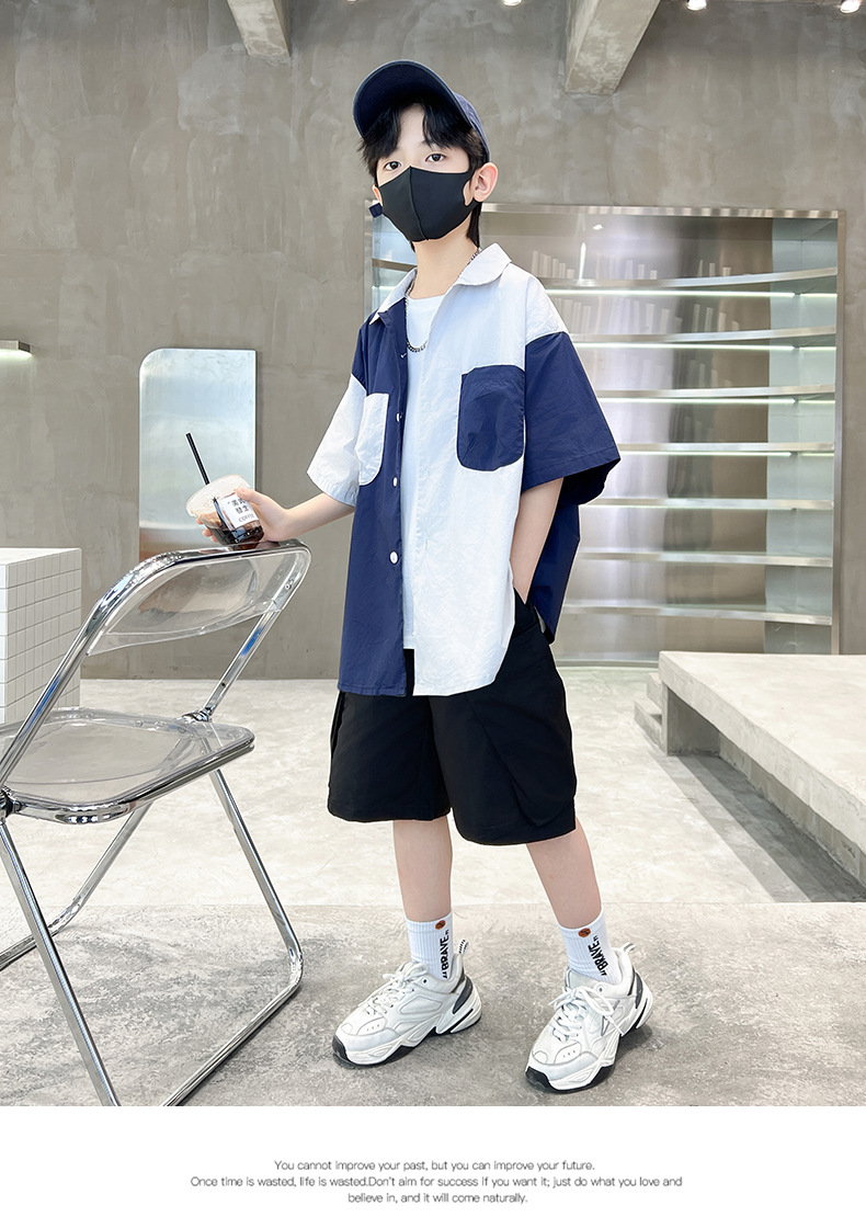 아동복 소년 반팔 셔츠 2025 새 얇은 여름 중 · 대형 어린이 반바지 튀긴 거리 소년의 서양식 옷