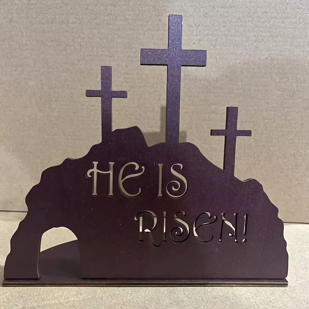 국경 간 나무 공예 부활절 "그는 상승했다" 장면 나무 장식품 홈 바탕 화면 장식스토어 가기