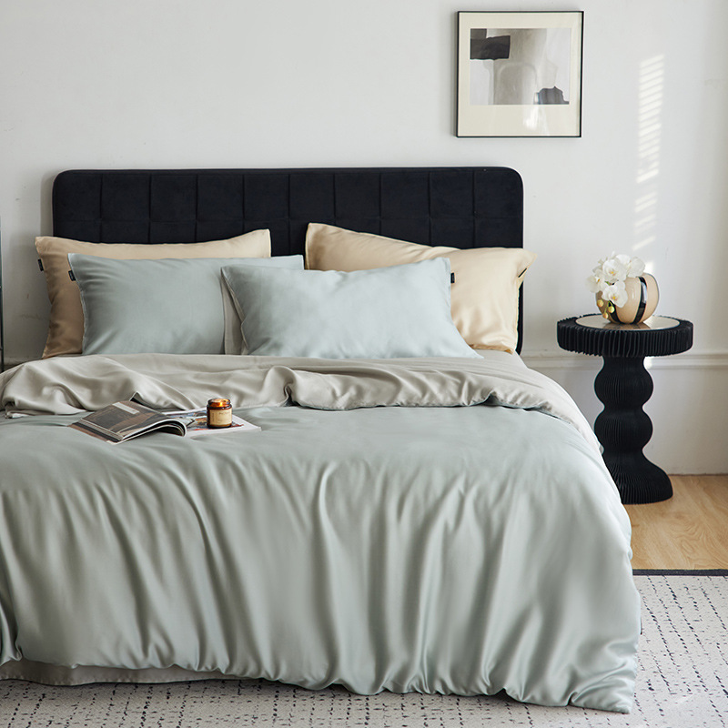 80 년대 Lyocell Tencel 침구 4 종 세트 엔트리 럭셔리 아이스 실크 퀼트 커버 퀼트 커버 침대 시트 실크 새로운 스타일의 침구