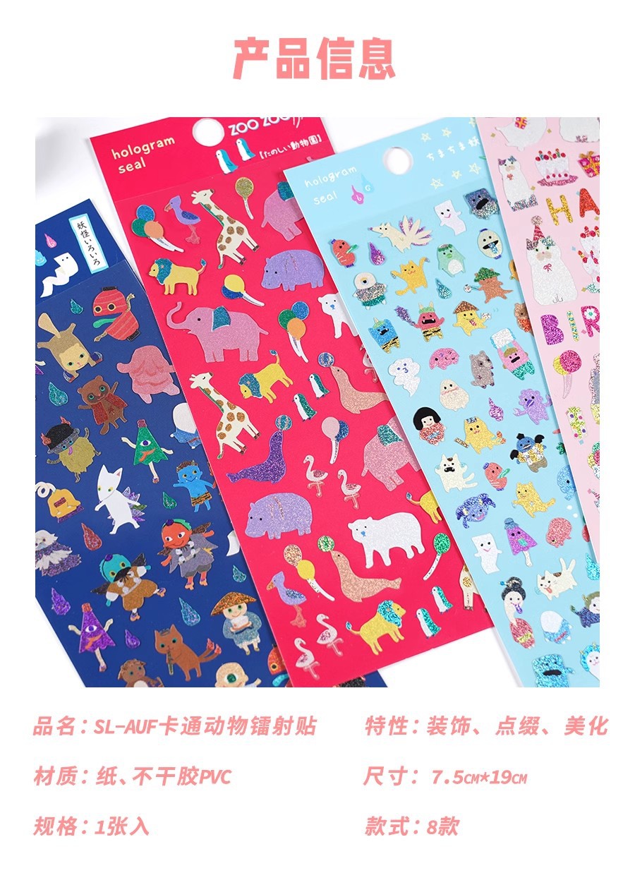 • SL-AUF 만화 동물 레이저 스티커 1-8 스타일 혼합 머리카락