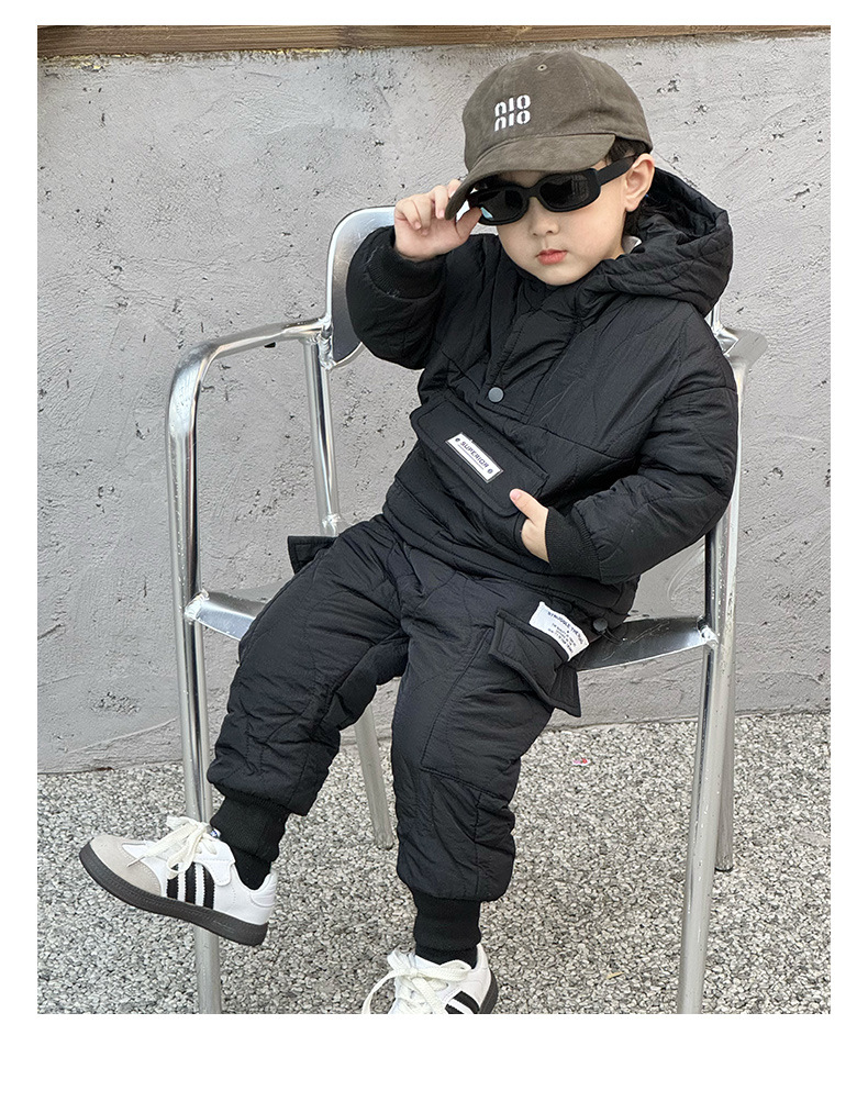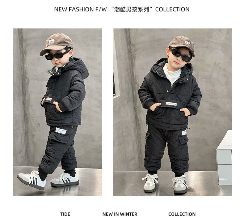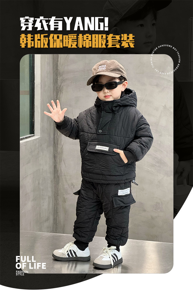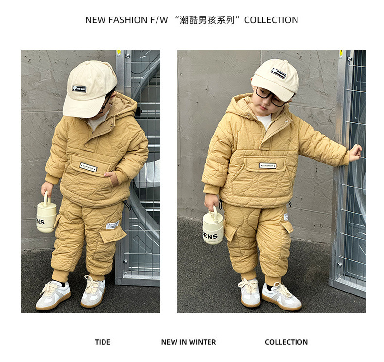 남학생의 겨울면 패딩 재킷 세트 2025 새로운 어린이 따뜻한 기모 면화 패딩 재킷면 패딩 바지 남성용 보물 서양식 패딩면 패딩 재킷스토어 가기