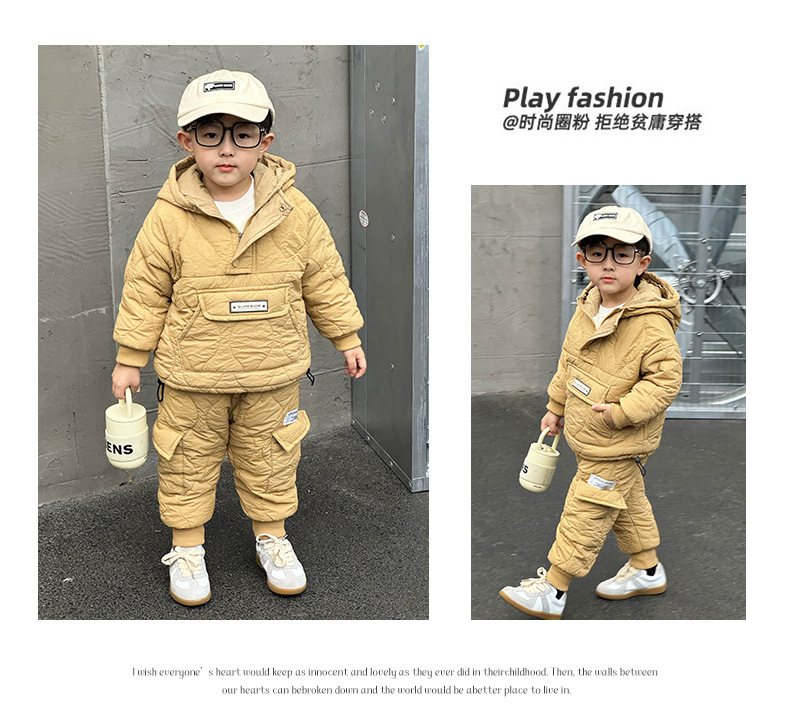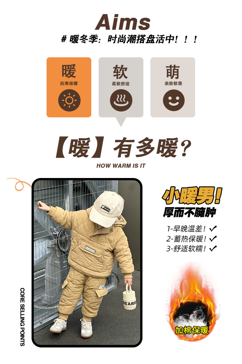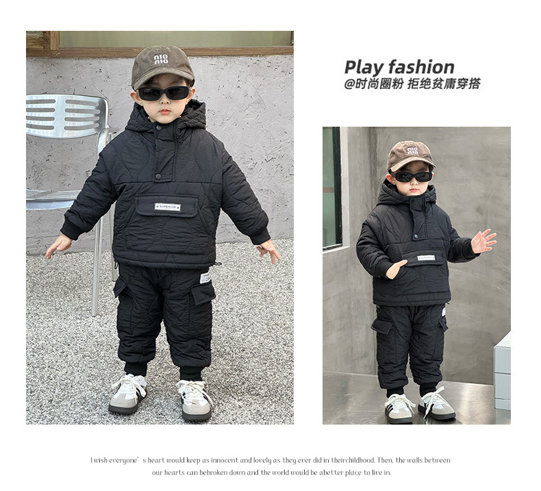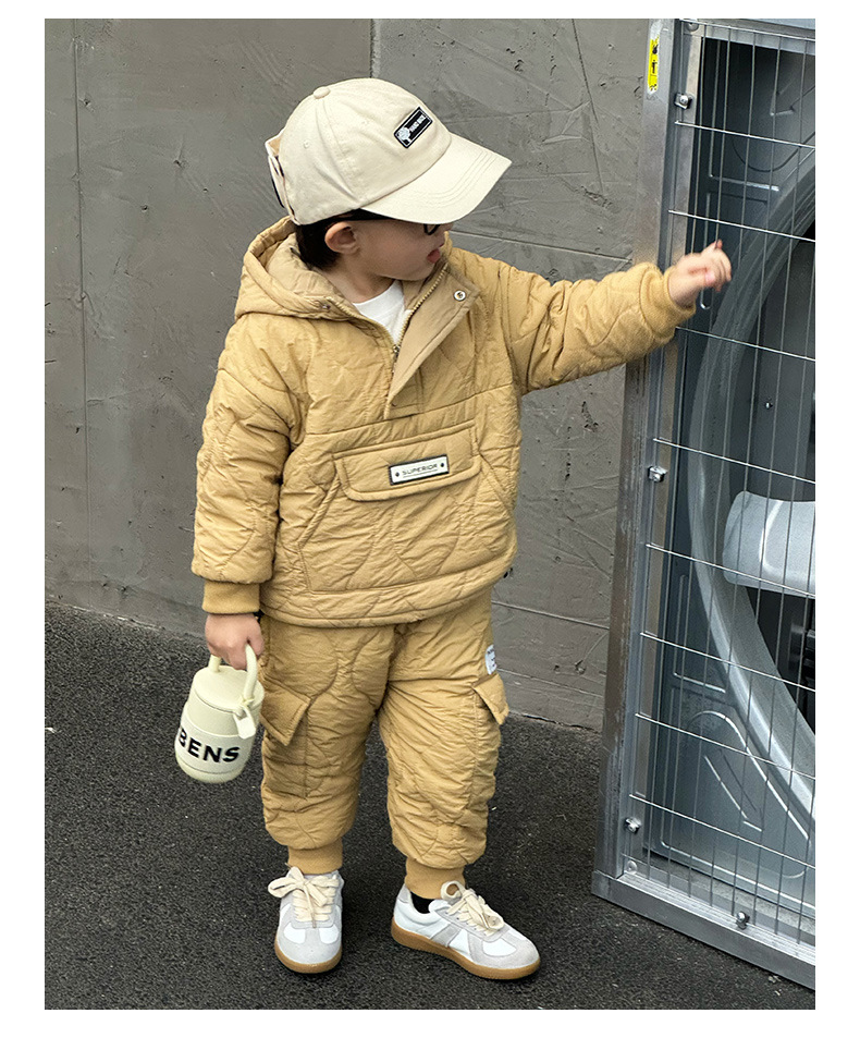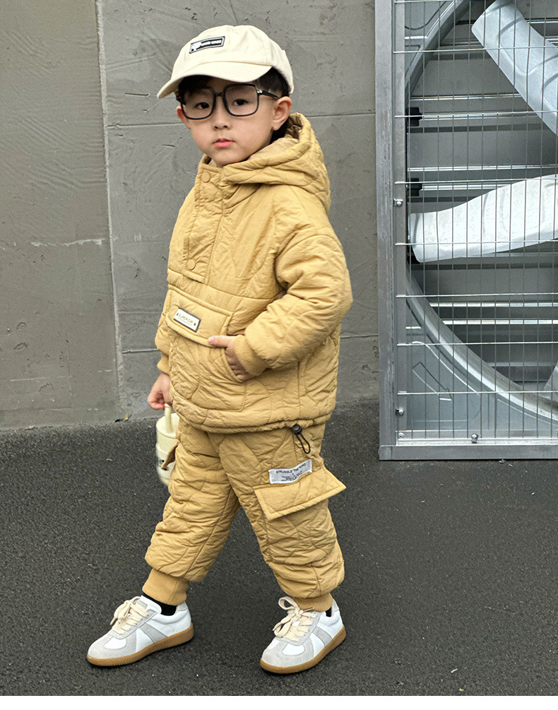 남학생의 겨울면 패딩 재킷 세트 2025 새로운 어린이 따뜻한 기모 면화 패딩 재킷면 패딩 바지 남성용 보물 서양식 패딩면 패딩 재킷스토어 가기