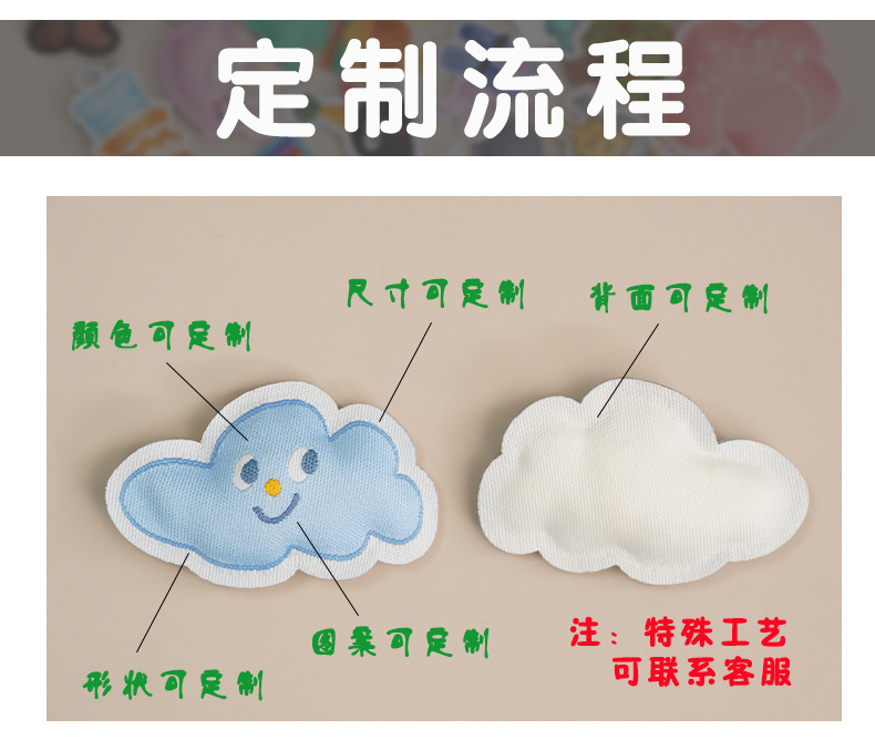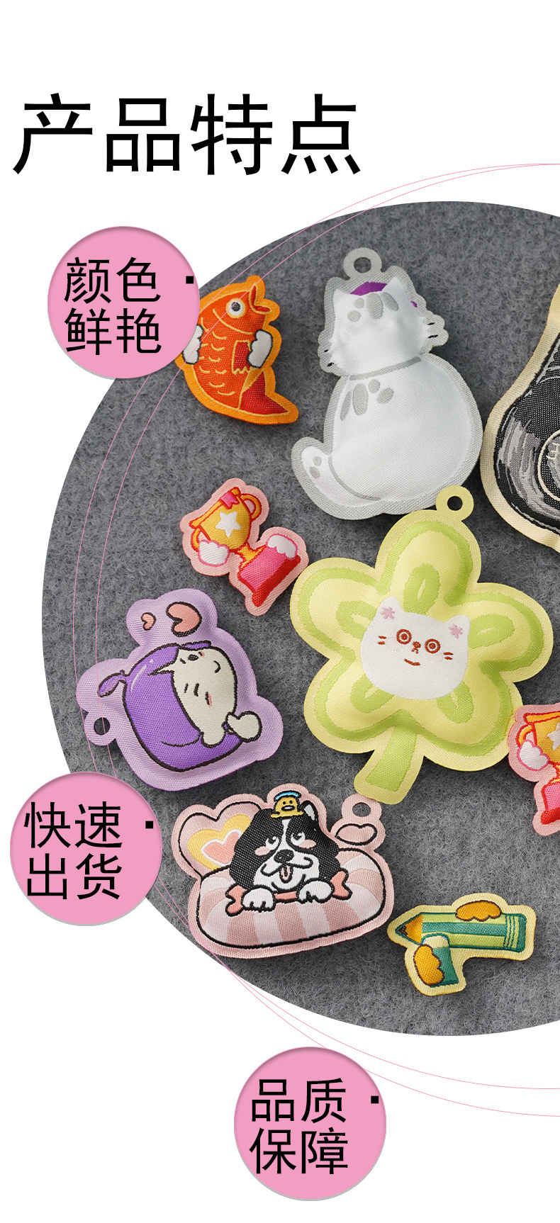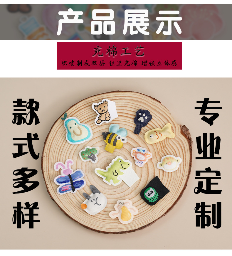 새로운 고급 맞춤 아동복 솜털 패딩 직조 라벨 만화 장식 지퍼 헤드 새틴 이중층 입체 패딩 라벨