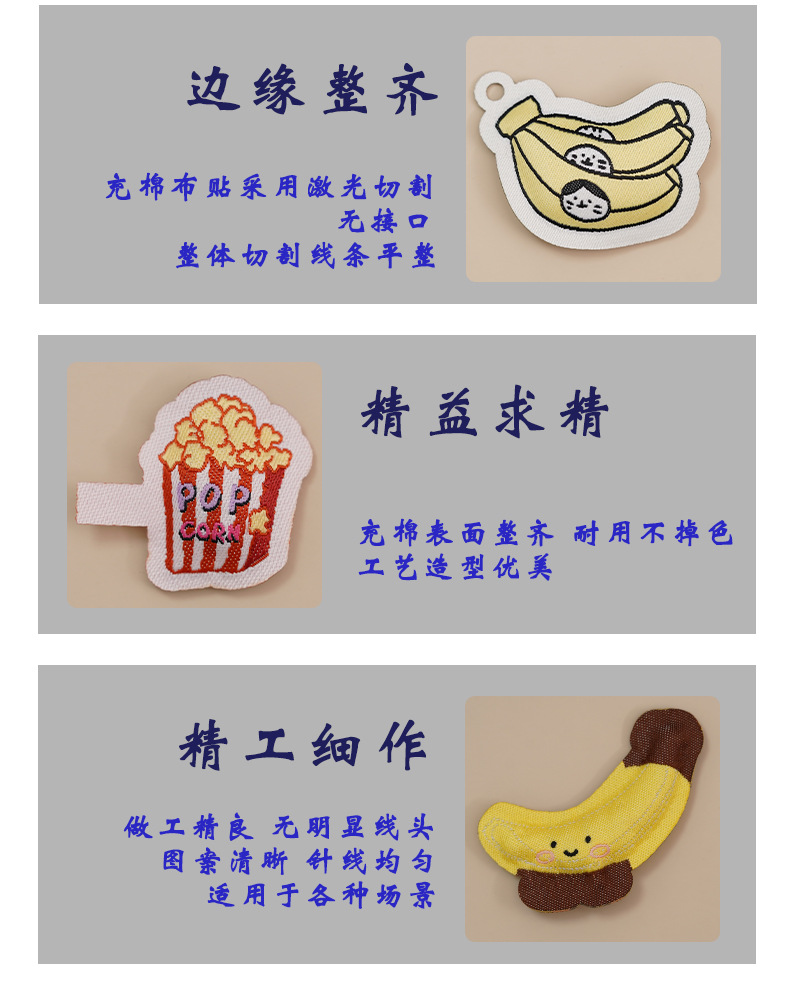 새로운 고급 맞춤 아동복 솜털 패딩 직조 라벨 만화 장식 지퍼 헤드 새틴 이중층 입체 패딩 라벨스토어 가기