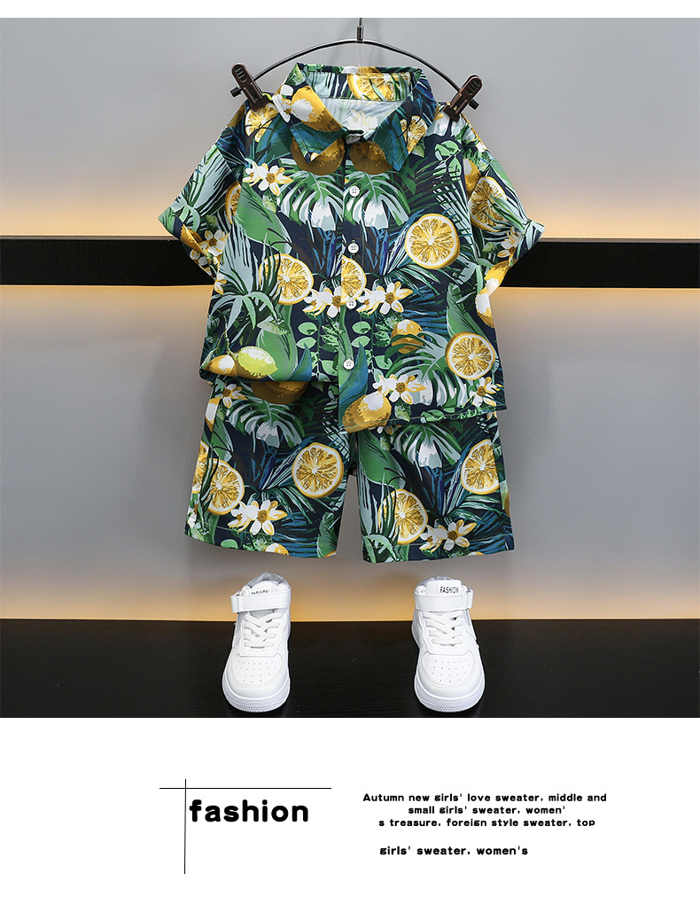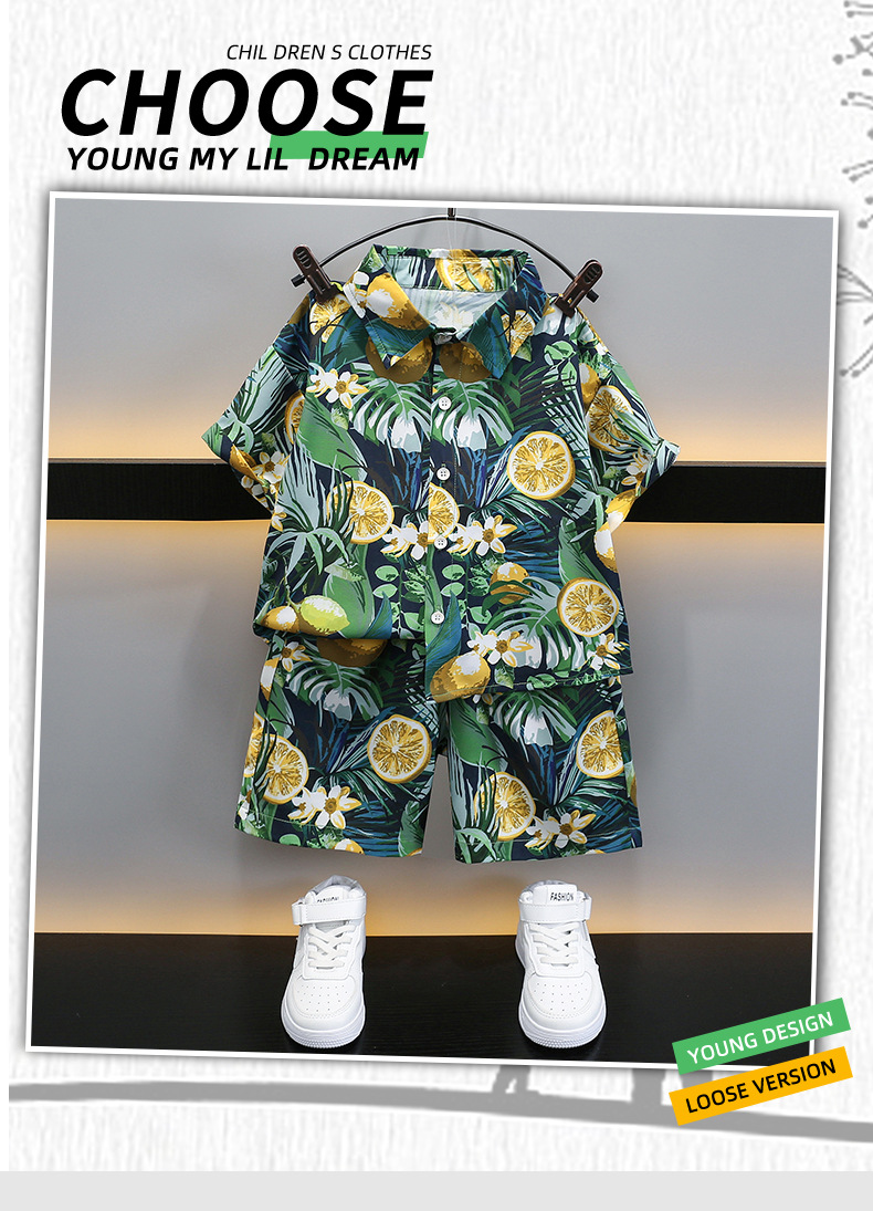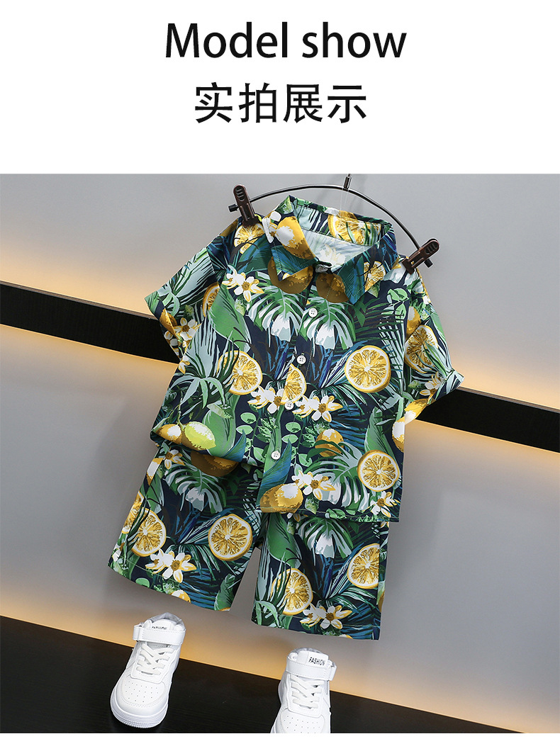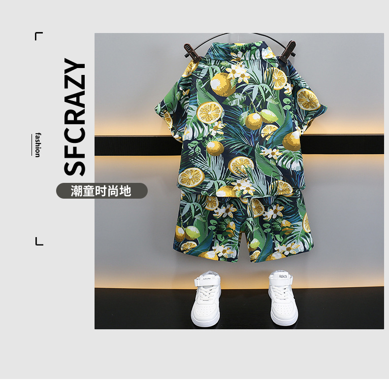 소년 여름 파이 슈아이 비치 세트 어린이 온라인 연예인 튀김 거리 셔츠 여름 옷 아기 소년 옷 서양식 아동복스토어 가기