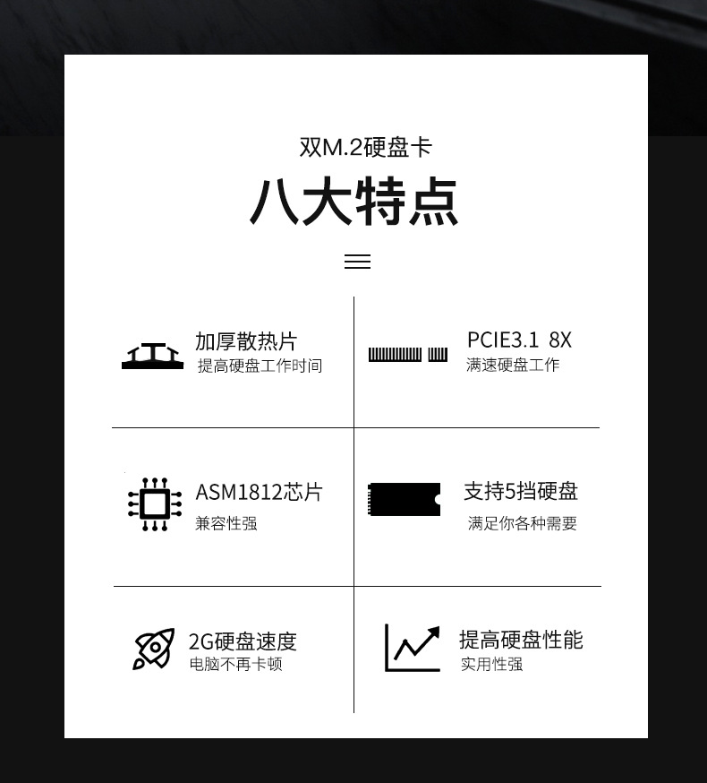PCIE3.1 X8 듀얼 M.2 하드 드라이브 분할 확장 카드 ASM18 12 지원 NVME 프로토콜 전속 확장 카드스토어 가기