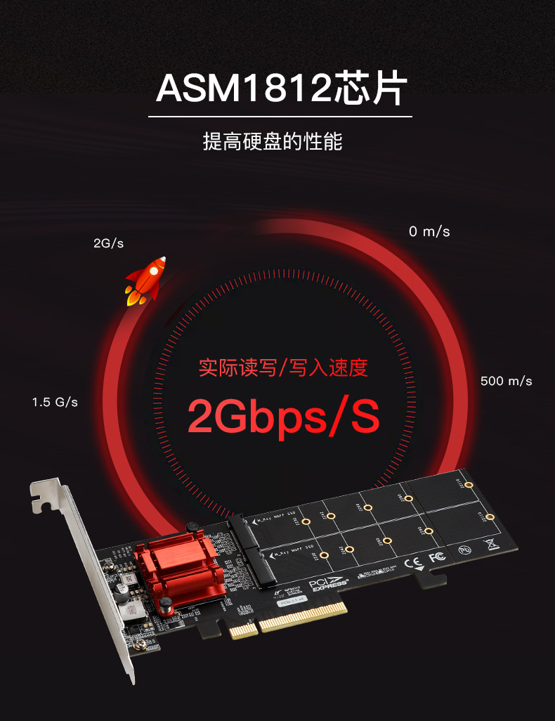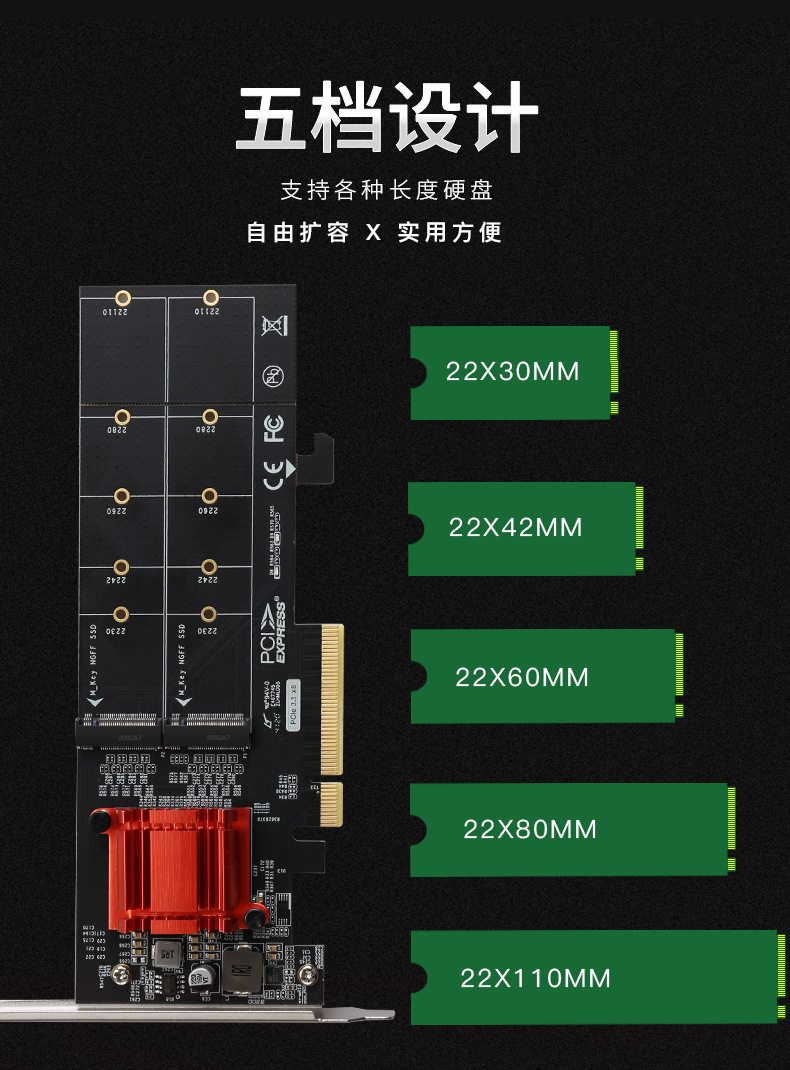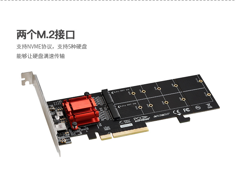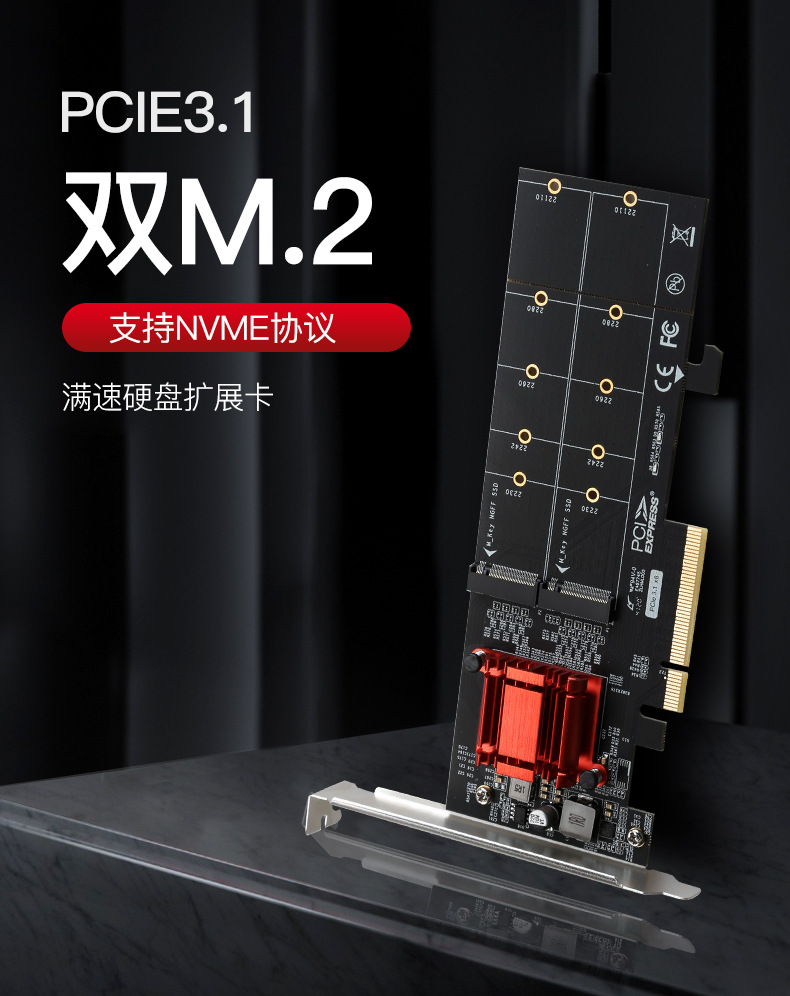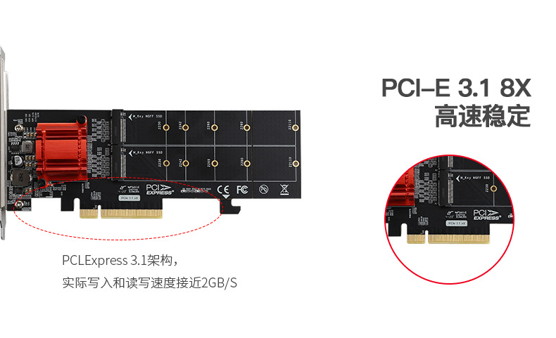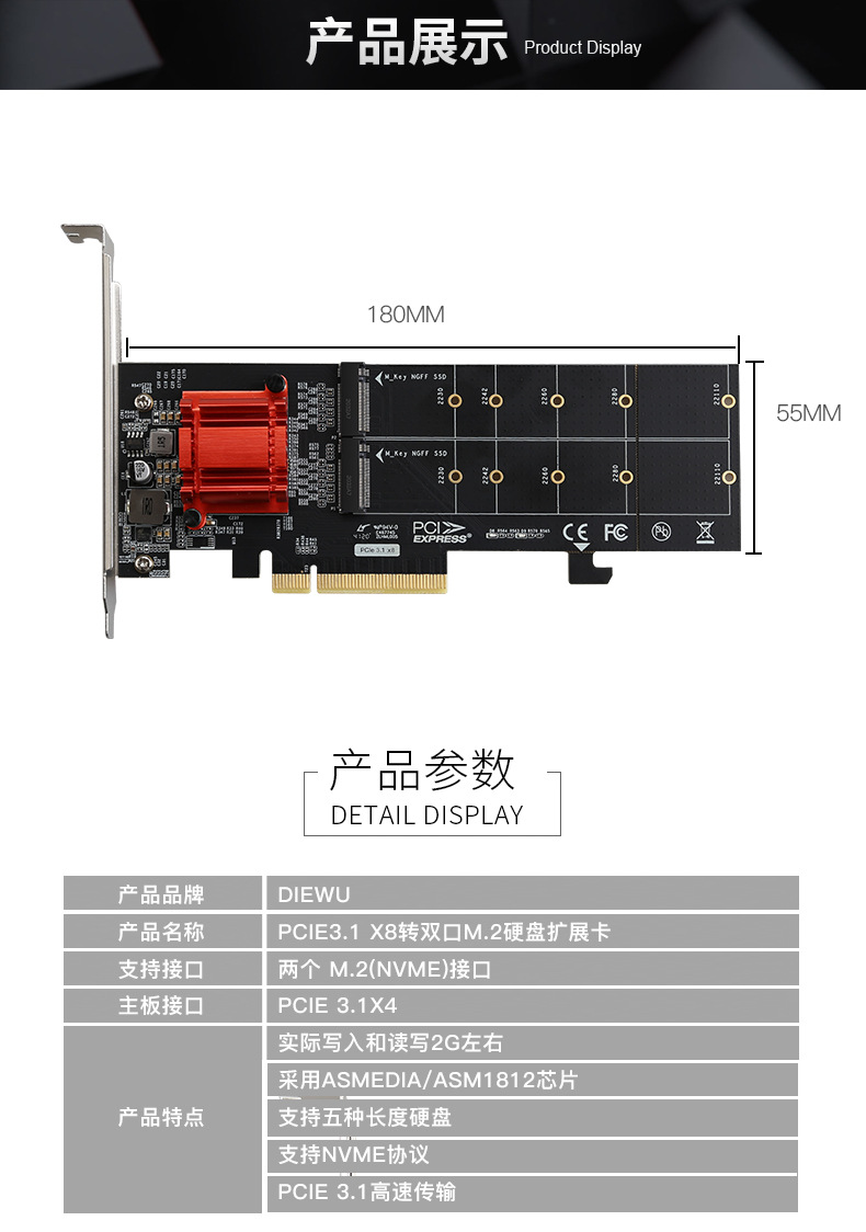 PCIE3.1 X8 듀얼 M.2 하드 드라이브 분할 확장 카드 ASM18 12 지원 NVME 프로토콜 전속 확장 카드