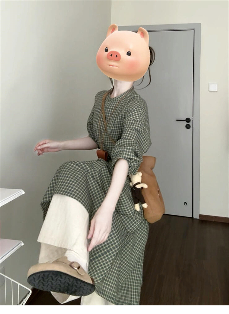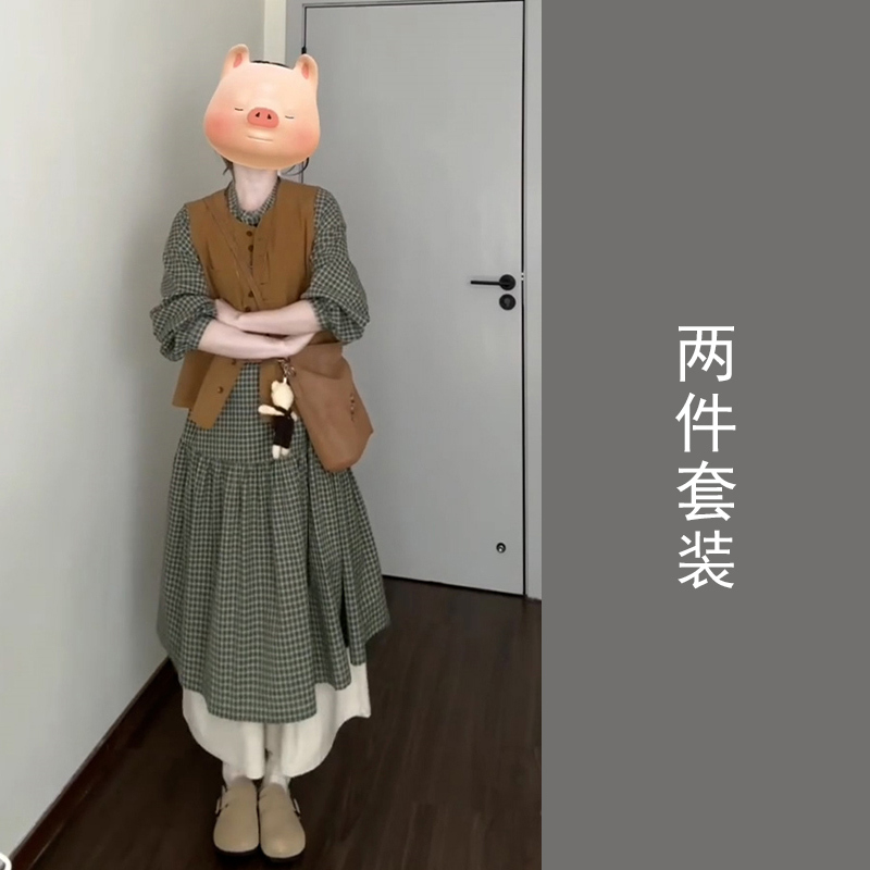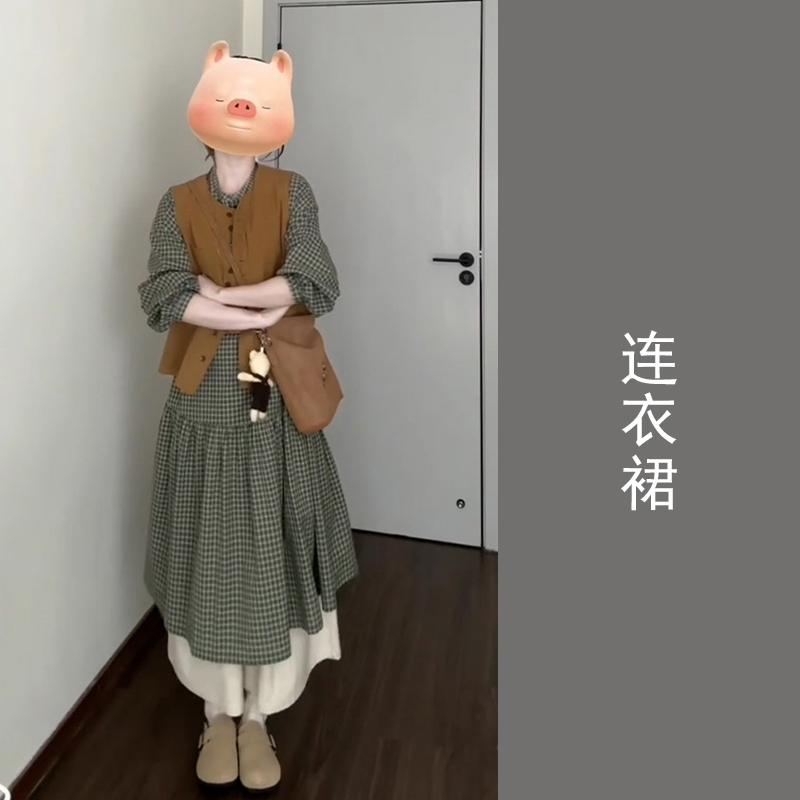 오픈 스프링 착용 느낌 체크 무늬 원피스 여성 봄 2025 새로운 패션 롱 스커트스토어 가기