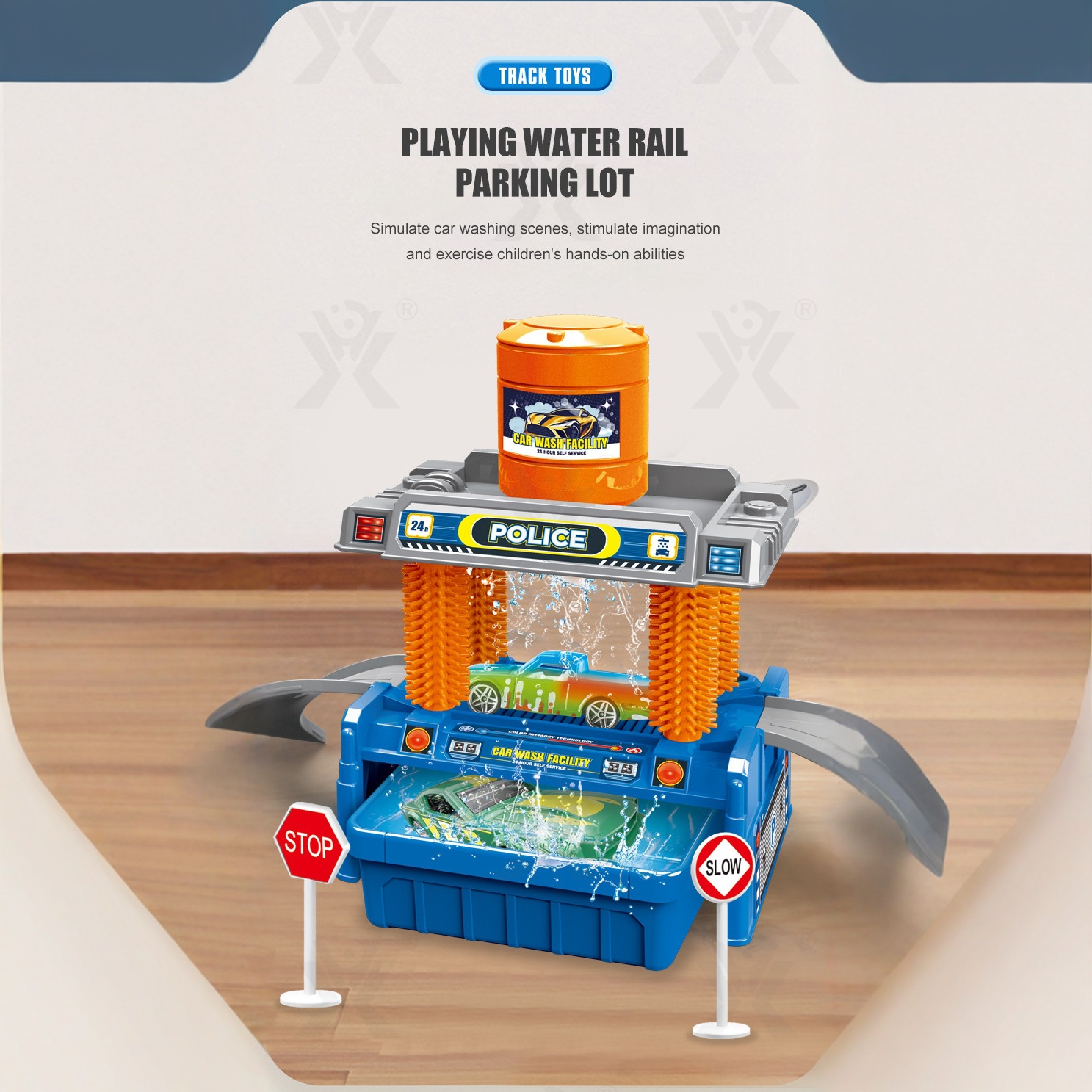 아기 파라다이스 어린이 교육 장난감 자동차 세척 색상 변경 주차장 경찰 세트 보안 차고 도매