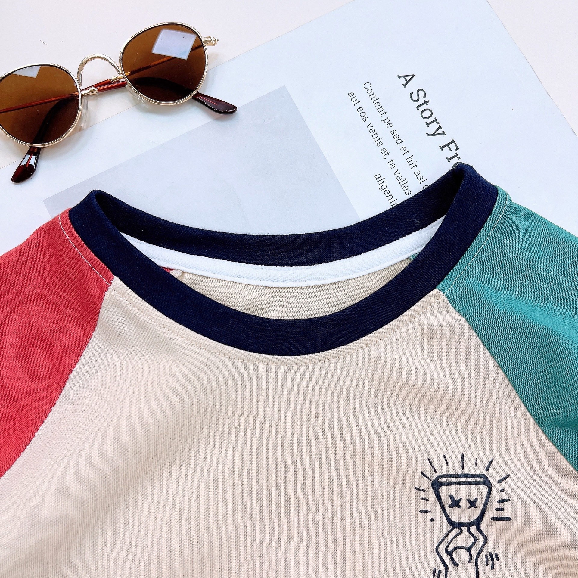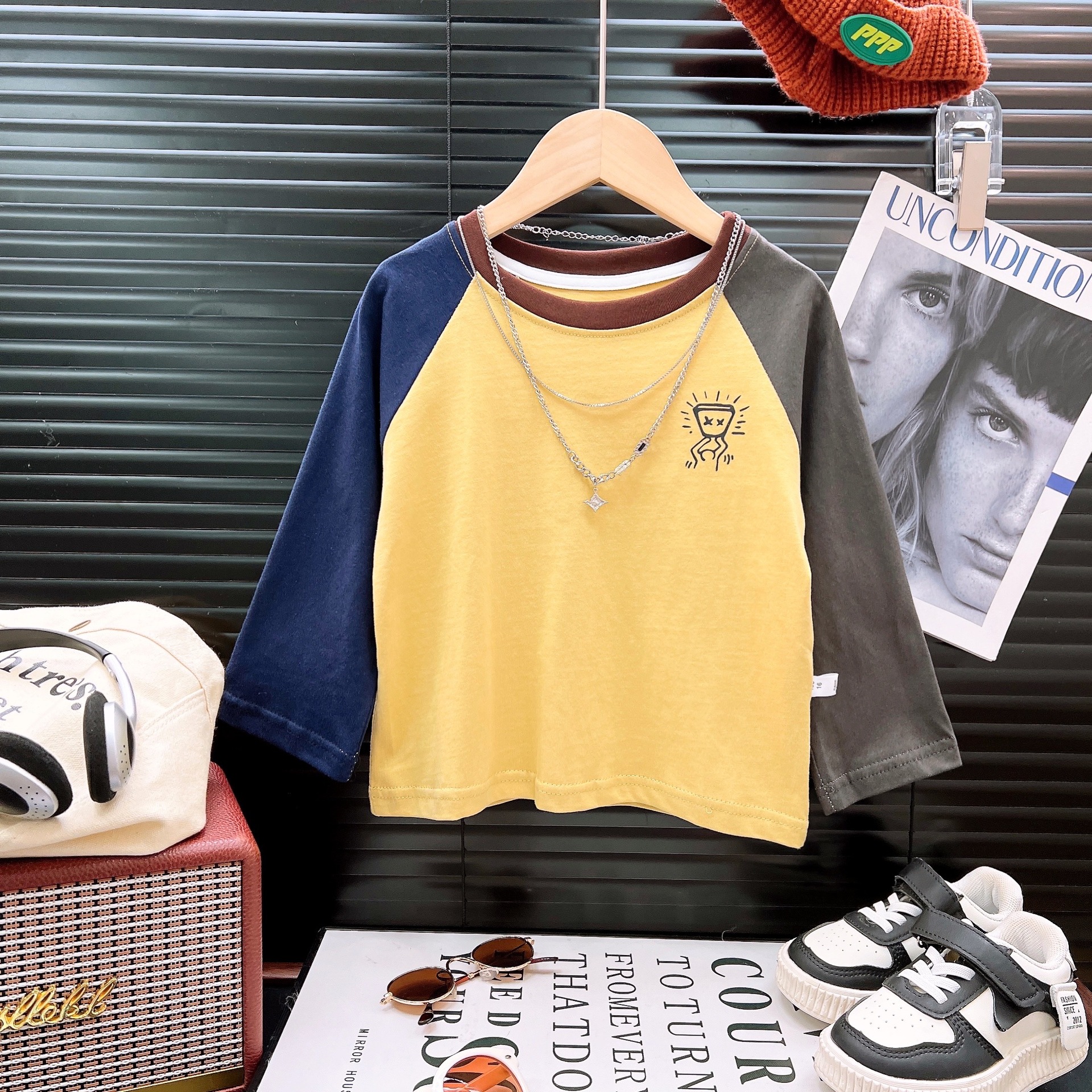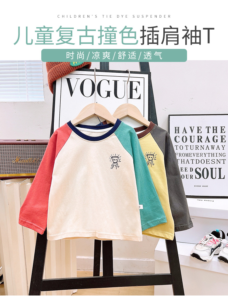 어린이 티셔츠 2025 가을 소년 라글란 긴 소매 캐주얼 퓨어 코튼 미드 빅 어린이 스웨트 셔츠 편지 인쇄 탑 잘 생긴