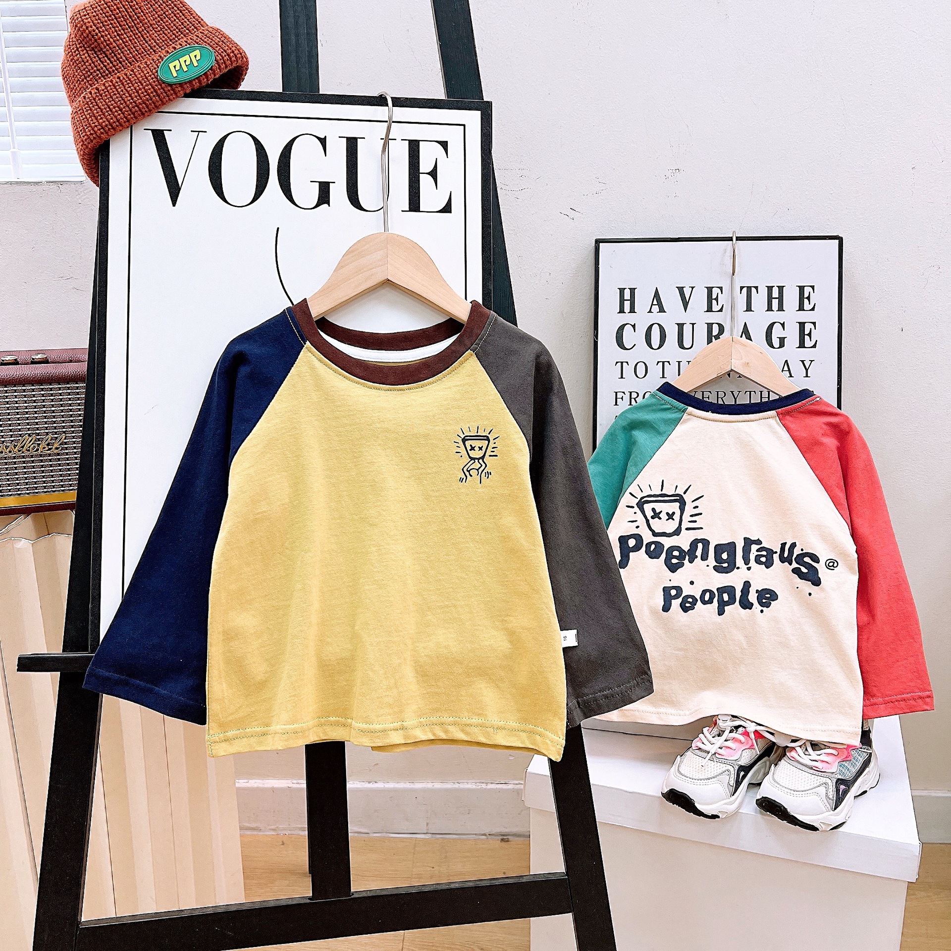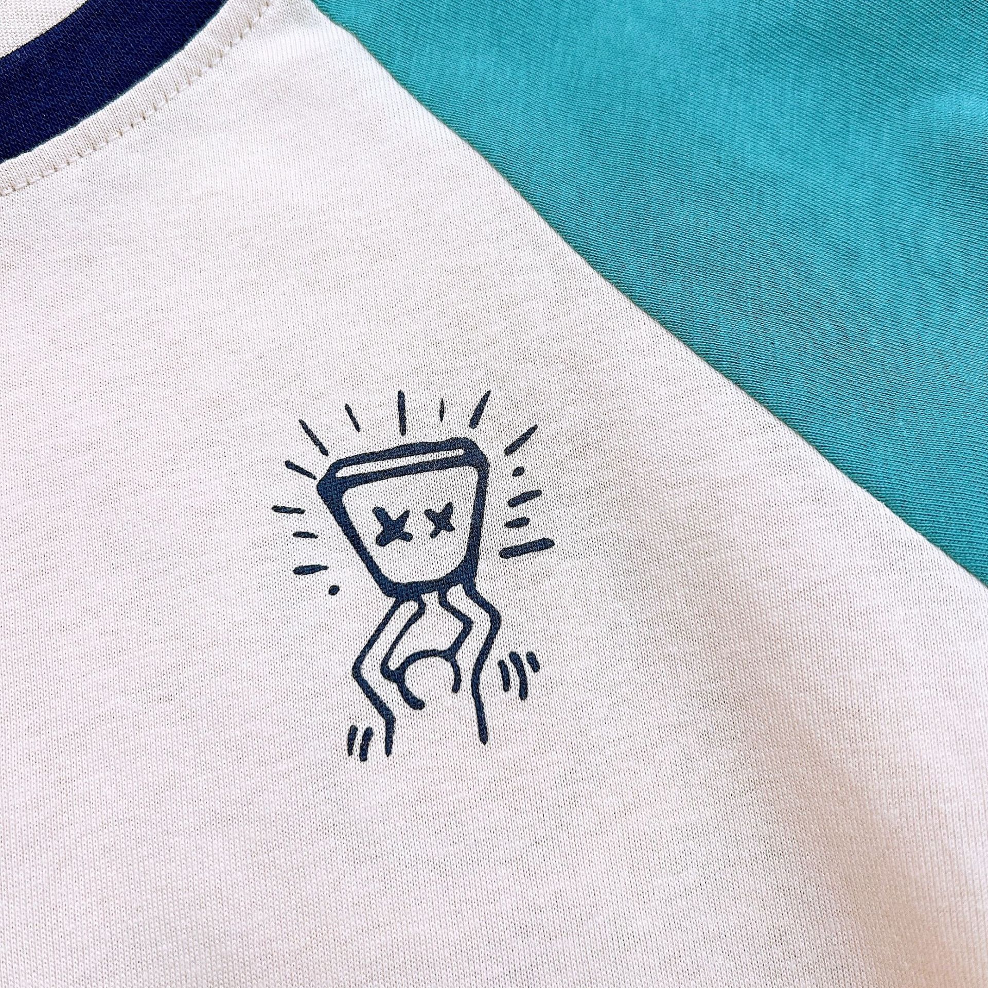 어린이 티셔츠 2025 가을 소년 라글란 긴 소매 캐주얼 퓨어 코튼 미드 빅 어린이 스웨트 셔츠 편지 인쇄 탑 잘 생긴스토어 가기