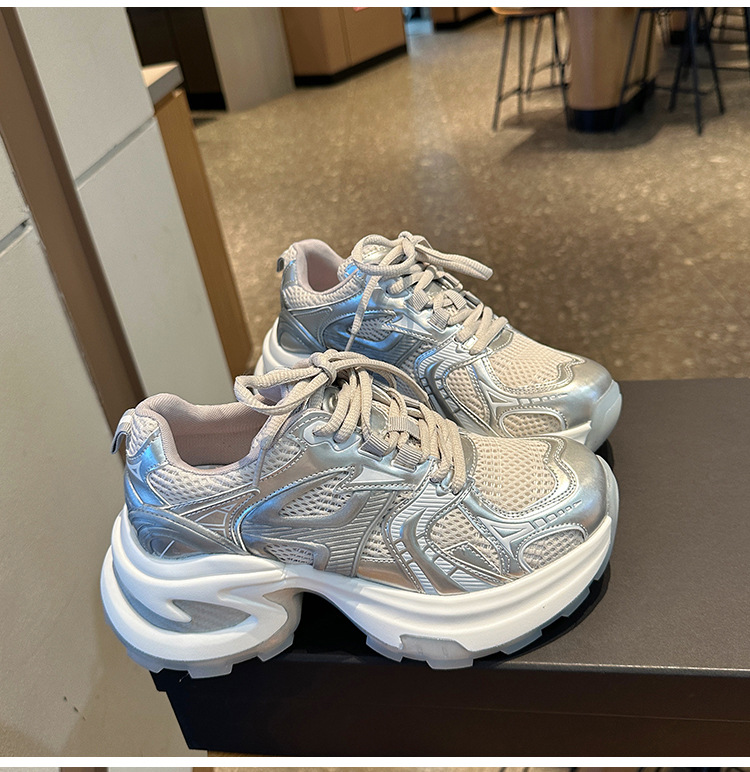 일본식 두꺼운 밑창 증가 토레 신발 여성의 2025 년 새로운 여름 메쉬 통기성 여성 신발 작은 캐주얼 운동화스토어 가기