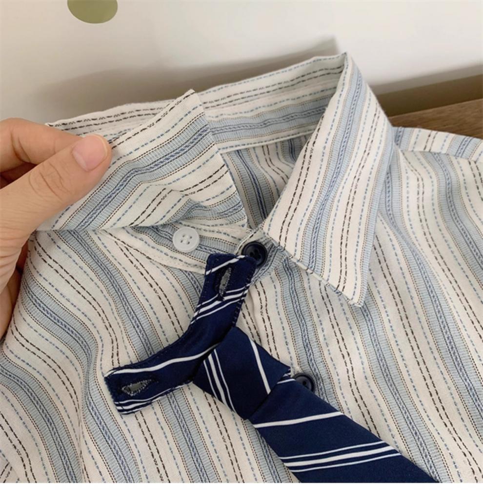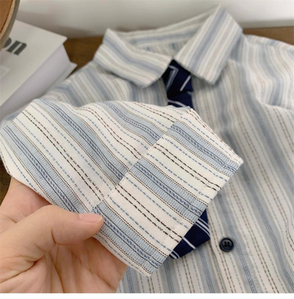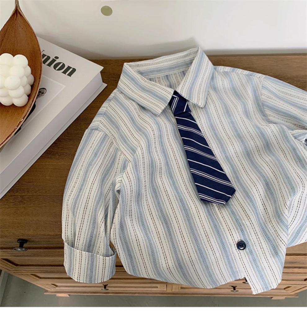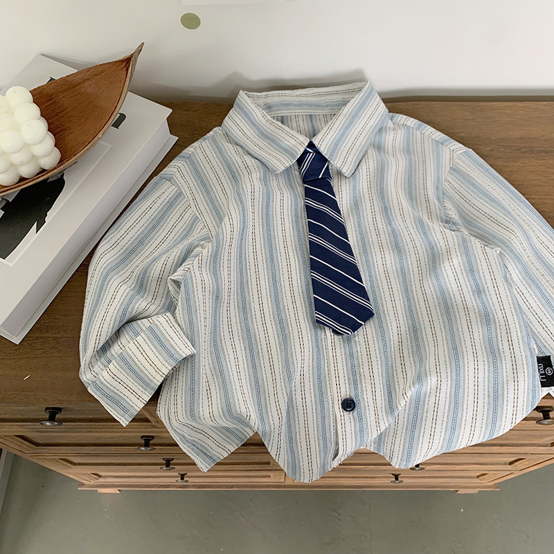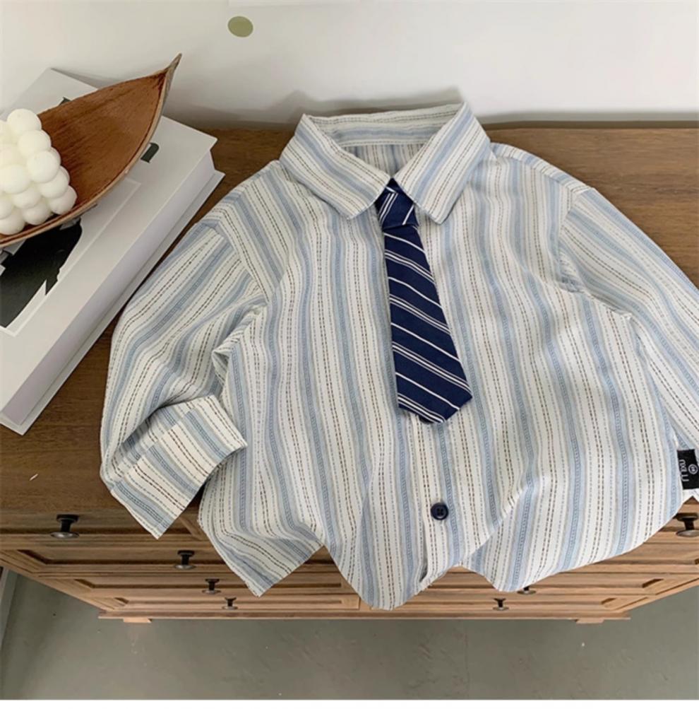 소년들의 가을 2025 년 새 어린이 셔츠 한국식 줄무늬 아기 잘 생긴 탑스토어 가기
