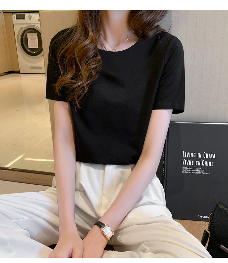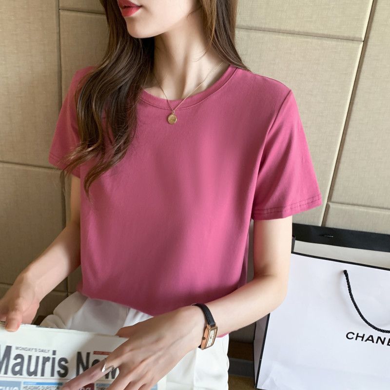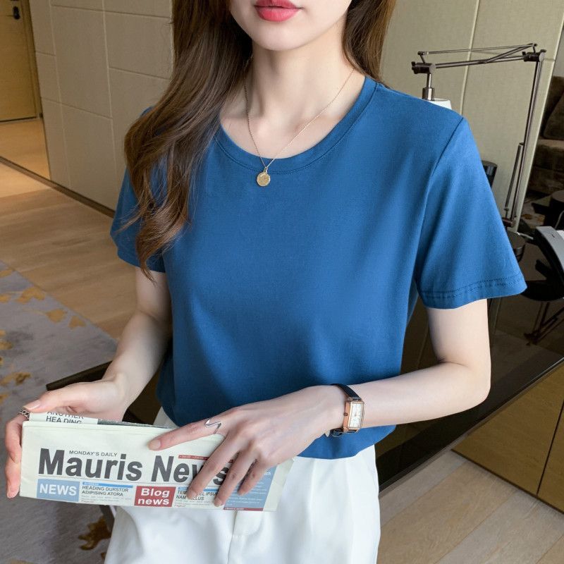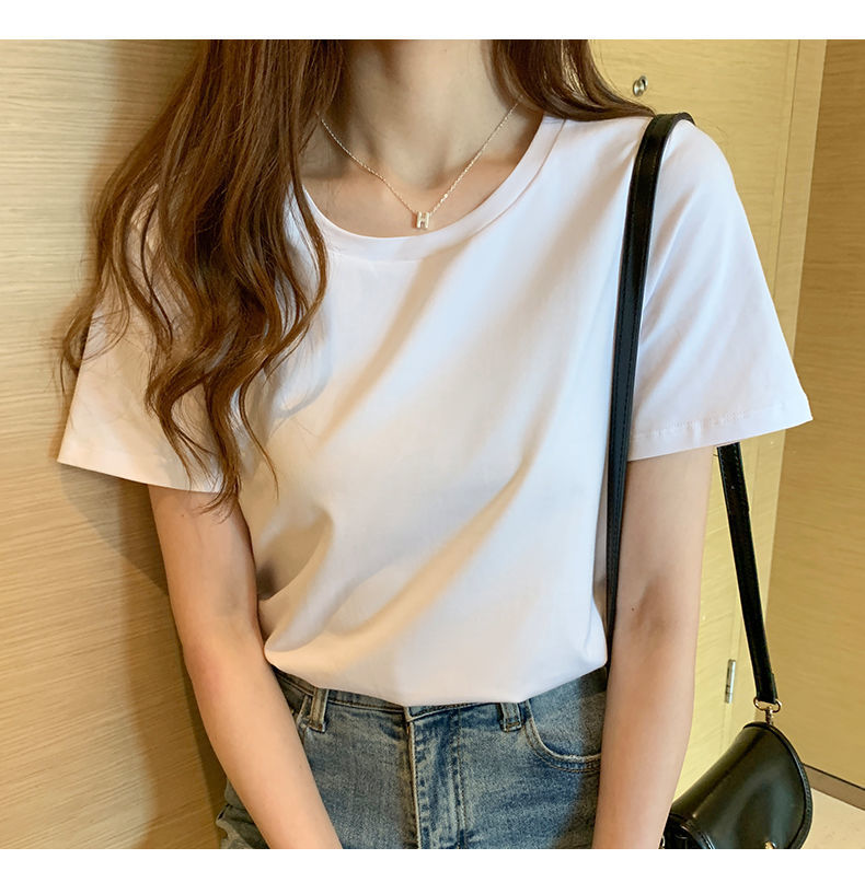 화이트 여성용 코튼 반팔 티셔츠 여성용 2025 뉴 루즈 여름 라운드 넥 숄더 티셔츠 탑 반소매 여성용 트렌디스토어 가기