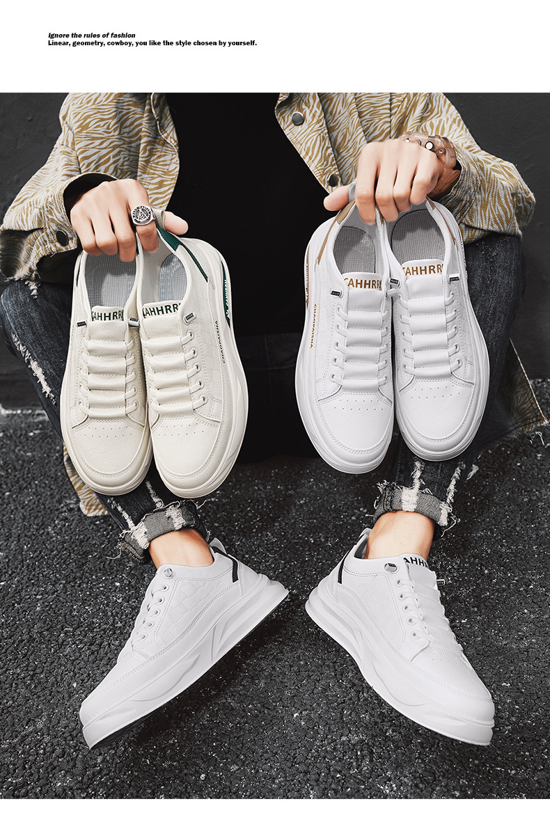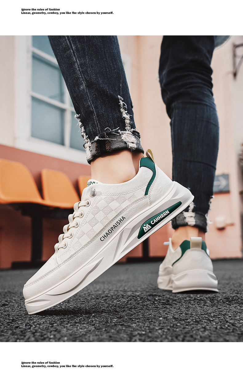 봄 2025 새로운 사계절 신발 캐주얼 올 매치 슬립 온 남성 가죽 유행 흰색 신발 청소년과 학생스토어 가기