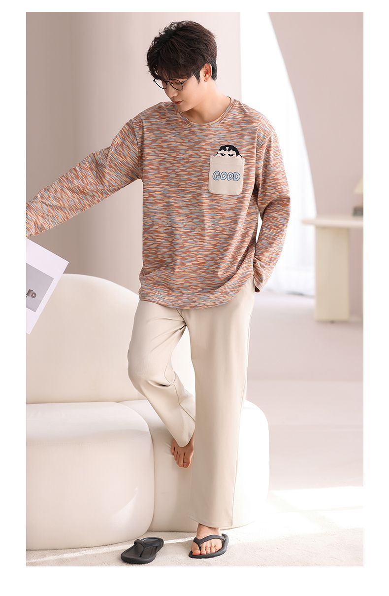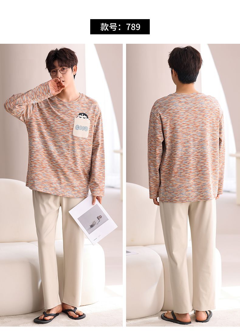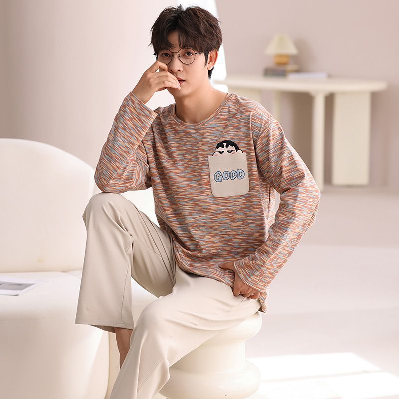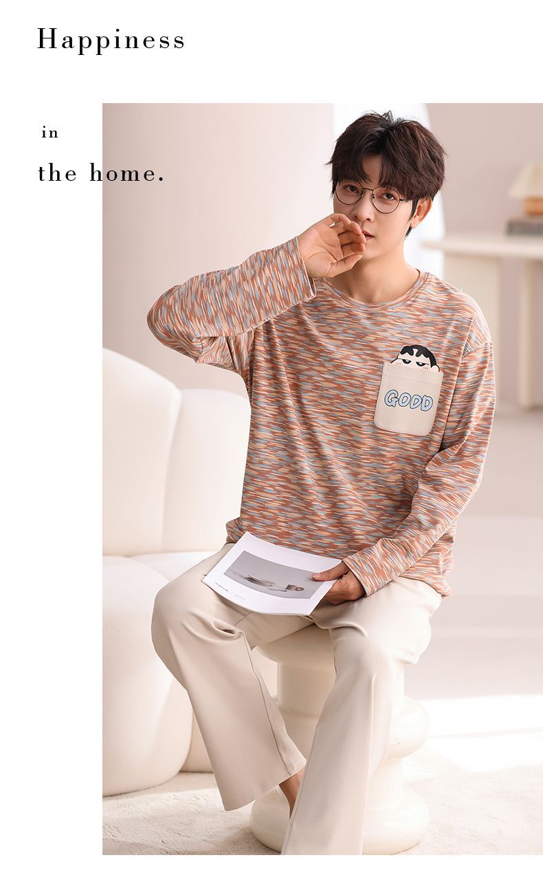 봄과 가을 새로운 남성용 잠옷 풀 오버 긴 소매 캐주얼 청소년은 편안한 외부 홈 의류 세트 입을 수 있습니다.스토어 가기