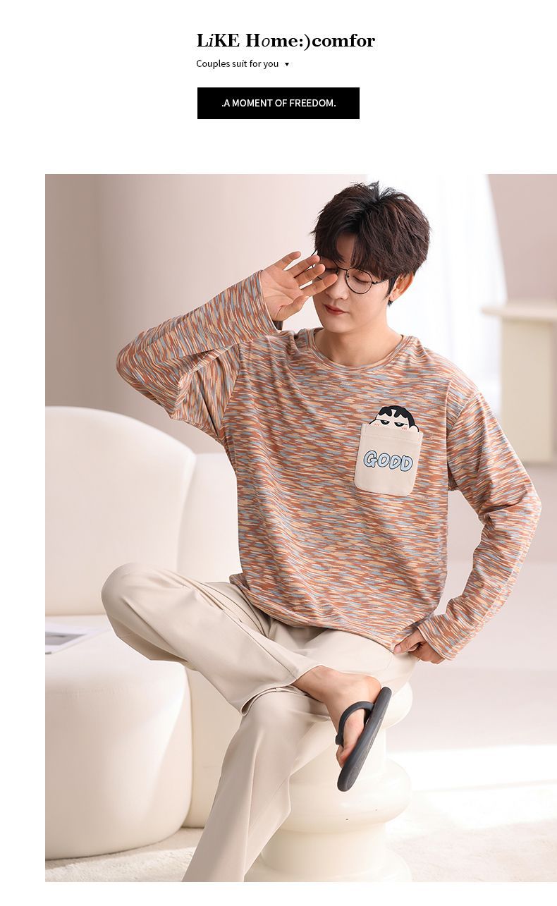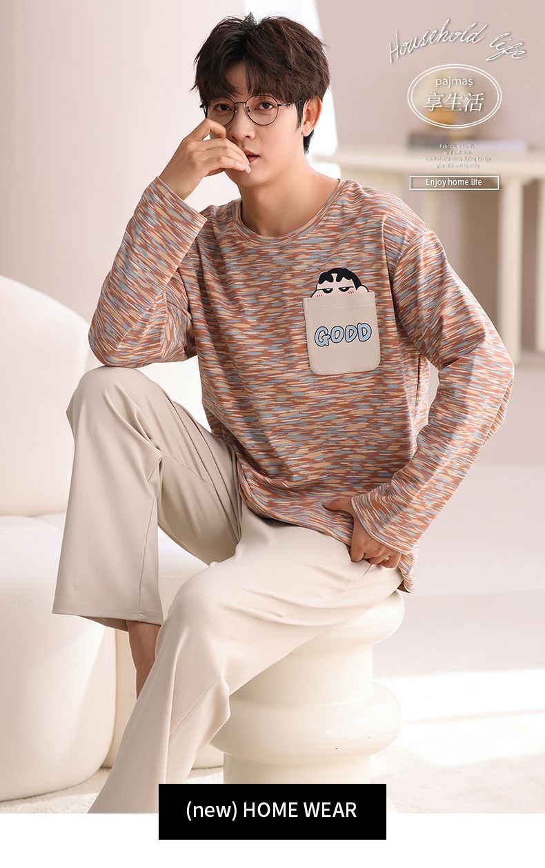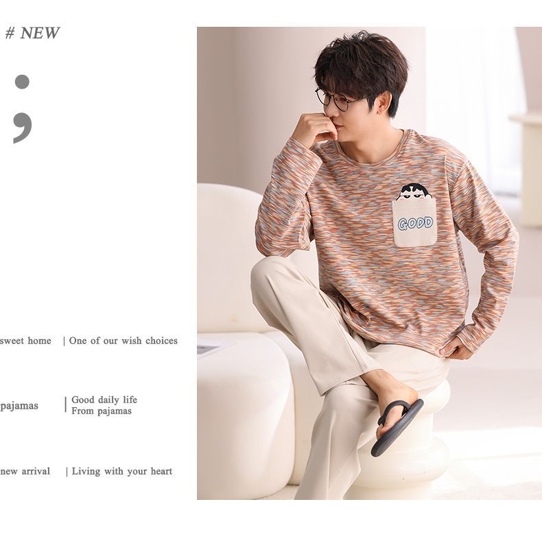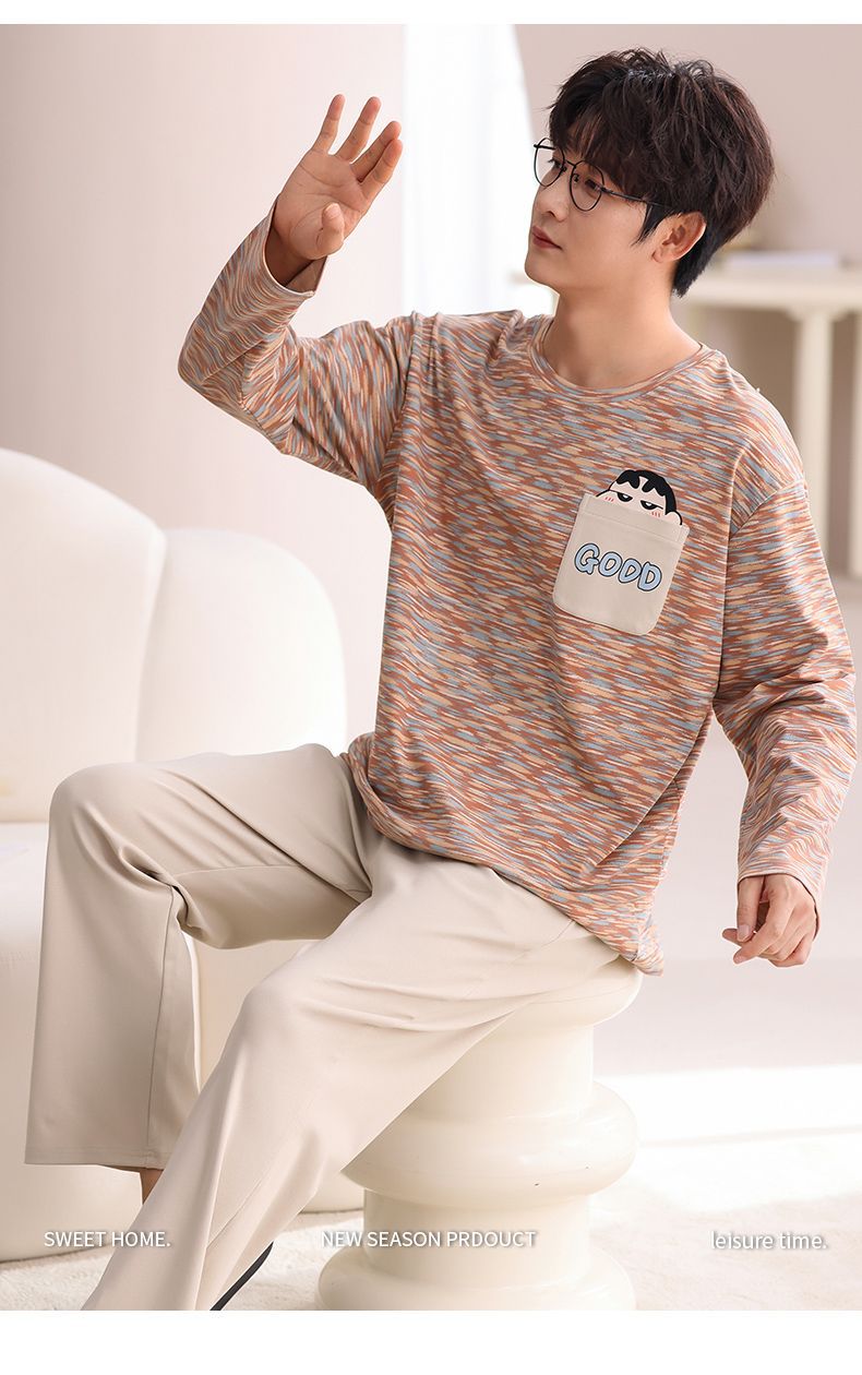 봄과 가을 새로운 남성용 잠옷 풀 오버 긴 소매 캐주얼 청소년은 편안한 외부 홈 의류 세트 입을 수 있습니다.스토어 가기