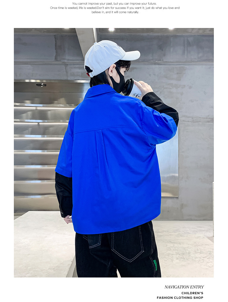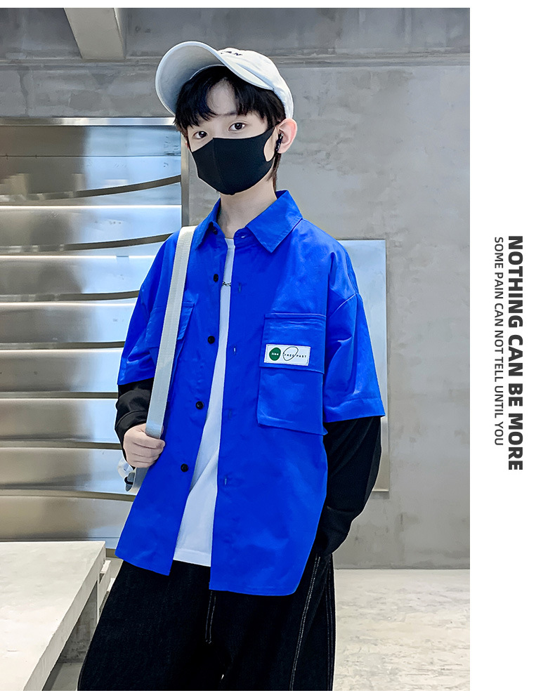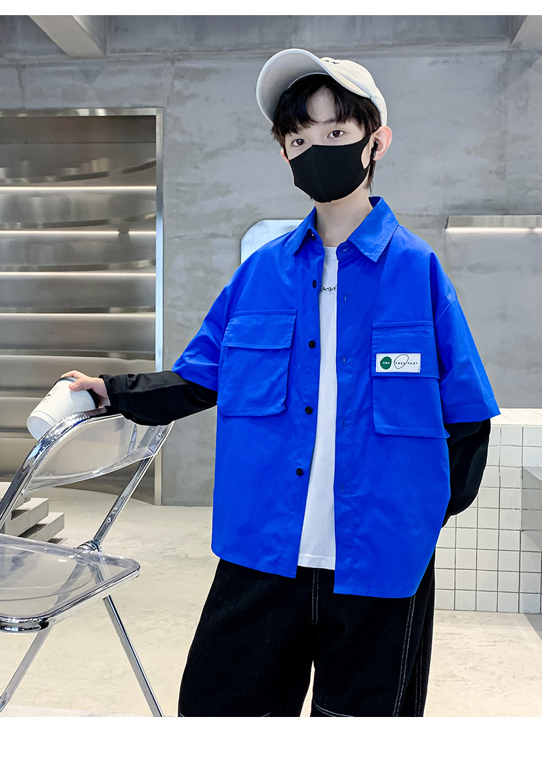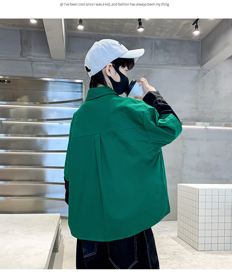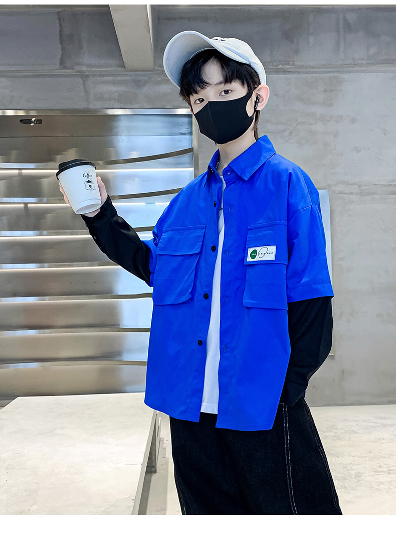 아동복 어린이 셔츠 큰 포켓 유행 잘 생긴 바느질 재킷 작업복 스타일 셔츠 2025 새로운 스타일 중 큰 어린이 패션스토어 가기