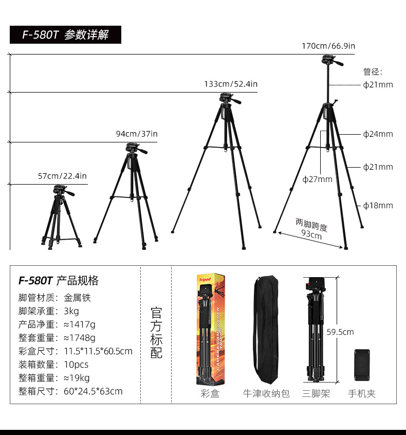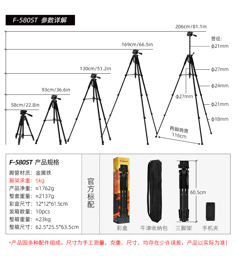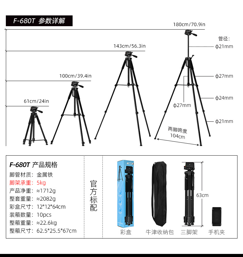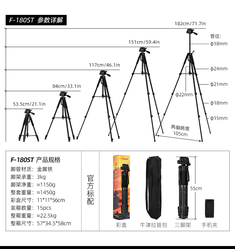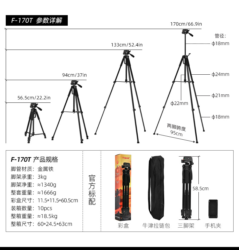 카메라 삼각대 1.8m 야외 망원경 휴대 전화 라이브 방송 F-580T 레이저 대포 낚시 조명 SLR 브래킷스토어 가기