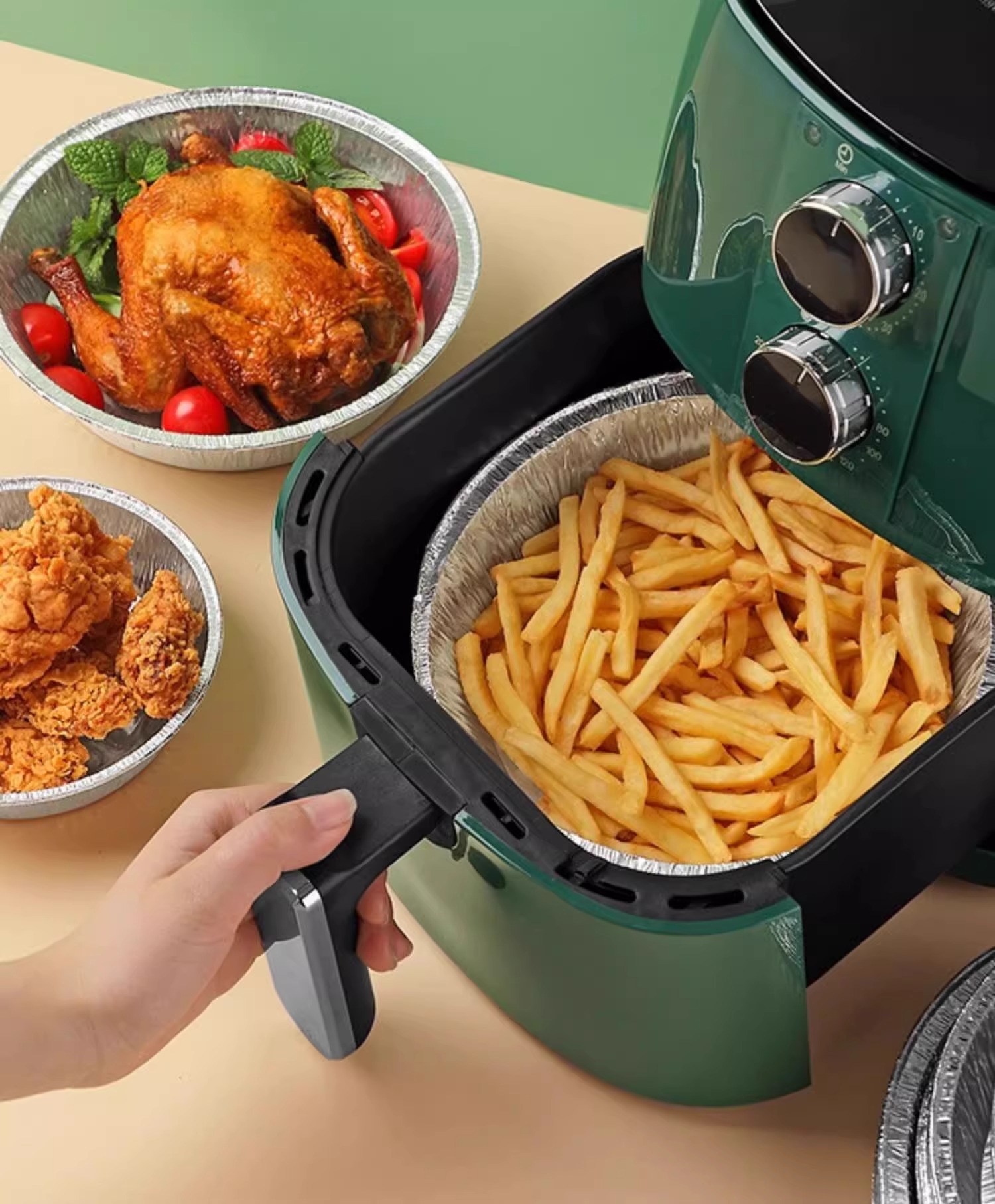 일회용 공기 프라이어 특수 주석 종이 트레이 가정용 오일 흡수 종이 오븐 베이킹 트레이 알루미늄 호일 트레이 식품 오일 증거스토어 가기