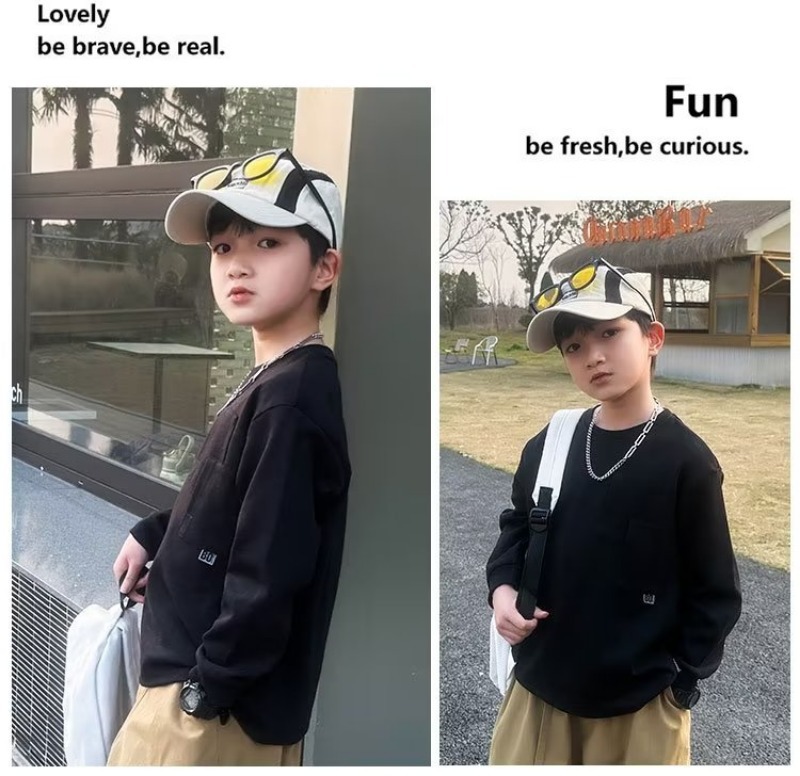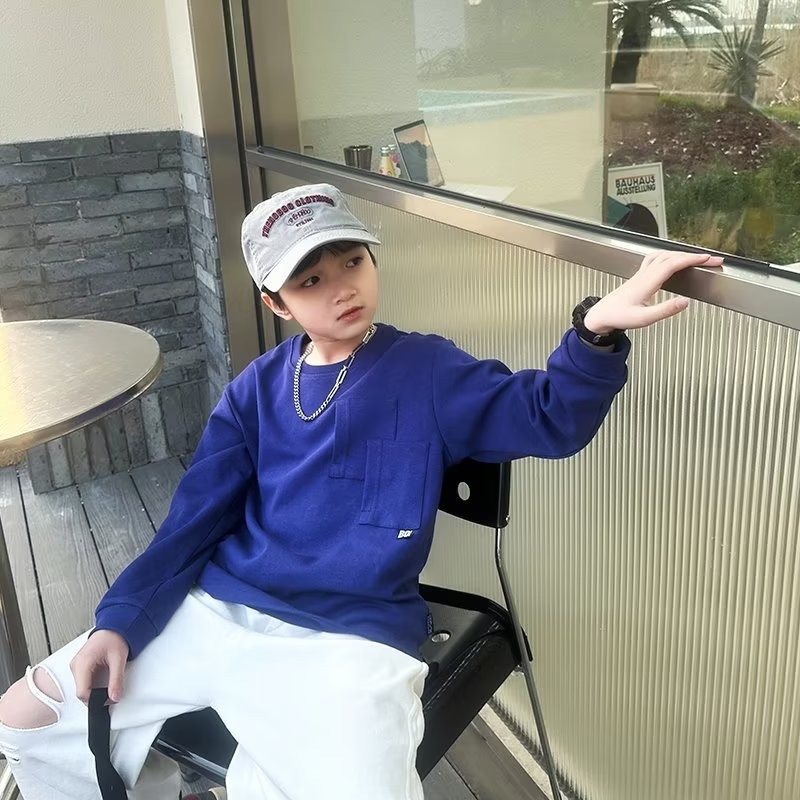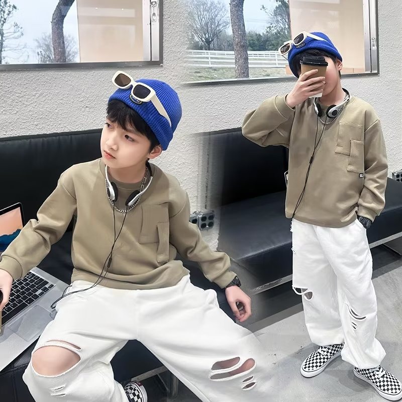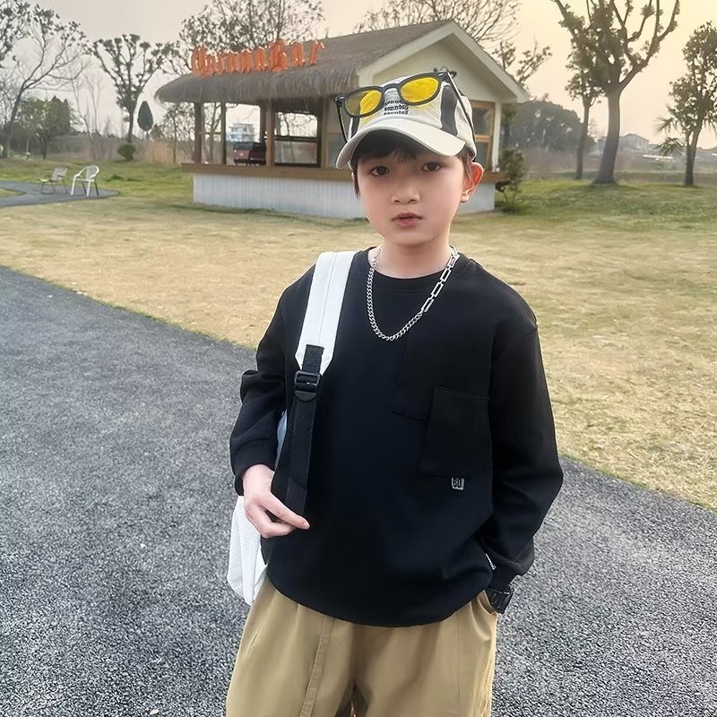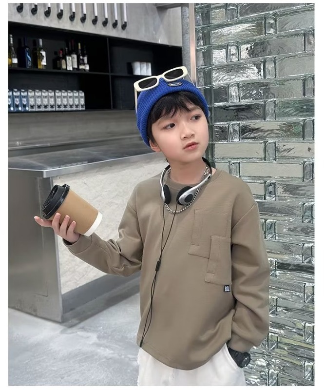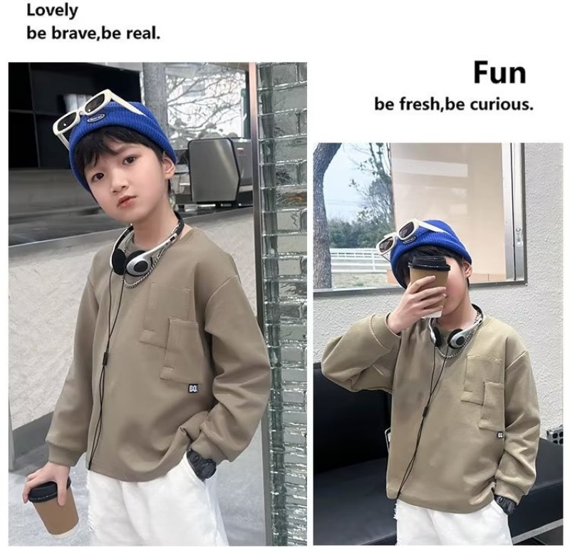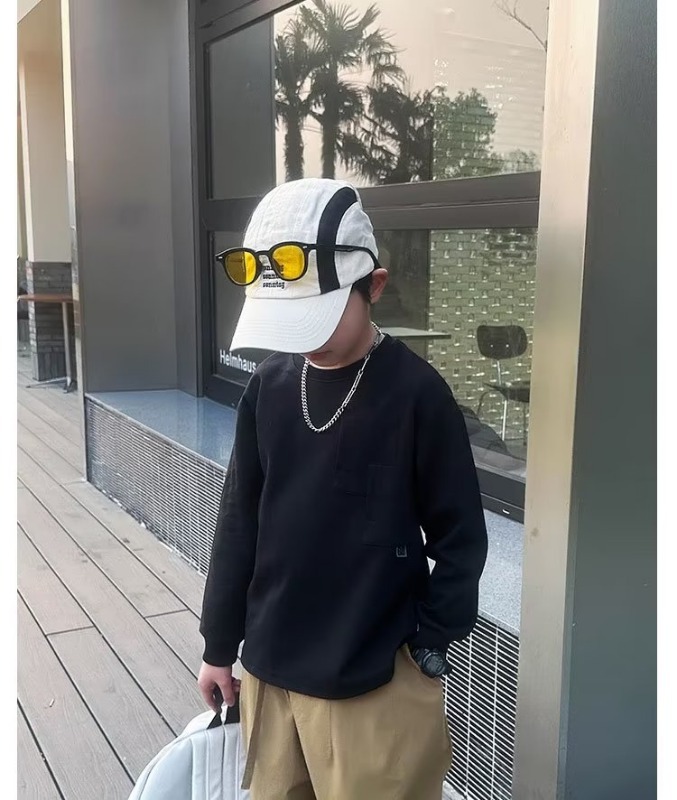 우아한 티셔츠 새로운 패션 하라주쿠 패션 일본 인스 타 그램 스타일 똑바로 게으른 둥근 목 어린이 긴 소매 봄과 가을스토어 가기