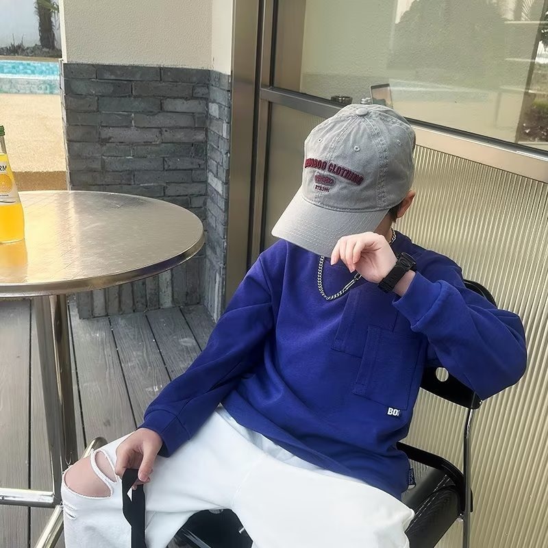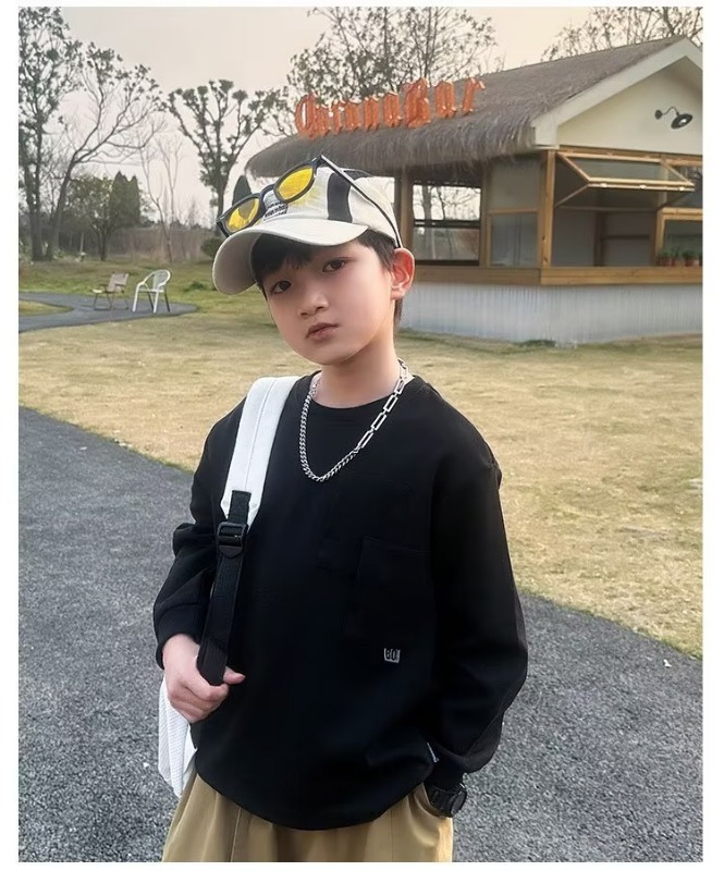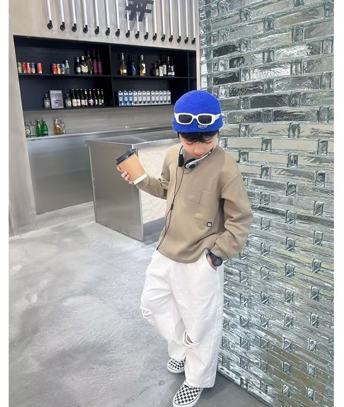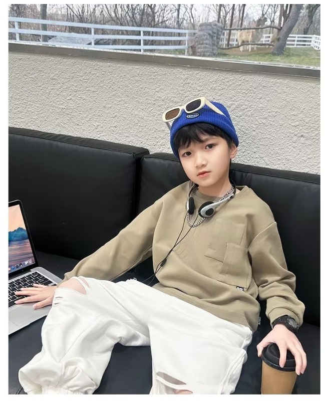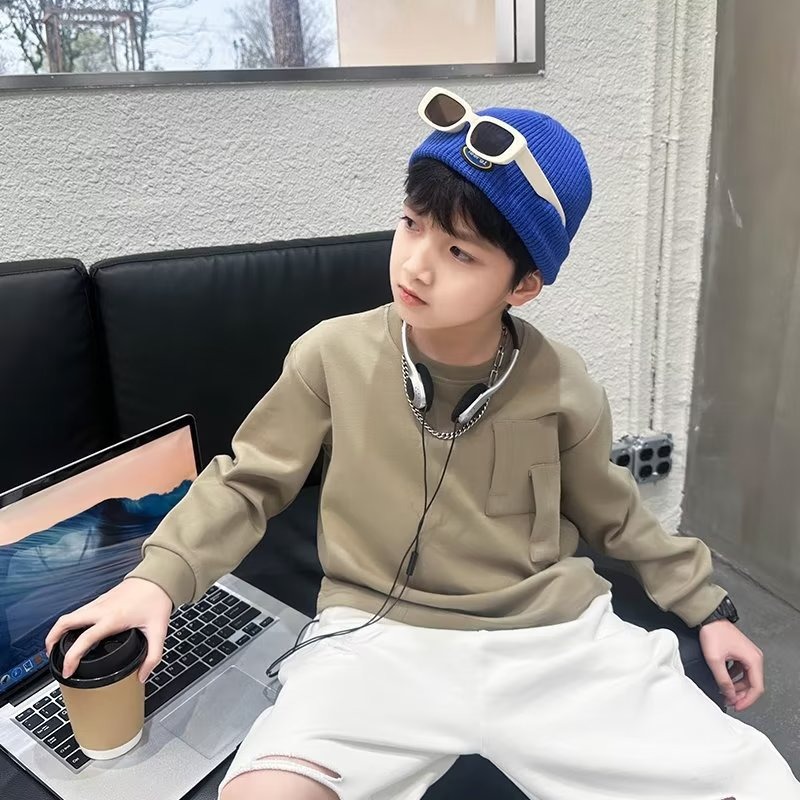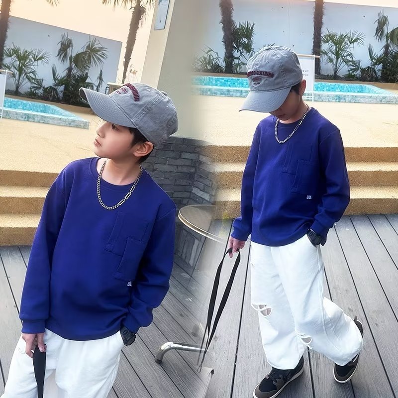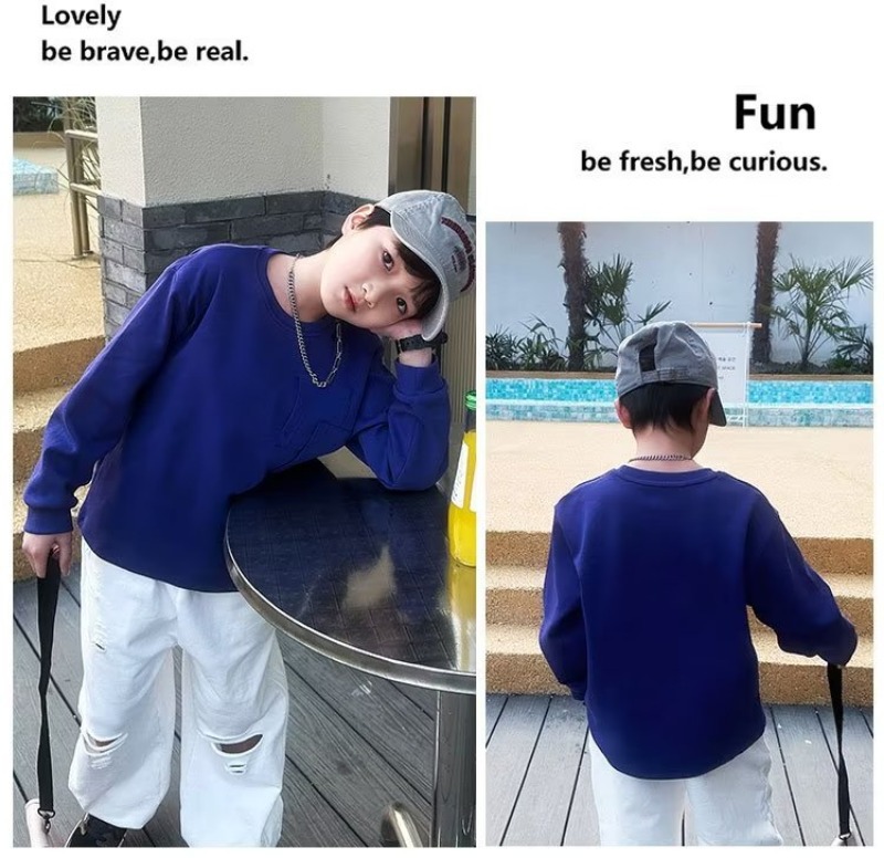 우아한 티셔츠 새로운 패션 하라주쿠 패션 일본 인스 타 그램 스타일 똑바로 게으른 둥근 목 어린이 긴 소매 봄과 가을스토어 가기